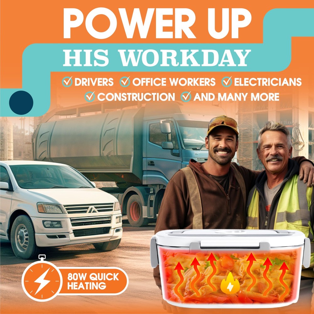 Introducing the Electric Lunch Box, the ultimate solution for enjoying warm, homemade meals on the go! With its innovative design and cutting-edge technology, this electric lunch box is revolutionizing the way you enjoy lunchtime. Say goodbye to cold, soggy meals with the Heated Lunch Box. Whether you're at work or traveling, this lunch box keeps your meals fresh and piping hot. Forget about waiting in long lines for the microwave or dealing with bulky lunch warmers. The Electric Heating Lunch Box allows you to heat up your food quickly and conveniently, right at your desk or on the go. Its compact size makes it perfect for transporting your favorite meals wherever you need to go. Experience the convenience of the Lunch Box Portable, designed to make mealtime hassle-free and enjoyable. Simply plug in the reheatable lunch box and watch as your meal heats up in minutes, without the need for a microwave or stove. With the electric lunch box, you can enjoy hot, delicious meals anytime, anywhere. Its portable design makes it ideal for picnics, road trips, and outdoor adventures. Say goodbye to cold sandwiches and hello to warm, satisfying meals with the heat up lunch box portable, or a fiambrera electrica portatil in Spanish. Whether you're craving a hearty soup, a comforting stew, or a delicious pasta dish, the Electric Lunch Box has got you covered. Its versatile design accommodates a variety of foods, from microwaveable meals to homemade favorites. Upgrade your lunch game with the Lunch Box. Its innovative features, convenient portability, and reliable performance make it the perfect choice for busy individuals looking to enjoy hot, homemade meals on the go. Say hello to warm, satisfying lunches with the lunch box electric food warmer! HOT AND HEALTHY FOOD ANYWHERE - Relish hot, homemade meals on the go with our heated lunch box for men. Elevate your dining with a food warmer lunch box, a healthier alternative to cold or fast food. VERSATILE 3-IN-1 PORTABLE WARMER - Our heating lunch box and women adapts to your needs with voltage settings (110V, 12V, 24V), our hot lunch box for adults suits cars, trucks, or office desks. Savor homemade meals effortlessly. QUICK SELF-HEATING - Experience quick meal heating with our 80W portable electric lunch box, warming your food in just 20-30 minutes. Enjoy swift and homemade hot meals anywhere whit our heating lunch box for men PEACE OF MIND DINING - Crafted with stainless steel, our heatable lunchbox and electric lunch box for men ensures food hygiene. Enjoy peace of mind with materials that prioritize safety. EFFORTLESS CLEANUP & GENEROUS SIZE - Worry-free meals with our electric food warmers and women. Featuring a generous 1.5L capacity, this lunch warmer portable for work is perfect for carrying ample portions. Dishwasher safe, cleaning is a breeze.