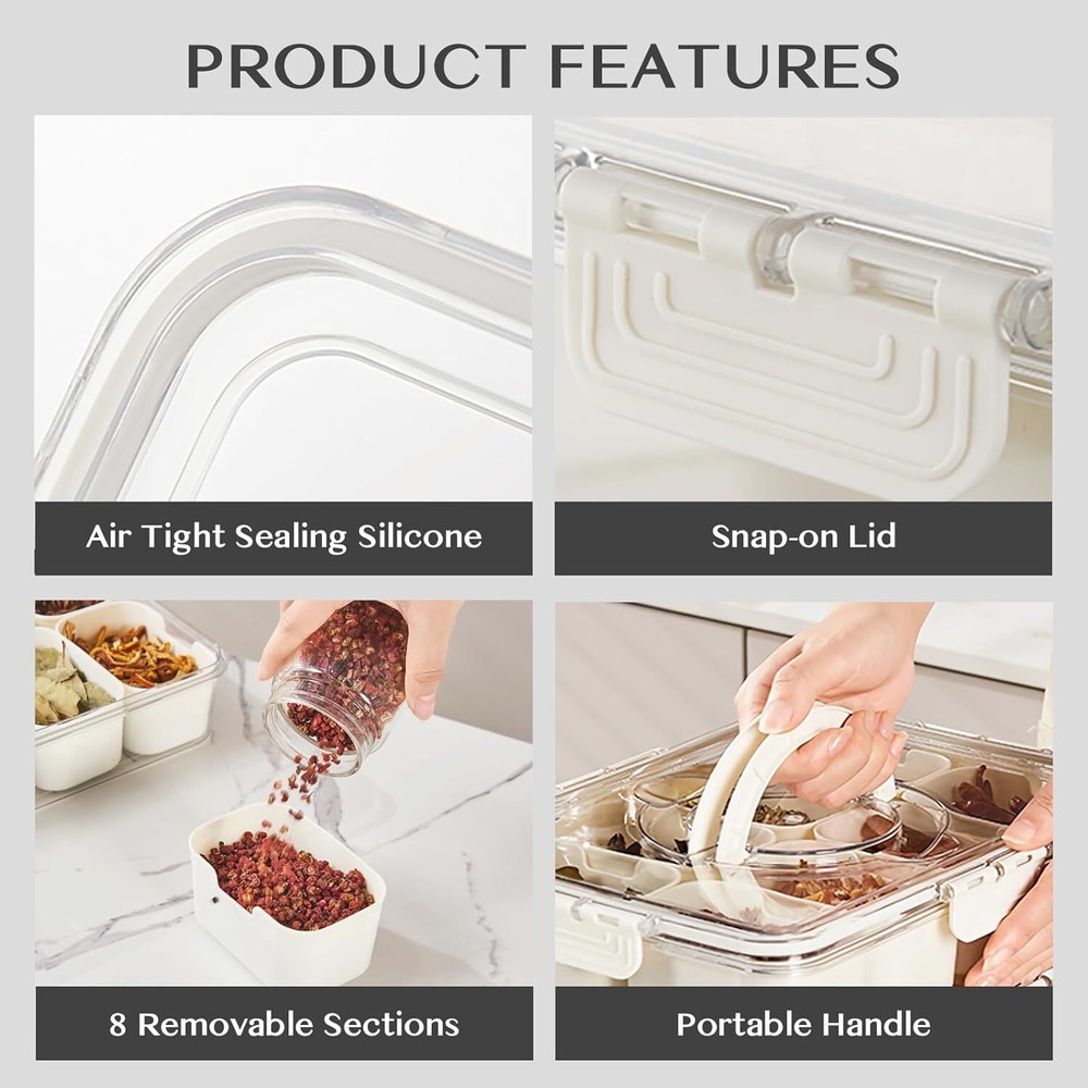 Portable 8-Compartment Snackle Box Container with Divided Serving Tray