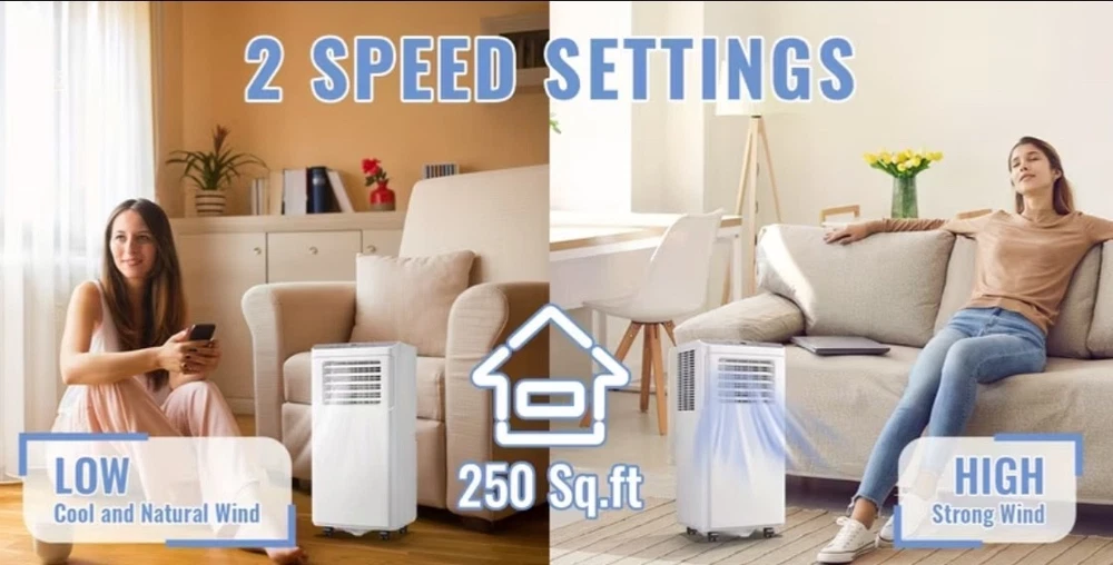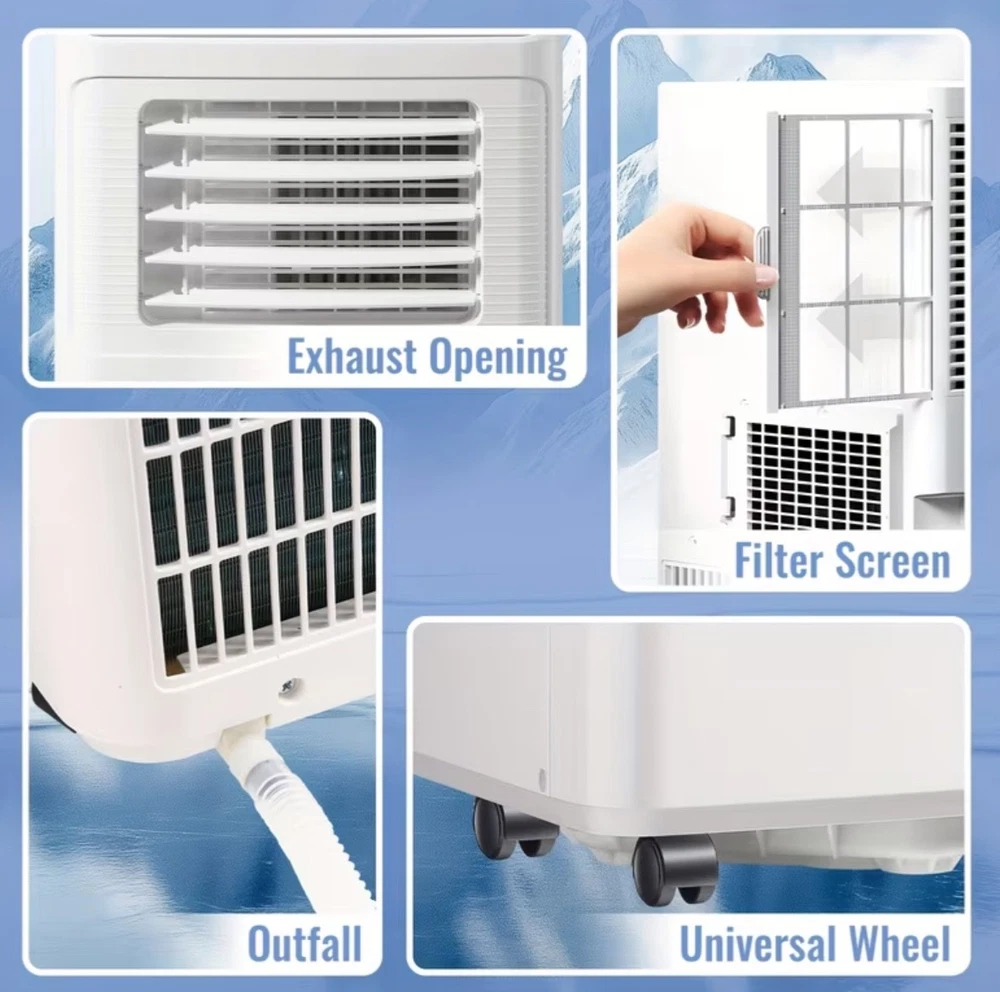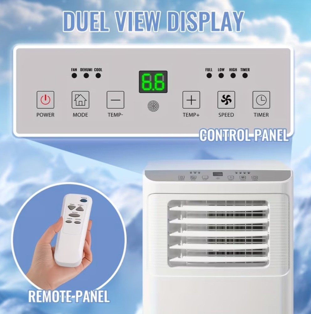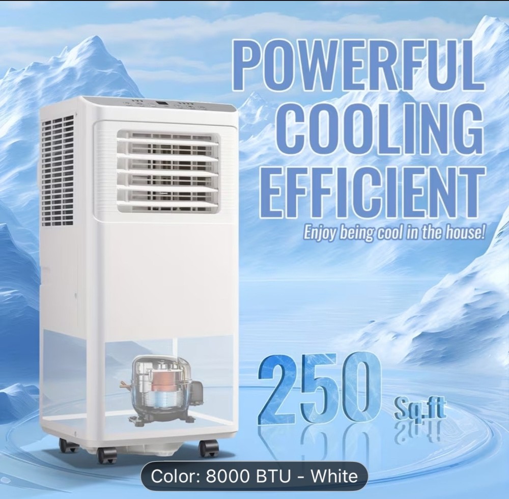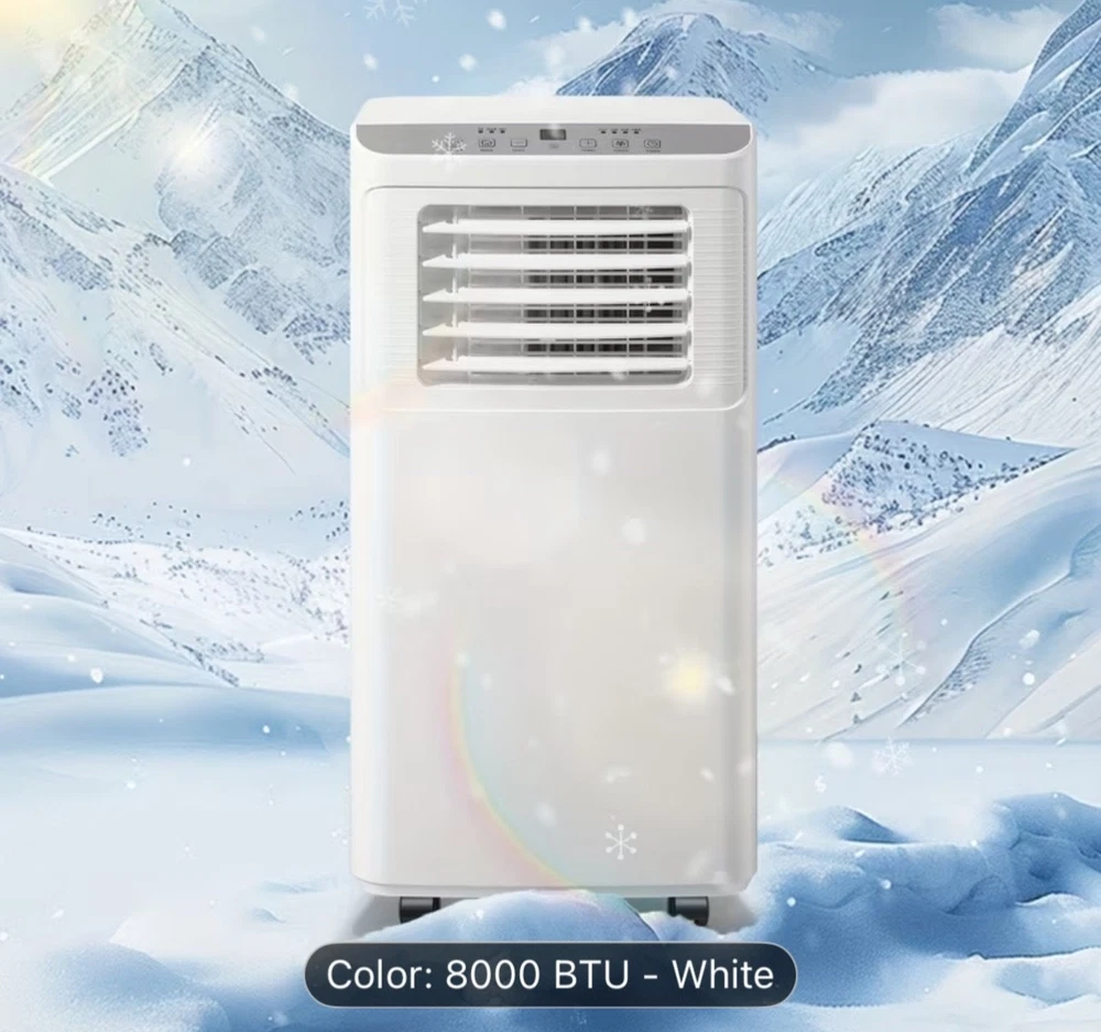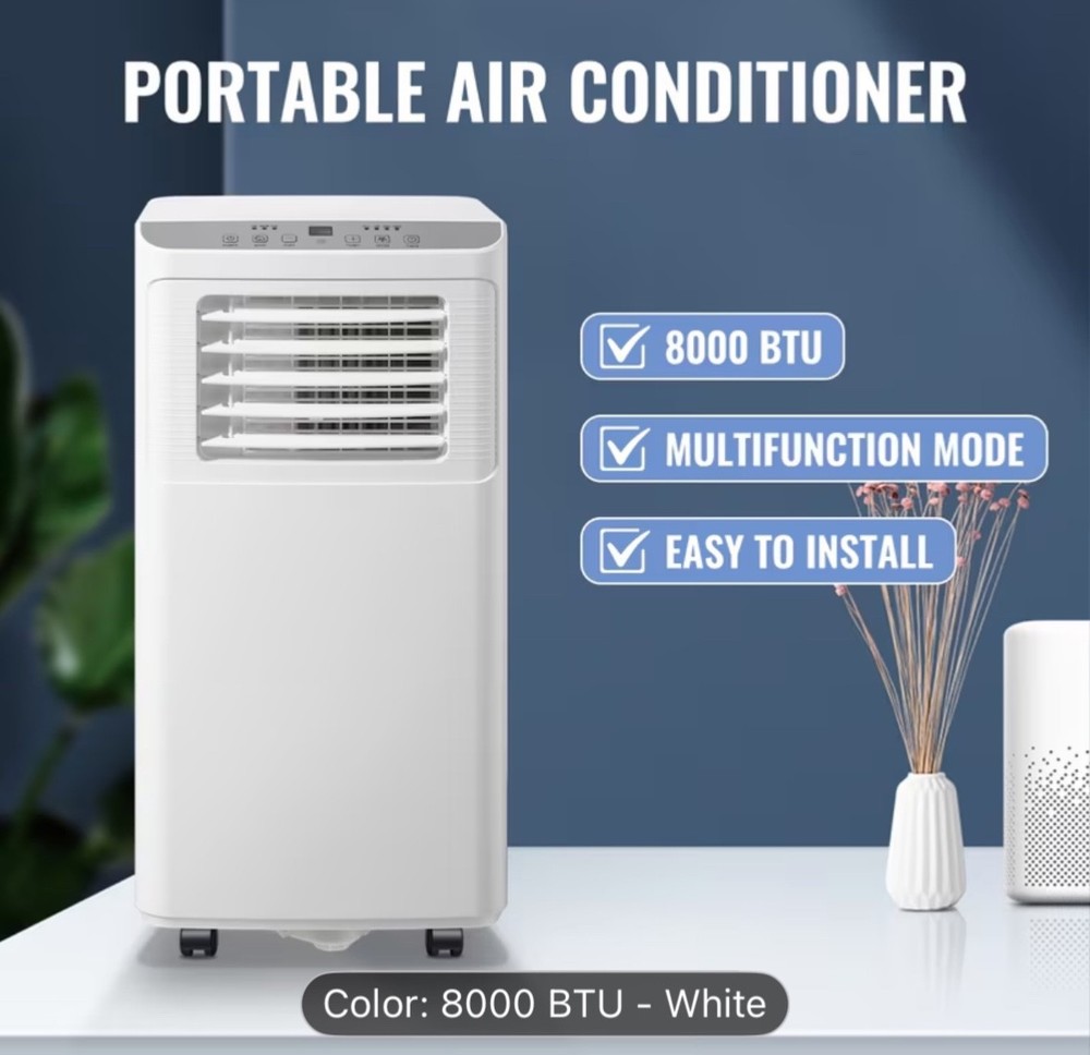 The Portable Air Conditioner is a versatile 3-in-1 unit that provides cooling, dehumidification, and fan functions. With a powerful 8000 BTU cooling rating, it can effectively cover an area of 201-250 sq ft. It comes in a sleek white color and features a convenient remote control for easy operation. This unit is plug powered and designed for portability, making it ideal for use in various environments. With a 24-hour timer and dehumidifier capabilities, this air conditioner offers added convenience and functionality for a comfortable living space.