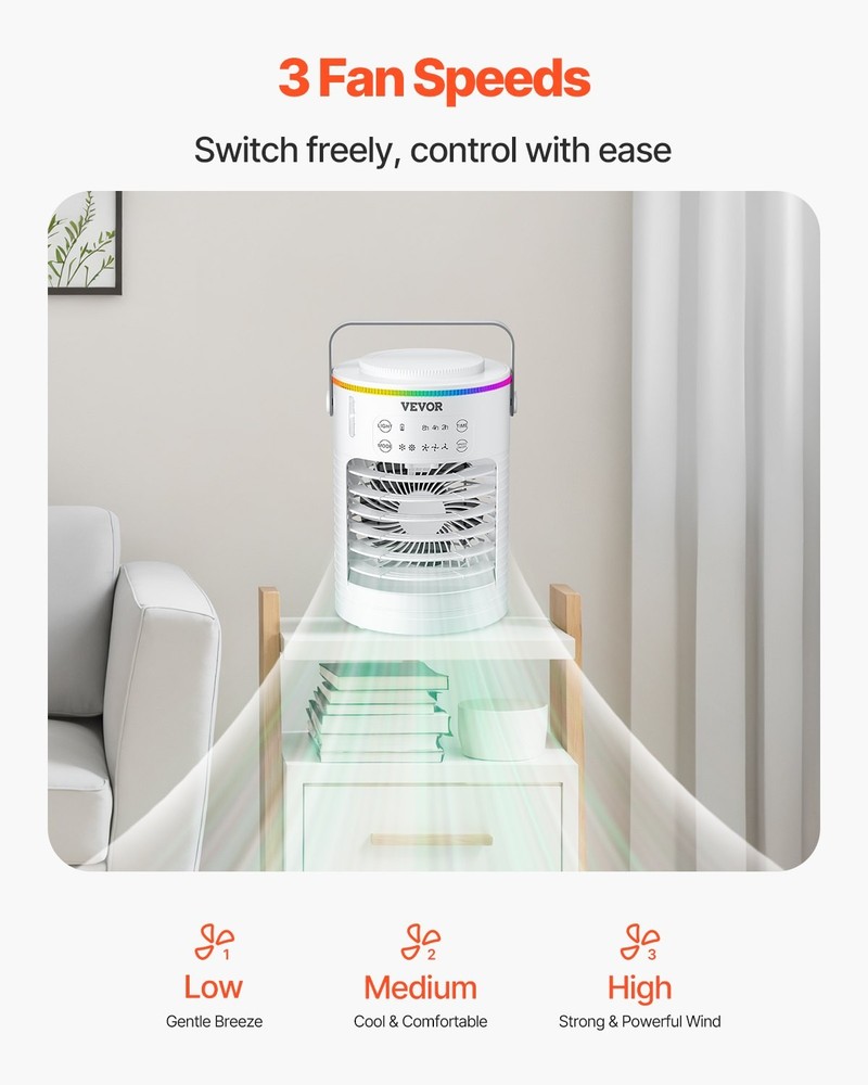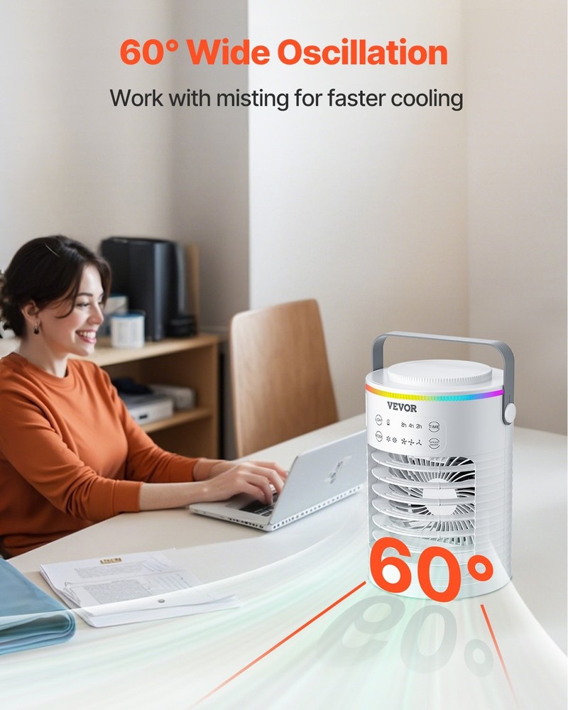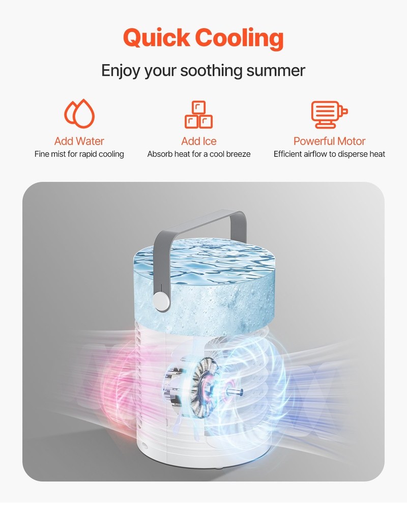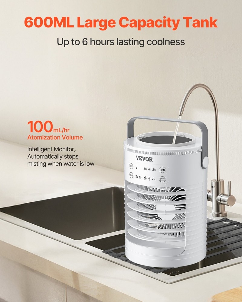 ●【Product Information】All-in-One Mini AC UnitFlexible Cooling ModesUltrasonic Mist MagicTimed Cooling & Vivid ColorsGo-Anywhere CoolingMultiple Power OptionsFan Speed Levels: 3 LevelsWater Tank Capacity: 600 mlItem Model Number: CF-516ERated Power: 7WFan Speed: 9.84 ft/s (3.0 m/s)Product Dimensions: 6.0 x 6.0 x 8.9 in / 152 x 152 x 226 mmNet Weight: 1.8 lbs / 0.8 kgTimer Function: 2H/4H/8H ✅ 【Features】● 4-in-1 Multifunctional Design: This portable air conditioner combines fan, humidifier, air cooler, and 7-color night light—into one compact unit. Utilizing ultrasonic atomization, it transforms water into fine mist, delivering a cool, refreshing breeze that quickly lowers the temperature. And 7-color lighting creates a soothing ambian... VEVOR Portable Air Conditioner,4-in-1 Evaporative Air Cooler,3-Speed Mini Air Conditioner with Smart Timer,600ml Water Tank,7-Color Light,Personal Mini Desk AC Fan for Bedroom Office Room ●【Product Information】 All-in-One Mini AC Unit Flexible Cooling Modes Ultrasonic Mist Magic Timed Cooling & Vivid Colors Go-Anywhere Cooling Multiple Power Options Fan Speed Levels: 3 Levels Water Tank Capacity: 600 ml Item Model Number: CF-516E Rated Power: 7W Fan Speed: 9.84 ft/s (3.0 m/s) Product Dimensions: 6.0 x 6.0 x 8.9 in / 152 x 152 x 226 mm Net Weight: 1.8 lbs / 0.8 kg Timer Function: 2H/4H/8H ✅ 【Features】 ● 4-in-1 Multifunctional Design: This portable air conditioner combines fan, humidifier, air cooler, and 7-color night light—into one compact unit. Utilizing ultrasonic atomization, it transforms water into fine mist, delivering a cool, refreshing breeze that quickly lowers the temperature. And 7-color lighting creates a soothing ambiance, perfect for summer relaxation. ● 3 Speed Settings: Easily switch between a gentle breeze and a strong cooling wind with just one press. Whether you need a quiet companion for reading or rapid cooling on scorching summer day, this evaporative air cooler offers the perfect wind speed to suit your needs. ● Lasting Coolness: With a top-fill 600ml water tank, this mini air conditioner lets you add ice cubes or ice packs for an extended cooling effect. Enjoy up to 6 hours of refreshing airflow without frequent refills. And it will automatically stops misting when the water is low, ensuring safe and reliable operation. ● Low-Noise & Durable: Built with premium materials and a waterproof, anti-clog motor, this mini desktop air conditioner delivers quiet, smooth performance. Experience powerful cooling without disrupting your work or sleep, all while enjoying long-lasting reliability. ● Energy-Saving Timer: Our portable air conditioner AC fan offers 2/4/8-hour auto shut-off settings, making it ideal for nighttime use or short absences. This thoughtful feature ensures you don’t have to worry about forgetting to turn it off, providing peace of mind and energy efficiency. Item Specifics Type Portable Evaporative Cooler Brand Unbranded Capacity 600 ml About us Dear buyer, Thank you for visiting my store! Our warehouses are located in many regions around the United States. According to the customer's delivery address. Use USPS/UPS/DHL logistics transportation service. Prioritize the best quality logistics solutions to transport packages. Ensure package delivery time, At the same time. Have any after-sales problems, Feel free to contact us. At your service Payment PayPal is our preferred method of payments it's the quickest, easiest and most secure way to pay for your goods or services online. PayPal offers buyer and seller protection should there be a problem. If you do not have a PayPal account, to get started and buy your first item with us is very easy. Simply click on the 'Buy It Now' button and follow the eBay checkout steps. Select PayPal as the payment method you then will be given the chance to enter your card details in to PayPal's secure checkout in order to pay for your order. Shipping 1. Your purchase is shipped directly to you as soon as we have received your cleared payment. 2. Normally all of parcels would be shipped within 3days(From Monday to Saturday). 3. We will send information on eBay or email if the parcel was delayed due to our holiday. 4. We provide three kinds of shipping for choice. Shipping way depend on delivery address. Returns If an unit is received defective, of course we take it back or replace it. If the unit is received as expected, we must charge for our expenses if you want to send it back. We have to charge for the work of handling, retesting and restocking. DESCRIPTION PAYMENT SHIPPING RETURN POLICY CONTACT US Shop Category Store Home Home & Garden ◈ Tools ◈ Ride-Ons & Tricycles ▷ Furniture ♢ Sofa Other Hot Item Tool| 6-Inch 412 CFM Inline Duct Fan: Air Circulation Vent Blower for Hydroponic USD 108.40 Tool| Large Package Delivery Parcel Mail Drop Box for Black, 10.5" x 15.5" x 41. USD 264.60 Tool| 71" Metal Garage Storage Cabinet with Wheels - Heavy-Duty Tool| Storage Ca USD 272.00 Tool| Peat Moss Spreader 24inch,Compost Spreader Metal Mesh,T shaped Handle for USD 140.90 Tool| 8 Pockets Horticulture Raised Garden Bed Elevated Wood Planter Box Stand w USD 115.20 Picture New List Item Help & Info Payment Policy Shipping Policy Return Policy FAQ About Us VEVOR Portable Air Conditioner,4-in-1 Evaporative Air Cooler,3-Speed Mini Air Conditioner with Smart Timer,600ml Water Tank,7-Color Light,Personal Mini Desk AC Fan for Bedroom Office Room ●【Product Information】 All-in-One Mini AC Unit Flexible Cooling Modes Ultrasonic Mist Magic Timed Cooling & Vivid Colors Go-Anywhere Cooling Multiple Power Options Fan Speed Levels: 3 Levels Water Tank Capacity: 600 ml Item Model Number: CF-516E Rated Power: 7W Fan Speed: 9.84 ft/s (3.0 m/s) Product Dimensions: 6.0 x 6.0 x 8.9 in / 152 x 152 x 226 mm Net Weight: 1.8 lbs / 0.8 kg Timer Function: 2H/4H/8H ✅ 【Features】 ● 4-in-1 Multifunctional Design: This portable air conditioner combines fan, humidifier, a