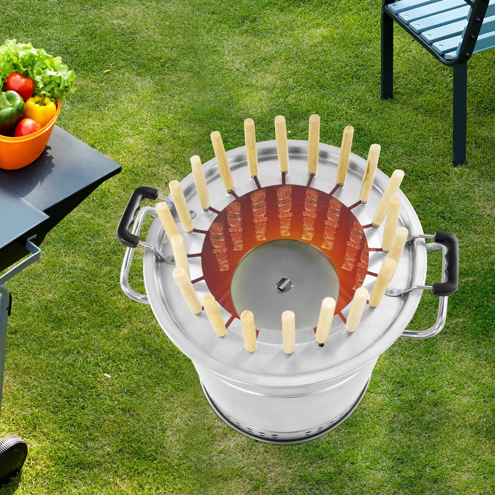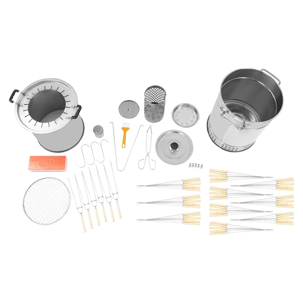 Portable BBQ Charcoal Grill, Stainless Steel Charcoal Grill with 20 Skewers Description The charcoal grill combines the charm of traditional barbecue with modern technology. It is the ideal choice for outdoor gatherings, family picnics, or backyard barbecues! Using high-grade 201 stainless steel and incorporating a humanized design, it provides an excellent experience of durability and efficient grilling. Redefining your barbecue experience and igniting your taste buds for a revolution! Let every gathering become a cherished memory. Combining the appeal of traditional barbecuing with advanced 201 stainless steel and a user-friendly design, this grill delivers lasting durability and excellent performance. Great for outdoor parties, family picnics, or backyard BBQ — it's time to elevate your grilling game and turn every bite into a flavor-packed moment. Create unforgettable memories with every gathering! Key Features Built to Last: It's made of thickened 201 stainless steel, treated with a polishing process, which prevents rust, wear, and deformation. Sturdy Construction: Crafted from reinforced 201 stainless steel, it undergoes a polishing treatment that safeguards against rust, wear, and deformation for long-lasting performance. Multi-functional: Two barbecue methods can be selected according to different types of food. You can hang 20 skewers of food at the same time, or choose to use the barbecue net for meeting the gathering needs. Versatile Grilling: You can choose between two barbecue methods to suit different foods — hang up to 20 skewers at once, or use the barbecue net to easily accommodate group gatherings. High Cost-effectiveness: The complete accessories, such as 50pcs skewers with wooden handles, 6pcs skewers with double forks, and a barbecue net, make it simple to grill various foods with value for money. Value-Packed Grilling Kit: It comes complete with 50 wooden-handled skewers, 6 double-fork skewers, a barbecue net, and more — offering versatile cooking options and exceptional value for your grilling needs. Good Performance: The cylinder shape ensures that food is heated evenly, and the thermal insulation cotton ensures excellent heat insulation to reduce energy loss. Additionally, the breathable holes at the bottom of the outer cylinder help increase air circulation and boost firepower. Efficient Grilling: The cylindrical shape promotes even heating, while the insulated cotton minimizes energy loss. Bottom ventilation holes enhance airflow, maximizing heat efficiency— efficient and ready to perform. Portable and Convenient: The product comes with sturdy side handles for easy carrying, while its detachable structure allows it to be washed with water directly. The smooth and rounded edges further protect your hands from scratches. User-friendly Design: It features side handles for high portability, and a detachable structure for quick and easy water washing, while the smooth, rounded edges ensure a comfortable and safe use. Details Oil Drip Pan: It can catch dripping oil without coming into contact with the charcoal fire, avoiding oil fumes. Oil-Catching Pan: It collects dripping oil and keeps it from coming into contact with the charcoal fire, thus preventing the generation of oil fumes. Meat Skewering Tool: This tool helps you skewer meat more efficiently, saving time and labor. Practical Meat Skewering Tool: Designed to streamline the meat skewering process, this tool saves time and reduces manual effort, making preparation quick and efficient. Application It allows you to enjoy a wonderful barbecue time with your family and friends. It is ideal for picnics, camping, gatherings, at the beach, etc. Specifications Material: 201 Stainless Steel, Thermal Insulation Cotton Process: Polishing Color: Silver Shape: C ylinder Assembly Required: Yes Recommended Uses For Product: Outdoor Applicable People: Within 6 People Fuel Type: Charcoal Capacity: 20 Skewers Gross Weight: 4.85kg/10.69lbs Net Weight: 4.1kg/9.04lbs Product Size (D*H): 33*38cm/13*15inch Package Size: 39*33*32cm/15.35*13*12.59inch Package Included 1* Charcoal Grill 50* Skewers with Wood Handles 6* Skewers with Double Forks 1* B arbecue Net 1* Meat Skewering Tool 1* Oil Brush 1* Oil Drip Pan 1* English Manual All Accessories for Assembly Notes The two barbecue types(vertical hang barbecue and grill net barbecue) cannot be used at the same time. Please note that the oil drip tray must be filled 2/3 water; do not dry-grill. It is recommended to rotate the skewer handle during the barbecue process for a better heating effect. Please note that the burning of charcoal will produce carbon monoxide. Please use it in a ventilated environment to keep good air circulation. Please allow the slight color difference caused by the shooting light and a 1-3cm error due to manual measurement, and make sure you do not mind before you order. Payment Delivery details Terms of sales About us Contact us Payment We accept ebay payment 。 Fees such as import duties, taxes are not included in the item price or shipping costs. These charges are the buyer's responsibility. Delivery details Shipping: 2-9 working days to: USA Terms of sales We maintain high standards of excellence and strive for hundred percent customer satisfaction. Feedback is very important to us. We hope that you contact us immediately before you give neutral or negative feedback, so that we can address your concerns. It is impossible to address issues if we do not know about them! About us Your satis faction is our ultimate goal. We work hard to earn your trust and future business. Our certified technicians have tested each item before shipping. The unit comes with 1 year limited warranty on all manufacturing defects. a) If you receive a defective item, you may return it or ask for a discount. Please contact us within 14 days after you receive the package. b) What you returned must be intact and in its original packaging as re? u. Customer is responsible for ship