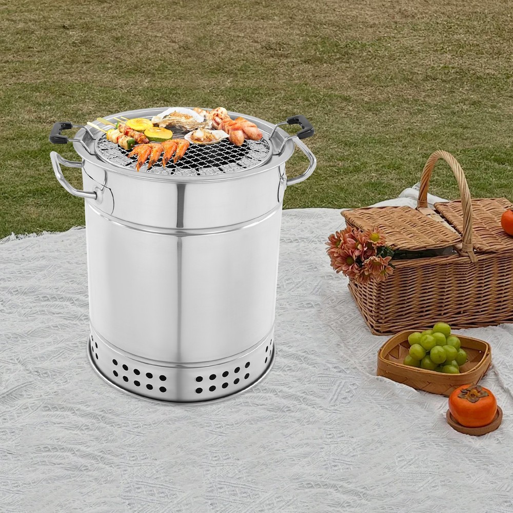 $ 528.0Large Portable Charcoal Grills, Stainless Steel BBQ Grill Barrel, Barbecue Grill