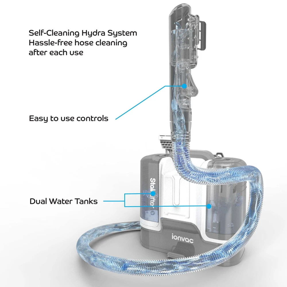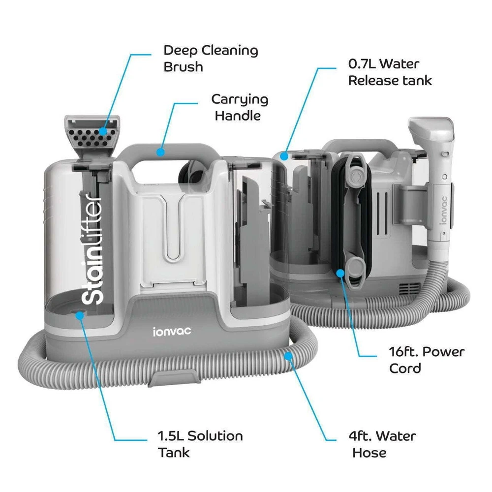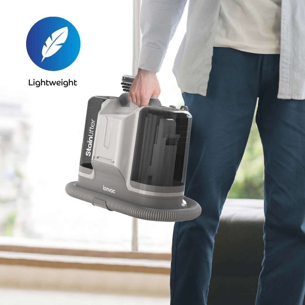You may also like Portable Spot Cleaner 2X Suction Pet Stain Odor Remover Carpet Upholstery New 225.52 USD 237.39 USD Free shipping 5% off Tough Stains Deep Cleaning Carpet Upholstery Stain Pretreat Cleaner 22oz New 10.45 USD 11.0 USD Free shipping 5% off New 22oz Carpet Upholstery Stain Cleaner Tough Deep Cleaning Pretreat Stains 10.45 USD 11.0 USD Free shipping 5% off The solution to your cleaning needs throughout your home, car, and beyond is here with the ionvac Stain Lifter! Featuring a potent spraying function and up to 12kPa of suction power, this multi-surface spot cleaner machine can quickly remove even the toughest stains from carpet, upholstery, rugs, beds, stairs, auto interiors, and more. Cleaning is easy too – just spray, scrub, and vacuum the soiled surfaces to lift any stains, from wine spills to pet messes. And not only will it make your home a "no stain zone" with its deep cleaning power, but it even has a self-cleaning mode to flush out debris from the hose. Plus, the ionvac Stain Lifter’s large-capacity dual water tanks make it easy to clean large areas, while its compact and lightweight design allows for greater portability and use anywhere. Carpet and upholstery vacuum cleaner with powerful 12kPa suction 3-inch Deep Cleaning Brush attachment with spray action penetrates into carpet and textile fibers to remove stains with ease Portable, lightweight design with 4-foot hose, 16-foot power cord, and built-in carry handle Dual water tanks are easy to clean and allow for removing large stains in a single session Self-cleaning function for hassle-free hose cleaning Effortlessly cleans spills, pet stains, and more from rugs, upholstery, and car interiors (add cleaning solution for an even deeper clean) Specs: Input – 110-120V; Power – 450W; Clean Water Tank – 1.8L; Dirty Water Tank - .6L; Dims – 12.5 x 8.8 x 12 in., 8 lbs. You may also like Upholstered Barrel Club Chair Faux Leather Armchair Durable Living Room Home US 132.38 USD 139.35 USD Free shipping 5% off Portable Butane Camping Stove 1 Burner Easy Setup Outdoor Cooking Tool Durable 35.52 USD 37.39 USD Free shipping 5% off 36pc Kitchen Gadget Set W/ Cooking Utensils Measuring Cups Clips Organizer New 28.46 USD 29.96 USD Free shipping 5% off AR500 Steel Spinner Target Durable Practice Target W/ Stand Rimfire Centerfire 43.9 USD 46.21 USD Free shipping 5% off Freeze Dried Broccoli Florets Stems Long Term Storage Emergency Food 28 Servings 25.4 USD Free shipping AR500 Steel Shooting Target Spinner W/ Stand New Rimfire & Centerfire Pistols 43.9 USD 46.21 USD Free shipping 5% off High Velocity 9 inch Metal Floor Fan 3 Speed Adjustable Tilt Indoor Cooling New 34.43 USD 36.24 USD Free shipping 5% off Machine Washable Non-Skid Runner Rug Vintage Design Soft Polyester 2'5" x 7" Hot 47.42 USD 49.92 USD Free shipping 5% off Wood Fencing Pliers Durable Nickel Chromium Steel Anti Pinch Non Slip Grips New 41.83 USD 44.03 USD Free shipping 5% off Plush Cat Tree W/ Scratching Post Hammock Tunnel Interactive Play Space Home New 40.36 USD 42.48 USD Free shipping 5% off 2nd Foods Fruit & Cereal Puree Variety Pack Babies 6 Months 32 Tubs 4 oz each 35.58 USD 37.45 USD Free shipping 5% off 3-in-1 Tool Box Organizers W/ 52 Compartments Store Hardware Craft Supplies New 89.05 USD 93.74 USD Free shipping 5% off