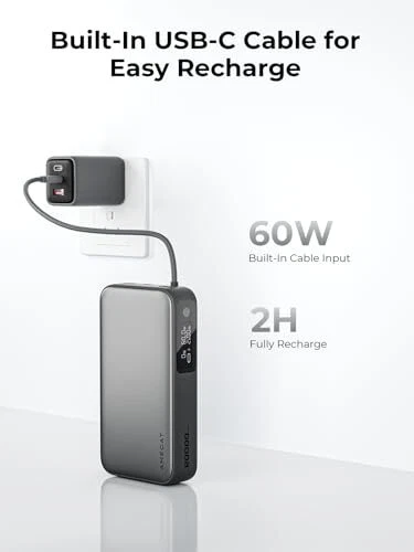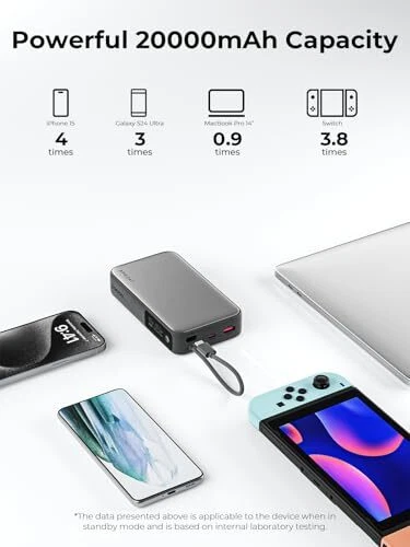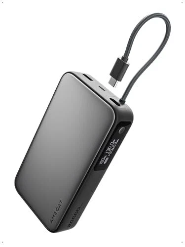 20000mAh Large Capacity: With a large 20000mAh capacity, this power bank provides sufficient power for your iphone, macbook, and other devices. It can charge Macbook Pro 14" about 1 time, keep all your gadgets running non-stop. Robust 100W Output: Portable Charger can rapidly charge your laptop, powering up your mackbook 14 from 0 to 50% in just about 30 minutes, for iphone 15 Pro can be charged 0 to 58% in 30 minutes. Experience lightning - fast charging with 100W output. Built-in USB-C cable: This battery pack with cables allows you to say goodbye to tangled wires and bulky chargers when traveling and working. Just pull out the cable, connect your device, and start charging hassle - free. Digital display: The phone battery bank is equipped with an LED display that shows the remaining battery life precisely. Easily monitor the power status to avoid being caught off - guard with a dead battery. Comprehensive protection: The powerbank has a built-in smart chip with overcharge, overvoltage, overcurrent, short circuit, and overheating protection. You can be free from trouble and create a safe charging environment for you.