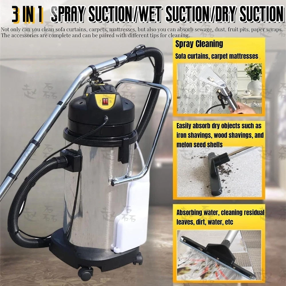 A new cleaning machine, can be used for carpets, sofas, curtains, but also can vacuum, absorb water, super power, can clean carpet 2 square meters per minute. Features: 1.Stainless steel body, Strong and Durable 2.Easy to move, Suitable for different environments 3.Quiet motor, strong suction Package Included: 1× Cleaning Machine Note: After absorbing water, all accessories need to be dried in the sun before the next use. Commercial Carpet Cleaning Machine Portable Carpet Cleaner Machine Extractor New 40L/11Gal 3in1 Household Carpet Cleaning Machine Portable Carpet Cleaner Extractor Dust Collector for Sofas Curtains Floor, Home Hotel A New Cleaning Machine, Can Be Used for Carpets, Sofas, Curtains, but Also Can Vacuum, Absorb Water, Super Power, Can Clean Carpet 2 Square Meters per Minute. 40L Carpet Cleaning Machine: - Material: Stainless Steel - Capacity: 40L - Power: 1034 W - Voltage: 110V - Pump Power: 34W - Water Absorption Motor Power: 1000W - Cooling Mode: Circulating Air Cooling - Height: 885mm - Barrel Diameter: Φ335mm - Air Flow: 35L/S - Vacuum Suction: 230mbar - Power Cord Length: 7 Meters - Fitting Diameter: Φ40mm - Weight: 25kg 60L Carpet Cleaning Machine: - Material: Stainless Steel - Capacity: 60L - Power: 2110 W - Voltage: 110V - Tank Diameter: 440mm - Vacuum Suction: 250 bar - Air Flow Rate: 106 L/S - Clean Water Capacity: 20L - Pressures: 116PSI - Weight: 32kg Features: 1) Stainless steel body, Strong and Durable 2) Easy to move, Suitable for different environments 3) Quiet motor, strong suction Package Included: 1x Cleaning Machine Payment Delivery details Terms of sales About us Contact us Payment We accept ebay payment 。 Fees such as import duties, taxes are not included in the item price or shipping costs. These charges are the buyer's responsibility. Delivery details Shipping: 2-9 working days to: USA Terms of sales We maintain high standards of excellence and strive for hundred percent customer satisfaction. Feedback is very important to us. We hope that you contact us immediately before you give neutral or negative feedback, so that we can address your concerns. It is impossible to address issues if we do not know about them! About us Your satis faction is our ultimate goal. We work hard to earn your trust and future business. Our certified technicians have tested each item before shipping. The unit comes with 1 year limited warranty on all manufacturing defects. a) If you receive a defective item, you may return it or ask for a discount. Please contact us within 14 days after you receive the package. b) What you returned must be intact and in its original packaging as re? u. Customer is responsible for shipping costs of the returned item. c) We will cover the cost of shipping back t with the shipping rate indicated in the registration page. We will send you a new unit or refund the full payment you paid. Thank you. Contact us Business Hour Business Hour: Monday To Friday: 8:30 AM to 5:00 PM (Beijing China time) Due to time zones, our reply to your questions may not be immediately. But within above working time, we will reply your email within 24 hours. If it's non-workdays, please kindly be patient and wait till Monday. Please contact us with ebay message. Please feel free to contact us if you have any questions. Monday To Friday: 8:30 AM to 5:00 PM (Beijing China time) Due to time zones, our reply to your questions may not be immediately. But within above working time, we will reply your email within 24 hours. If it's non-workdays, please kindly be patient and wait till Monday. Please contact us with ebay message. Please feel free to contact us if you have any questions. Feature* Durable, High reliability Features NEW DESIGN Type Canister Brand Unbranded Model 3 in 1 Cleaning Machine Cord Type Corded Included Accessories Floor Brush Capacity 40L/60L Voltage 110 V Color Silver Charge Time Corded Electric Smart Home Compatibility Nest Smart Home Protocol Thread Cooling Mode Circulating air cooling Material Stainless Steel MPN Does not apply EAN dose not apply UPC dose not apply