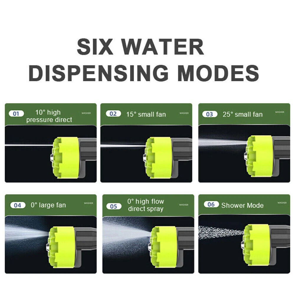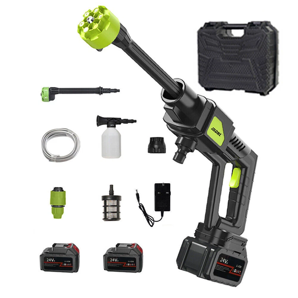 Features : 【Upgraded brushless motor】 【Multiple Spray Patterns】 【POWERFUL BATTERY】 【Draw Water from Anywhere】 【Versatile Use】 Specification : Motor: Brushless Motor Material: ABS and copper Power Supply:Lithium battery Battery capacity: 12000mAh(Note: A single battery is 1200mah, a total of 10 batteries are connected in series and parallel) Power:300W Rated voltage:21V maximum voltage:48V Product pressure: 30Bar Drive: Lithium battery wireless drive Spray type of water gun: 6-IN-1 Multi-Function & Rotatable Spray Nozzles Jet stroke: 6-12 meters Water pipe length: 5 meters Car washing equipent type: household car washing machine Water source type: Bucket / Faucet Self-priming Scope of application: car washing, watering flowers, water vegetables, spraying, garden cleaning, etc. 6 In 1 Cordless Car High Pressure Washer Jet Water Wash Cleaner Gun + 2 Battery Features : 【Upgraded brushless motor】: Most cordless pressure washers use brushed motors for it ,we use brushless motors .brushless motor is upgrade motor ,it has higher efficiency and controllability, longer working life ,save electric power , brushless motors lack brushes and physical commutators, they require less overall maintenance .and its cost is also much higher than brushed motor. 【Multiple Spray Patterns】:The battery powered pressure washer is equipped with adjustable nozzles from 6in1 nozzles and foam sprayers. You can turn the nozzle freely according to your cleaning needs. Easily removes all kinds of stubborn stains. Suitable for a variety of scenarios, including vehicle cleaning, exterior wall and floor cleaning, window and door cleaning, etc. Foam bottle attachment for quick foaming to easily remove stains from vehicles and windows. 【POWERFUL BATTERY】:Powered by 2 21V batteries, it is not limited by wires, very convenient to carry outdoors. One charge can provide up to 30-50 minutes of uninterrupted cleaning experience. 【Draw Water from Anywhere】: The portable pressure washer with a 16.4FT hose that makes it easy to take water from any source, so it's suitable for rivers, pools or buckets. It can also be connected to a faucet. The hose is equipped with a filter that effectively filters out particles, waste leaves or sludge, making it easy to draw water from buckets, pools, rivers or any water source. 【Versatile Use】Widely used for cleaning vehicles, bicycles and boats. The portable electric cleaner is also perfect for a variety of cleaning tasks in the home and garden. It effectively waters plants, cleans walls, floors, bathrooms, swimming pools, doors, driveways, fences and hard-to-reach corners. Specification : Product name: Wireless High Pressure Car Wash Washer Gun Motor: Brushless Motor Material: ABS and copper Power Supply:Lithium battery Battery capacity: 12000mAh(Note: A single battery is 1200mah, a total of 10 batteries are connected in series and parallel) Power:300W Rated voltage:21V maximum voltage:48V Product pressure: 30Bar Drive: Lithium battery wireless drive Spray type of water gun: 6-IN-1 Multi-Function & Rotatable Spray Nozzles Jet stroke: 6-12 meters Water pipe length: 5 meters Car washing equipent type: household car washing machine Water source type: Bucket / Faucet Self-priming Scope of application: car washing, watering flowers, watering vegetables, spraying, garden cleaning, etc. Package included: 1x Wireless car washing machine 1x Lithium battery 1x Charger 1x 5m Water pipe 1x 6-in-1 nozzle 1x Filter 1x Foam pot 2x Adapter Payment Shipping Return Contact us About us Payment 1.Paypal, Credit Card, G Pay etc, many payment way is accepted. 2.Please be sure your shipping address is correct before make a payment. Shipping 1.We will ship out the item within 1-3 business days after comfirming the payment, appreciate your patience. 2.If the items are broken on the way( we will check the orders clearly before we sent them ),please contact us in 3 days you received it. We will send you a new one or refund your payment. Return 1.We stand behind every buyer.Items can be returned for exchange or refund within 30 days. 2.Please contact us when you have any confusion of our item, we will solve the trouble for you as soon as possible. Contact us 1.This is professional Seller.We will reply your message within 24 hours. 2.Please contact us whenever you have any question about the item. We will deal with it as soon as possible. 3. If you are unhappy with the item or our service,please Contact Us before leave feedback,just give me a chance,thank you! About us 1. Unless specified otherwise, all our products are IN STOCK and are shipped from Local warehouse - Not Overseas! 2. We provide a 30 day Satisfaction Guarantee or your money back (provided items are in the same new and resaleable condition.) 3. We have a PayPal Verified Business Account, please buy with Confidence! 4. Every item will be tesrted before send.We know our products well and if we don't have the answers we will do our best to find them for you! 5. Our friendly team look forward to serving you! Your satisfaction is our No.1 Priority We will do our best to satisfacy you.