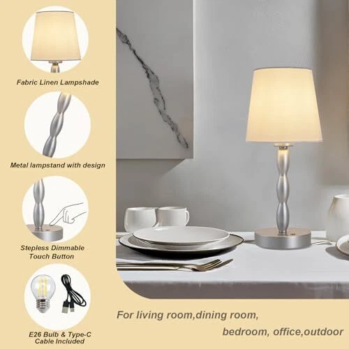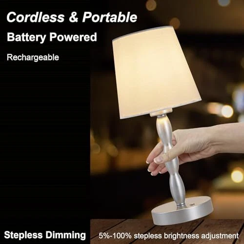 Menu 1. We require immediate payment. 2. We currently accept payment via eBay managed payments only. 3. Once payment is cleared, we will dispatch your shipment within 1-3 business days. Please refer to the "Shipping" tab for more information regarding shipping speed to your destination. Portable Cordless Table Lamp,Touch Desk Lamp Rechargeable Battery Powered, 3-Level Brightness Stepless Dimmable Bedside Night Lamp,for Bedroom/Restaurant/Bars/Outdoor, Bulb Included,Silver Product description 【Cordless and Portable Design Bedside Lamp】This is a practical table lamp with simple modern design. Its cordless design eliminates tangled cords and reduces cluttered visual space. Moderate weight and size, ready to be picked up and moved elsew.The modern and minimalist fabric shade design is the perfect decoration for your home, whether it's on or off. 【Rechargeable Battery Powered Desk Lamp】Equipped with a built-in rechargeable battery and a convenient Type-C charging cable, this touch lamp can be used wirelessly after a full charge. 【Three Brightness Levels&Stepless Dimmable】Enjoy customized lighting with three brightness settings. Simply flick the switch to adjust the intensity of the light and create your desired ambiance. Additionally, the touch button allows for stepless dimming, allowing you to fine-tune the brightness from 5% to 100%, giving you complete control over your lighting. 【Thoughtful Gift & Versatile Use】This portable touch lamp is an ideal gift for families or friends. It comes with an E26 dimmable bulb in the package, making it easy to install right out of the box.It serves as a good helper for various occasions, such as romantic dinners, family parties, and outdoor lighting. Its cordless function allows for convenient use anyw. 【Excellent After-sales Service】This cordless desk lamp offers a 12-month quality care period and dedicated after-sales service. If you are not satisfied with your purchase, please contact us, and we will promptly address any concerns. PLEASE MESSAGE US IF YOU HAVE ANY OTHER QUESTIONS, AND MANY THANKS FOR READING ALL OF THIS. Copyright ©#. All Rights Reserved.