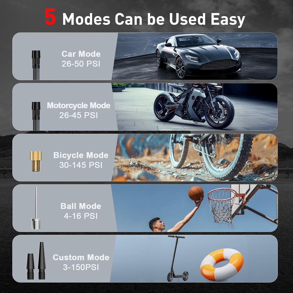 Store New Arrivals Add to Favorite View Feedback Contact Tire Inflator Portable Air Compressor - Cordless Air Pump for Car Tires - 150PSI &10000 Mah Battery Portable Tire Inflator for Car with Pressure Gauge, Mini Tire Pump for Bike, Motorcycle, Ball Description Item model number ATJ-008 Style atvs Power Source Battery Powered Noise Level 20 dB Country of Origin China Warranty Description 3 Batteries Included? Yes Batteries Required? Yes Battery Cell Type Lithium Ion Material Plastic Model Name ATJ-008 Item Package Quantity 1 Item Weight 1.15 pounds Special Features Portable, Cordless, Automatic Shut-Off, Quick Inflation Special Feature Portable, Cordless, Automatic Shut-Off, Quick Inflation Part Number ATJ-008 Color Black Batteries 2 12V batteries required. (included) Voltage 12 Volts (DC) Recommended Uses For Product Tire Inflation Included Components USB charging cable, Mini Tire Inflator Product Dimensions 3.54 x 2.83 x 5.83 inches Size Mini 6X Faster Tire Inflation: Tire inflator offers rapid inflation up to 150 PSI, inflate 6X faster than others air pump, from 30 to 35 PSI in just 40S. The car tire air pump portable fully inflates car tires (0-36 PSI) in just 5 minutes, with a built-in gauge for precise readings. It's an essential accessory for car, bike, motorcycle, ball, and inflatables Mini & Portable Design: Portable air compressor for car tires is compact size strikes the perfect balance between portability and functionality. The air compressor is easy to carry, store in a backpack, mount on a bicycle, or keep in your car, making it ideal for emergencies, outdoor activities Multifunctional Tire Pump: Portable air pump serves as a versatile emergency tool. Our electric tire pump has 3 modes of LED lights: constant, SOS and flashing to help with tire inflation and dark conditions. With USB ports, turning it into a power bank for your electronic device Cordless Charging: Air compressor for car is equipped with 10000 mAh rechargeable battery for cordless charging. With a single full charge, you can inflate six 195/55/R15 car tires (0-36 psi). Electric air pump is ideal for emergency use, providing peace of mind for cars and motorcycles during travel on the road 5 Modes Tire Inflator: The portable tire inflator offers 5 preset inflation modes (Car, Motorcycle, Bike, Ball, and Custom Mode), with 4 pressure unit options- PSI, KPA, BAR, KG/CM. The portable air compressor also features an automatic shut-off function to ensure safety when a preset pressure is reached, and a pressure gauge for precise monitoring Prompt Service: If you have any confusion or problems, please let me know (24-hour online service), we'll take care of it for you right away Product Description The video showcases the product in use. The video guides you through product setup. The video compares multiple products. The video shows the product being unpacked. 1 Five Preset Modes 2 Preset Pressure Value 1 Power Bank Function 2 Tire Inflator Set 3 Portable & Mini 4 Product Details ABOUT US We offer the best prices around on high quality products. Our E-store includes media such as books, movies, music and games while offering electronics, toys, sporting apparel, clothing, tools, general home, garden items and more. SHIPPING We are always working hard to ensure your package arrives as soon as possible. Please understand that some factors like weather, high postal traffic, and the performance of shipping companies are outside of our control. We offer free shipping to the lower 48 states and ship within 2 business days of payment, usually sooner. We do not accept P.O. Boxes. Please provide a physical address. RETURNS We offer a 30-Day Return Policy on items which you are not completely satisfied with. You have the option for a full-refund or an exchange of the item. No returns are available on items shipped outside of the USA. PAYMENT We accept PayPal. CONTACT US This page content is yet to come Please ad us to your favorite seller and visit again later Thank You CUSTOMER SATISFACTION We try our very best to make sure every customer is completely satisfied. If there's a problem, message us! We're happy to help.