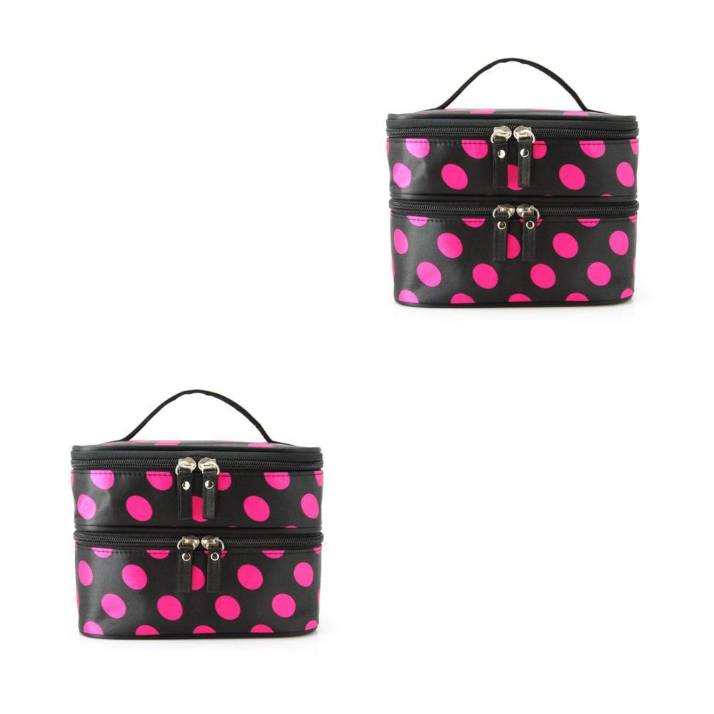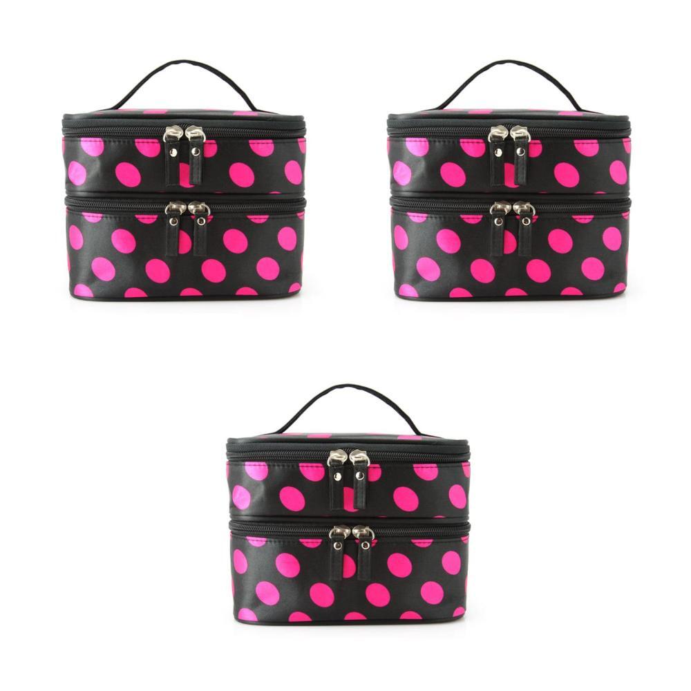 This cosmetic bag is a game-changer! The double-layer design with dual zippers keeps everything organized, and the stylish dots pattern adds a cute touch. Perfect for travel or daily use—holds all my essentials without taking up much space. Love how sturdy and well-made it is for the price!