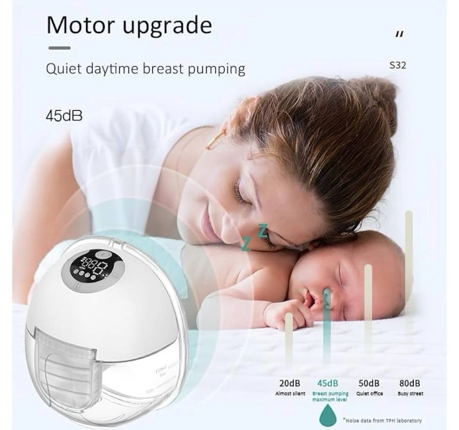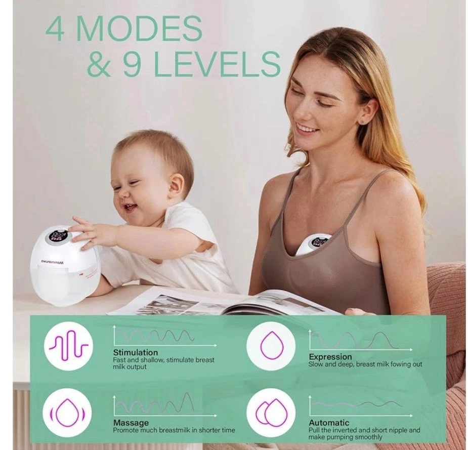 The Brand New Electric Breast Pump by Mammanuwa is a double electric breast pump in white, with a 24mm size and adjustable settings for hands-free pumping. This model, the S32, includes a double pumping kit and operates on battery power for convenience. Designed with low noise in mind, this pump offers a discreet and efficient solution for nursing mothers looking for a reliable breast pump. This product combines functionality with ease of use to meet the needs of modern mothers. It’s Lightweight, Portable, & Hands-Free with Baby Mouth Technology - BPA-Free, 4 Modes, 9 Levels - Elevate Your Breastfeeding Style with Mammanuwa S32
