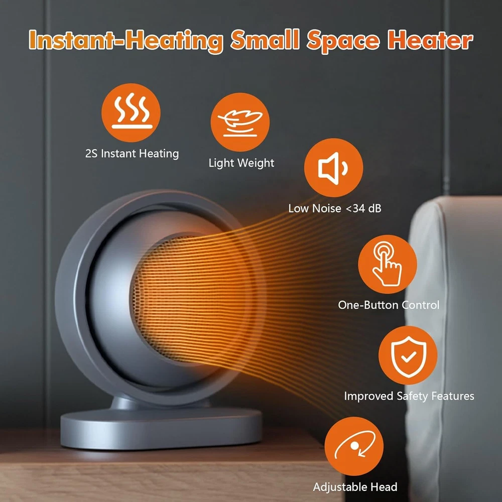 Portable Electric Space Heater, Lower Power Energy Saving Heater for Gray Product Details Brand: homifinity Special Feature: Portable, Energy Saving, Lightweight, Adjustable Tilt Head, Tip-Over Protection Color: Gray Product Dimensions: 5.51"D x 6.69"W x 8.07"H Recommended Uses For Product: Office, Bedroom, Studay Room, Desk, Home Mounting Type: Tabletop Mount Burner type: Radiant Heat Output: 380 Watts Fuel Type: Electric Voltage: 120 Volts Item Weight: 1.32 pounds Manufacturer: homifinity Country of Origin: China Item model number: A1 Power SourceHeating Method: acConvection Compact Design: This portable electric space heater features a sleek, modern look that blends seamlessly into any room decor. Efficient Heating: With a 380W output, it provides efficient and economical heating for small to medium-sized rooms. Safe Operation: Equipped with safety features like overheat protection and a cool-touch exterior, ensuring worry-free use. Quiet Performance: The heater operates quietly, allowing you to enjoy warmth without disruptive noise. Versatile Placement: Its compact size and lightweight construction make it easy to move and position as needed.