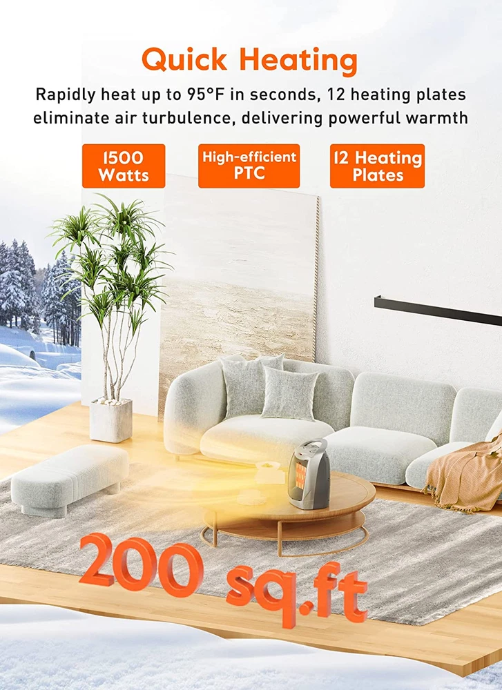 2 in 1 heater fan: This ceramic heater provides two heat levels, 1500W or 750W and one cool air fan, you can use it both for winter and summer. Thermostat control of the heater will turn the heater off when it reaches a preset temperature and turn the heater back on when the temperature dips below the thermostat setting Multi protection safety system: These heaters are made of flame retardant material avoiding any fire hazard. Automatic safety shutoff system will shut the heater off when the heater overheat. The tip over protection system will also shut the heater off when the heater was knocked over by accident and it will come back on automatically if it is up righted Compact and powerful: This Portable mini heater with build in carry handle helps to reinforce the potential of rather low electrical bills by using at the place where you need when you don't want to warm the full house with other centralized heaters Quiet and fast heating: The noise this ceramic heater makes is lower than 45 decibels, quiet enough for most people to use in a bedroom while sleeping. With PTC ceramic heating tech and high speed fan, this heater put out tons of heat to heat up 200 square feet in seconds Upgrade abs material: Upgrade abs material applied, which is more flame-retardant. The room heater with six feet lead cord and 2 prong connection has a long lasting life Product Description 1 1500W Fast Heating 2 2S Warm Up 3 Multiple Protection 4 Quiet Companion Is it a noisy heater? Everyone's sensitivity to sound is different. The noise level of our heater is 45 dB . A suitable living environment should not exceed 55 dB and should not fall below 15 dB:) Can I use the heater in the bathroom? You can use the heater to heat your bathroom, but this heater is an electric appliance, it need to be kept away from water. Does this heater is efficient and cost-effective? Yes, this heater is a 1500w heater, so it is very efficient, the heating effect is the same as other heaters, but compared with other heaters, this heater is more cost-effective. Any suggestions on how to use this heater? We recommend buyers to reduce the use of other electrical appliances while using electric heaters , reduce the use of other electrical appliances while using electric heaters and conduct grounding insulation tests before using the product. I need a heater for my pet. Does this heater release chemicals such as PTFE? No, our heaters don't release chemicals, it is safe for pets. GiveBest Space Heater Add to Cart Add to Cart Add to Cart Add to Cart Add to Cart Customer Reviews 4.3 out of 5 stars 73,675 4.4 out of 5 stars 13,589 4.2 out of 5 stars 126 4.2 out of 5 stars 1,267 4.2 out of 5 stars 1,267 3.7 out of 5 stars 32 Price $29.99 $ 29 . 99 $29.99 $ 29 . 99 $39.99 $ 39 . 99 $39.99 $ 39 . 99 $39.99 $ 39 . 99 — Height 9 Inch 9 Inch 10 Inch 10 Inch 10 Inch 12 Inch Power 750W-1500W 750W-1500W 750W-1500W 750W-1500W 750W-1500W 750W-1500W ETL Certificated ✔ ✔ ✔ ✔ ✔ ✔ Sound Level <45 dB <45 dB <45 dB <45 dB <45 dB <45 dB Voltage 120V, 60Hz 120V, 60Hz 120V, 60Hz 120V, 60Hz 120V, 60Hz 120V, 60Hz Adjustable Thermostat 0-95 °F 0-95 °F 41-95 °F (In 1°F Increments) 41-95 °F (In 1°F Increments) 41-95 °F (In 1°F Increments) 41-95 °F (In 1°F Increments) Modes Option High/Low/Fan High/Low/Fan High/Low/Fan/Eco High/Low/Fan/Eco High/Low/Fan/Eco High/Low/Fan/Eco
