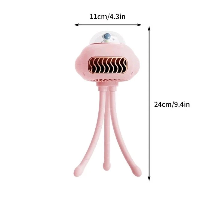 The Portable Fan with Jellyfish Design is a unique and stylish stroller fan that is perfect for on-the-go use. With its 3-speed modes and bendable tripod stroller, you can adjust the fan to your desired height and angle for optimal cooling. Powered by a USB source, this rechargeable fan is convenient and energy-efficient, making it a must-have for hot summer days. With its compact size and lightweight design, this fan is easy to carry around and can provide a refreshing breeze wherever you are.