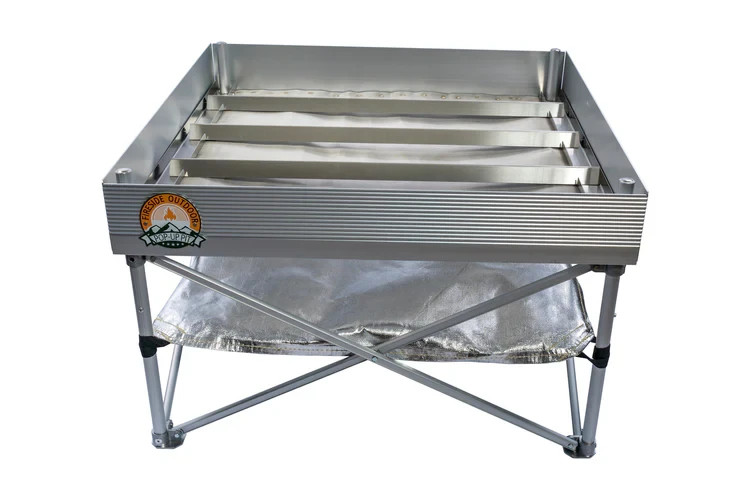 Looking for an easy, portable dutch oven table? The Pop-Up Pit bundled with its brand new Frontier grates brings together new age fire pit technology with old school dutch oven cooking. The Frontier grates allow you to cook with dutch ovens over your Pop-Up Pit. By suspending your dutch oven just above the fire mesh, the Frontier grates allow for coals underneath or around the dutch oven so you can keep following your favorite dutch oven recipes. While designed to hold dutch ovens, the Frontier grates can also be used with larger logs when burning a campfire to increase airflow and extended the lifespan of your fire mesh. Fireside Tip: Dump the hot coals from the lid of your DO into the Pop-Up Pit, toss on a few logs and enjoy your meal next to a roaring campfire. Kit Includes: 1x Frontier Grates 1x Pop-Up Fire Pit 1x Heat Shield Not Included: Dutch Oven, Fire Wood, Drinking Buddies