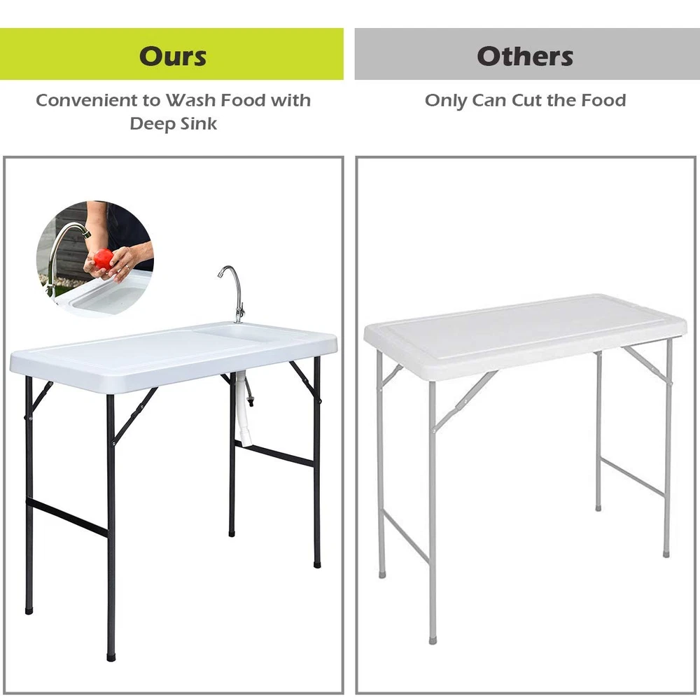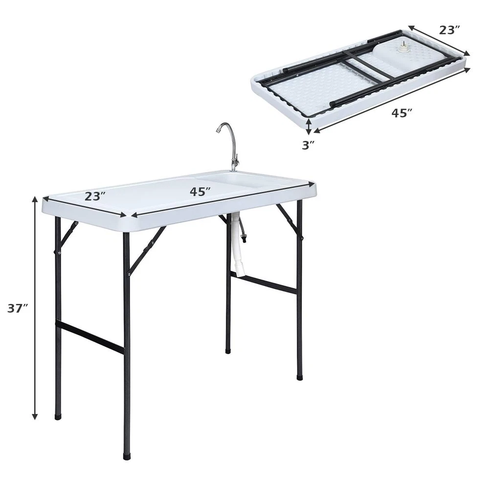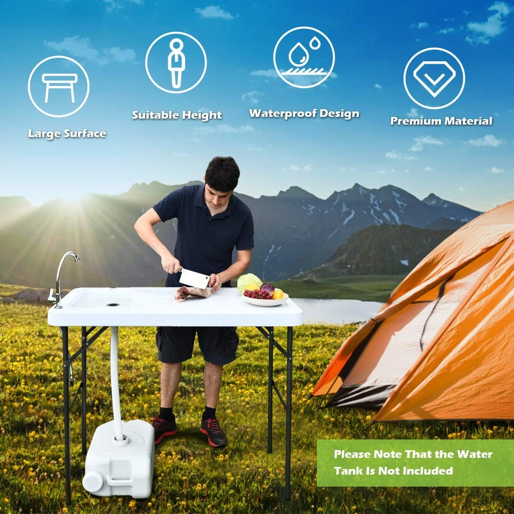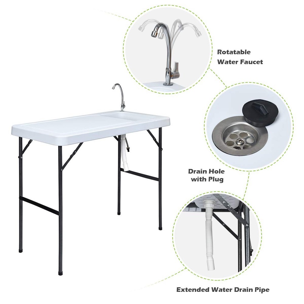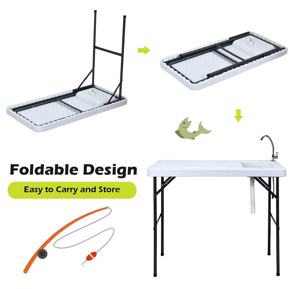 Portable Fish Cleaning Table with Sink, Faucet & Drain Hose - Foldable Design