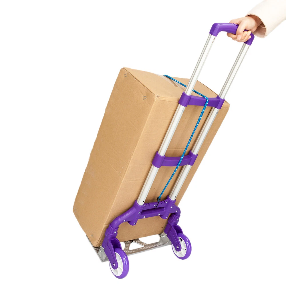 Product Description Introducing our Portable Foldable Telescopic Trolley Cart, the perfect companion for effortless transportation of groceries, luggage, or daily essentials. Designed with convenience and portability in mind, this versatile trolley cart features a lightweight yet sturdy frame that can be easily folded and unfolded, making it an ideal choice for home use, travel, or outdoor activities. The telescopic handle allows for adjustable height settings to suit different user preferences, while the smooth-rolling wheels ensure easy maneuverability on various surfaces. Whether you're heading to the supermarket, airport, or park, this compact and durable trolley cart is designed to simplify your life. Key Features 1. Lightweight & Durable Construction:•Constructed from high-quality aluminum alloy or reinforced plastic, this trolley cart combines durability with a lightweight design. It can support loads up to [maximum weight capacity] without compromising on strength, ensuring-lasting performance. 2. Easy Fold & Compact Storage:•The innovative folding mechanism allows the cart to be quickly collapsed into a compact size for convenient storage and transport. When not in use, it takes up minimal space, fitting easily under a bed, in a closet, or even in a car trunk. 3. Adjustable Telescopic Handle:•Equipped with an extendable handle that can be adjusted to multiple height settings, this feature enhances user comfort by allowing customization based on individual needs. The ergonomic grip provides a secure and comfortable hold during use. 4. Smooth-Rolling Swivel Wheels:•Featuring four all-terrain swivel wheels, the trolley cart effortlessly navigates through different terrains, including pavements, grass, and stairs. The wheels are equipped with durable bearings for smooth rolling and stable movement, reducing effort when pushing heavy loads. 5. Versatile Usage & Safety Design:•Ideal for a wide range of applications such as shopping, traveling, gardening, or moving items around the house. Additionally, safety features like anti-slip handles and brake systems (if applicable) provide peace of mind, ensuring safe and reliable operation in any environment. 1. Model: 106-3A 2. Material: Aluminum PP 3. Color: 4. Product size: 100*40*39CM 5. Package size: 29x29x28cm 6. Gross/net weight: 3.8/3.5kgs 7. Included accessories: each car with a rope 8. Packaging material: Each product bubble bag wrap export mail order carton packaging (requires five layers of double corrugated B C to strengthen the carton, good quality) Includes: Luggage cart *1 Rope *1