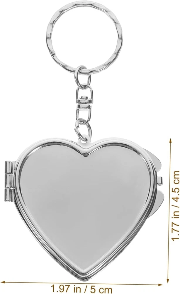 Portable Folding Mirror, 1 PCS Silver Metal Compact Keychain Travel Pocket Mirror, Mini Heart Shaped Makeup Mirror with Car Key Ring Product Details Brand: WinldMonmo Room Type: 1 Shape: Heart Product Dimensions: 1"L x 0.2"W Frame Material: Metal Brand: WinldMonmo Room Type: 1 Shape: Heart Product Dimensions: 1"L x 0.2"W Frame Material: Metal Mounting Type: 1 Special Feature: 1 Color: Silver Theme: heart Number of Items: 1 Material: Metal Assembly Required: No Frame Color: Silver Manufacturer: WinldMonmo UPC: 759357118288 Item Weight: 0.32 ounces Country of Origin: China Item model number: 1 Date First Available: June 16, 2024 Compact Design: This portable mirror features a sleek, heart-shaped design perfect for travel or everyday use. Durable Construction: Made of sturdy silver metal, this mirror is built to withstand daily wear and tear. Convenient Keychain: Equipped with a car key ring, you can easily attach this mirror to your keys or bag. Versatile Use: Ideal for quick touch-ups, this mirror is a must-have for applying makeup or checking your appearance on-the-go. Foldable: The compact, foldable design allows for easy storage in your purse, pocket, or car. This compact and portable folding mirror is the perfect accessory for on-the- go touch-ups. Crafted from durable silver metal, it features a heart-shaped design that adds a touch of charm to your daily routine. With its keychain attachment, you can easily clip it onto your bag or car keys, ensuring it's always within reach. Measuring approximately 2.5 inches (6.35 cm) in diameter when unfolded, this mirror provides a clear and detailed reflection for quick makeup touch-ups or hair checks. Its sleek and lightweight construction makes it an ideal travel companion, whether you're commuting to work, running errands, or embarking on a weekend getaway. Keep this handy mirror in your purse, car, or desk drawer for those moments when you need to freshen up your look on the go.