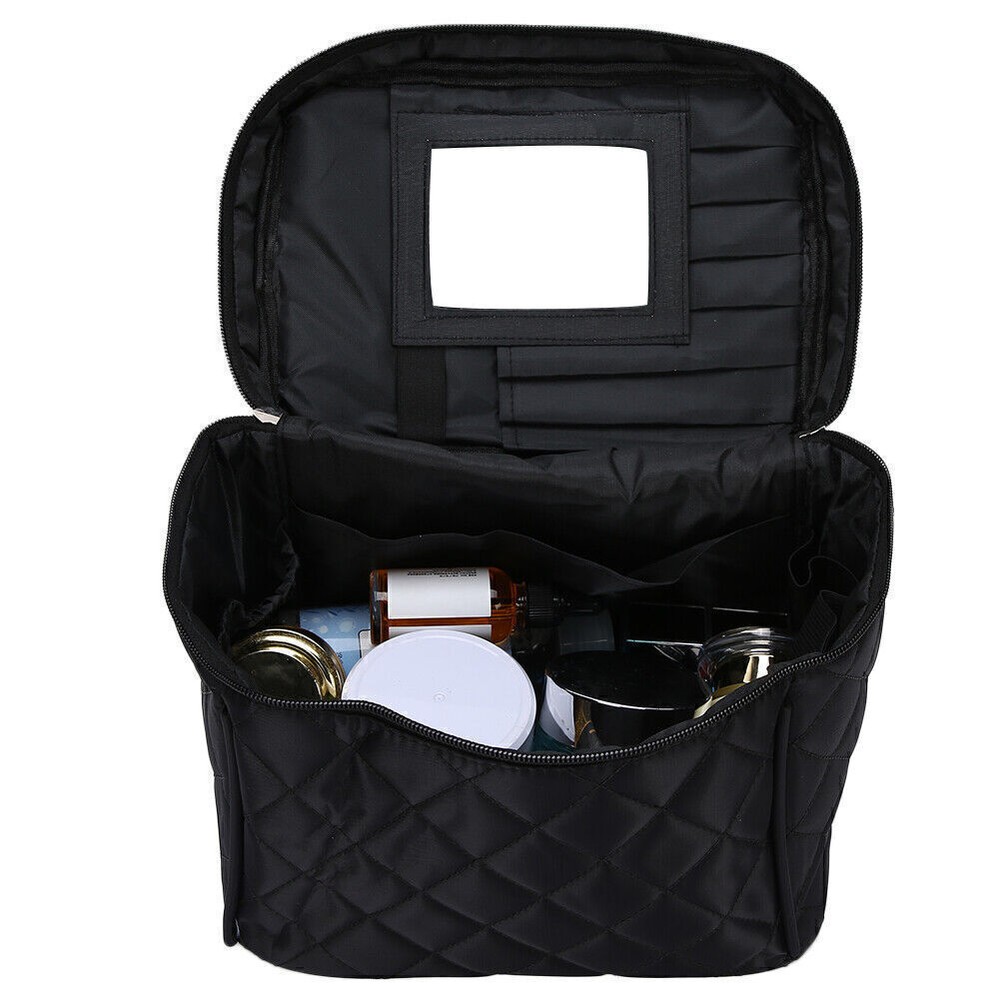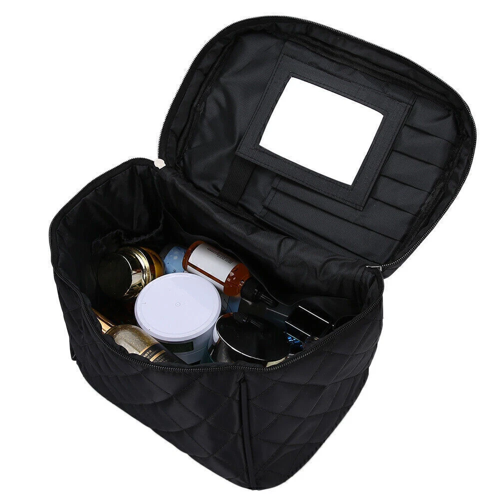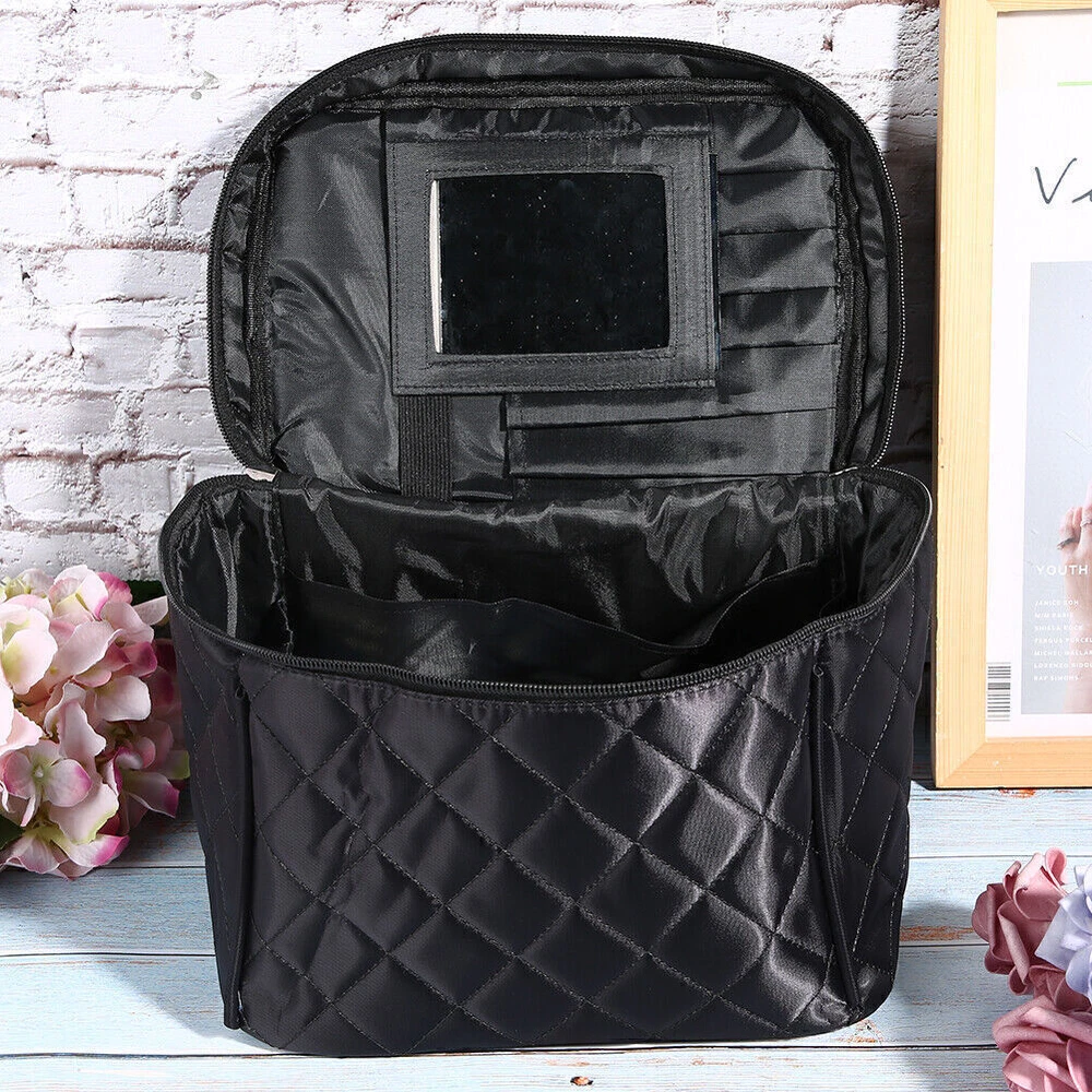 1. This portable cosmetic bag is a game-changer for travel! It holds all my makeup essentials neatly, and the clear glass mirror makes touch-ups a breeze. The sturdy nylon fabric and smart layout keep everything organized, while the folding design saves so much space. Perfect for keeping my brushes, lipsticks, and creams secure on the go—durable, spacious, and super convenient!