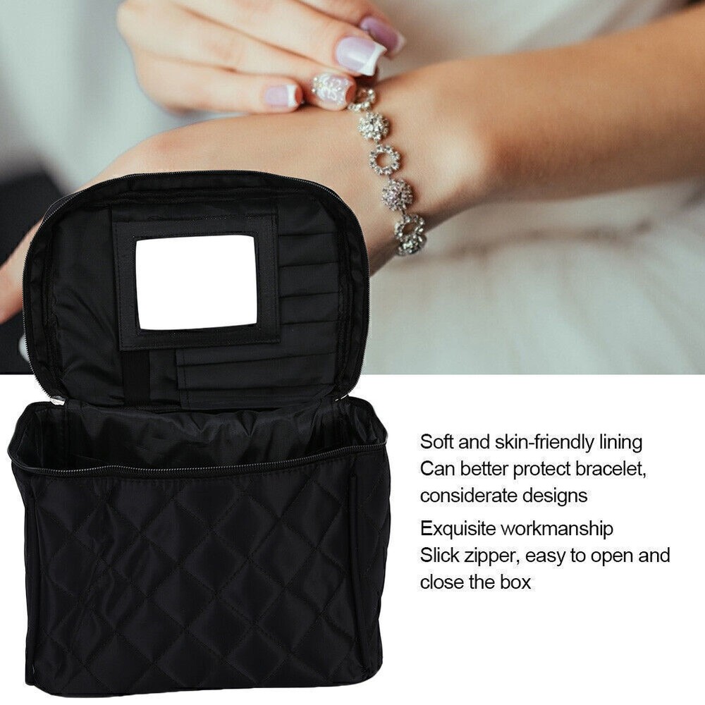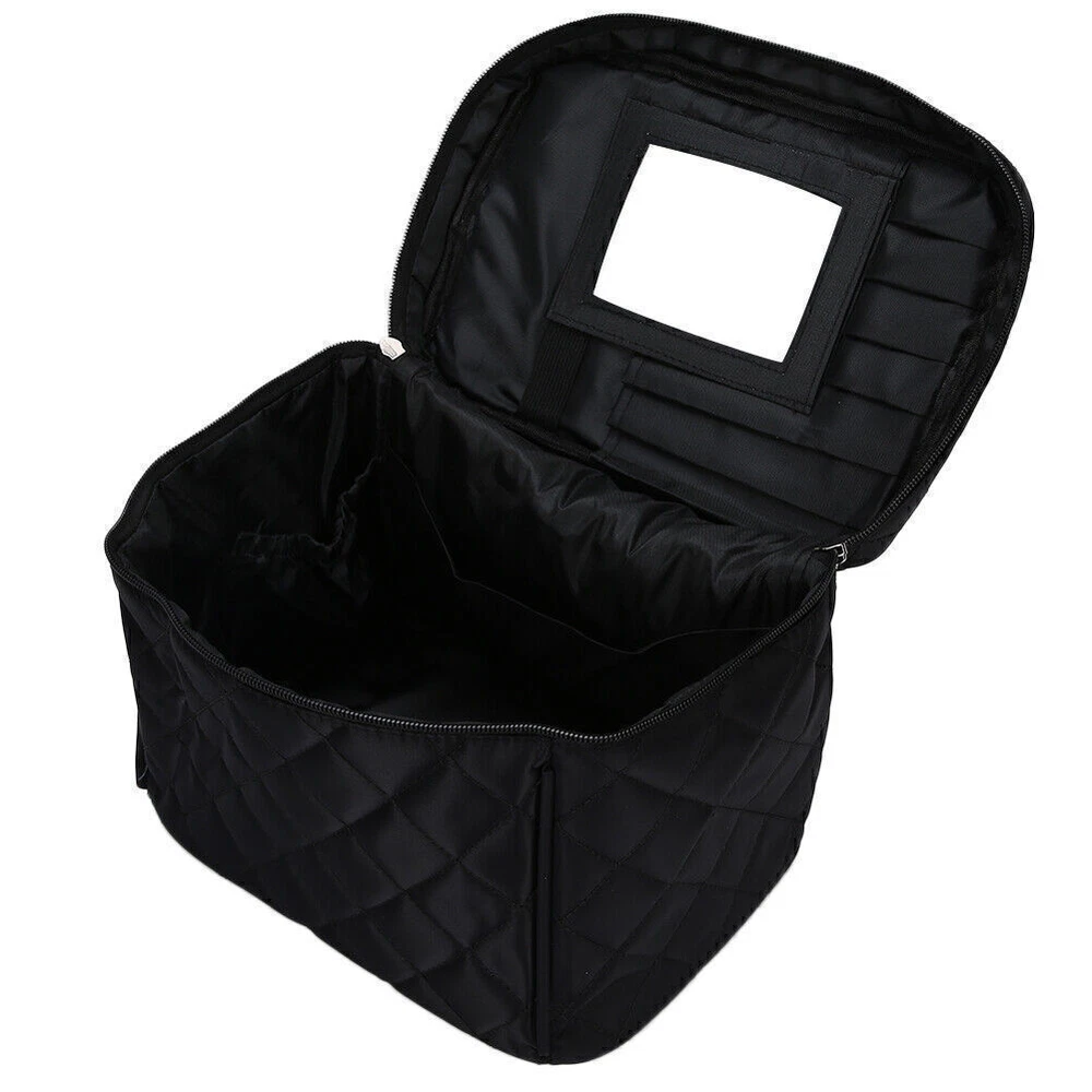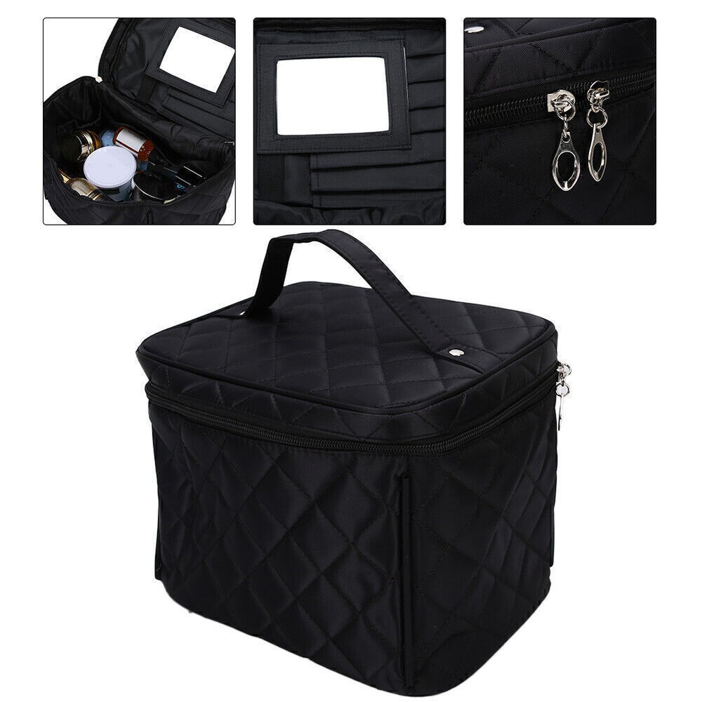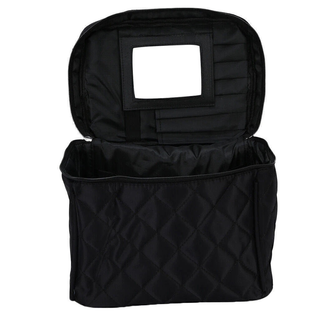1. This portable cosmetic bag is a game-changer for travel! It holds all my makeup essentials neatly, and the clear glass mirror makes touch-ups a breeze. The sturdy nylon fabric and smart layout keep everything organized, while the folding design saves so much space. Perfect for keeping my brushes, lipsticks, and creams secure on the go—durable, spacious, and super convenient!
