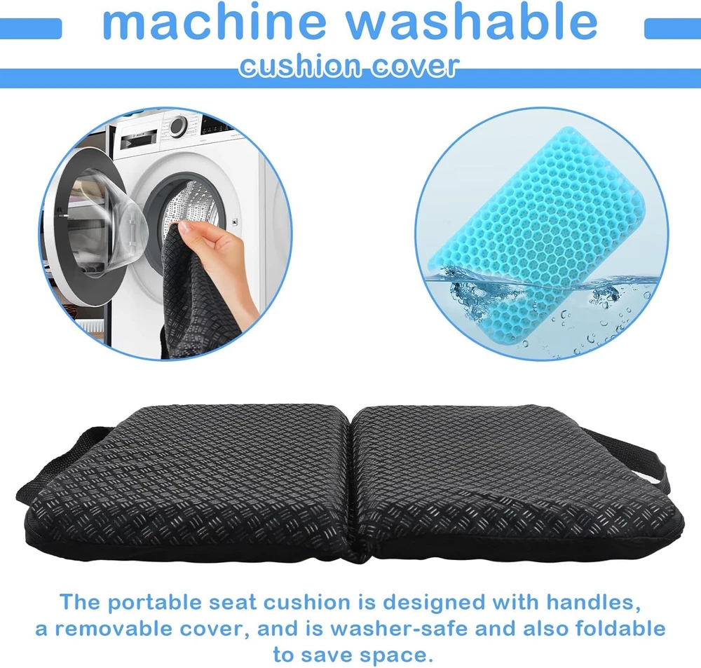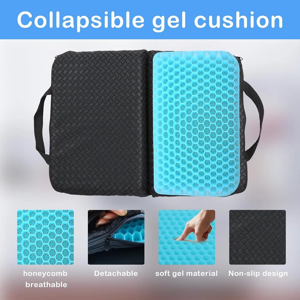 Portable Gel Seat Cushion Foldable Gel Travel Cushions for Long Sitting Press... Sedentary Comfort: This gel seat cushion made with gel, soft and durable, our pressure relief seat cushion disperse hip pressure, keep the hip curve. Relieve the pressure pain of the tailbone, provides additional comfort for any chair, seat, bench or stadium seat. Sitting for a long time will not feel stuffy, breathable, high resilience, comfortable, and not tired Good air Permeability: The portable seat cushion adopts a double-sided structure design, the texture is safe and does not deform, and has built-in free-flowing air channels to increase airflow, prevent stuffiness, maintain comfort, and bring ultimate coolness and comfort. Highly elastic gel always maintains its original shape without losing support, cracking and collapsing Removable anti-slip case: The seat cushion comes with a removable cloth cover with silicone anti-slip particles on the bottom to prevent it from moving from the seat. The cloth cover is hand and machine washable for easy cleaning. Size:14.5"x10.6" x1.18" Portable: The gel chair cushion adopts a foldable design to save space and is equipped with a handle for easy portability. It can also be carried in a handbag, backpack or luggage. The office chair seat cushion comes with a removable cover and is machine washable. You can take it to the stadium, office, plane, car, bus, train, other rooms, etc Perfect Gift: Gel cushion is ideal for any home, office or office desk chair, and for outdoor, garden or garden chair. Provide you with the comfort you need when you need it. Gel cushion can be given to your family and friends who are often sedentary.I believe they will like this gift Shipping We offer FREE shipping on all orders! We ship within Three business days of payment, usually sooner. We use a selection of shipping services such as UPS, FedEx, USPS etc. We only ship to the lower 48 states, no APO/FPO addresses or PO Boxes allowed. Local pickups and combined shipping options are not provided at this time. Return You can return a product for up to 30 days from the date you purchased it. Any product you return must be in the same condition you received it and in the original packaging. Please keep the receipt. Payment We accept payment by any of the following methods: PayPal Please pay as soon as possible after winning an auction, as that will allow us to post your item to you sooner! Feedback Customer satisfaction is very important to us. If you have any problem with your order, please contact us and we will do our best to make you satisfied. Contact Us If you have any queries, please contact us via ebay. We usually respond within 24 hours on weekdays. Please visit our eBay store to check out other items for sale! Thank you for shopping at our store.