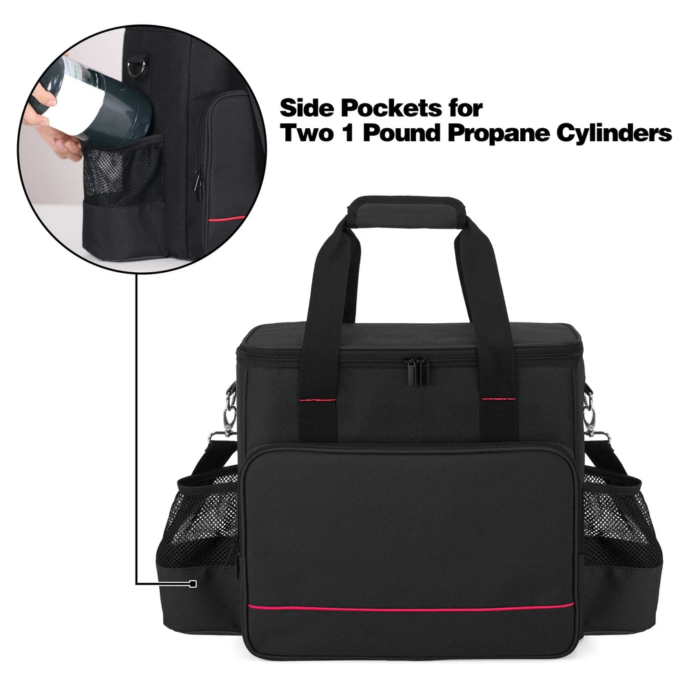 Humanized Design: The large double-open U-shaped zipper design makes it easy to take out and the heater, with Mr. Heater* MH9BX portable buddy heater; *our product is unrelated to the brand referred Sturdy Fabric: Using nylon material, the heater carry bag is wear-resistant, with strong load-bearing capacity for long distance carrying Multiple Pockets: 1 front zipper pocket and 1 back pocket can storage the hoses, regulators and accessories, help to keep your items neatly organized Practical Pockets: 2 side mesh pockets provide extra space, each can hold 1-pound propane gas cylinder, allowing you to quickly access and use Easy To Carry: The long shoulder strap can transport the heater to any place; side padded handles offer extra option to transport, for easy carrying heater from home to outdoor