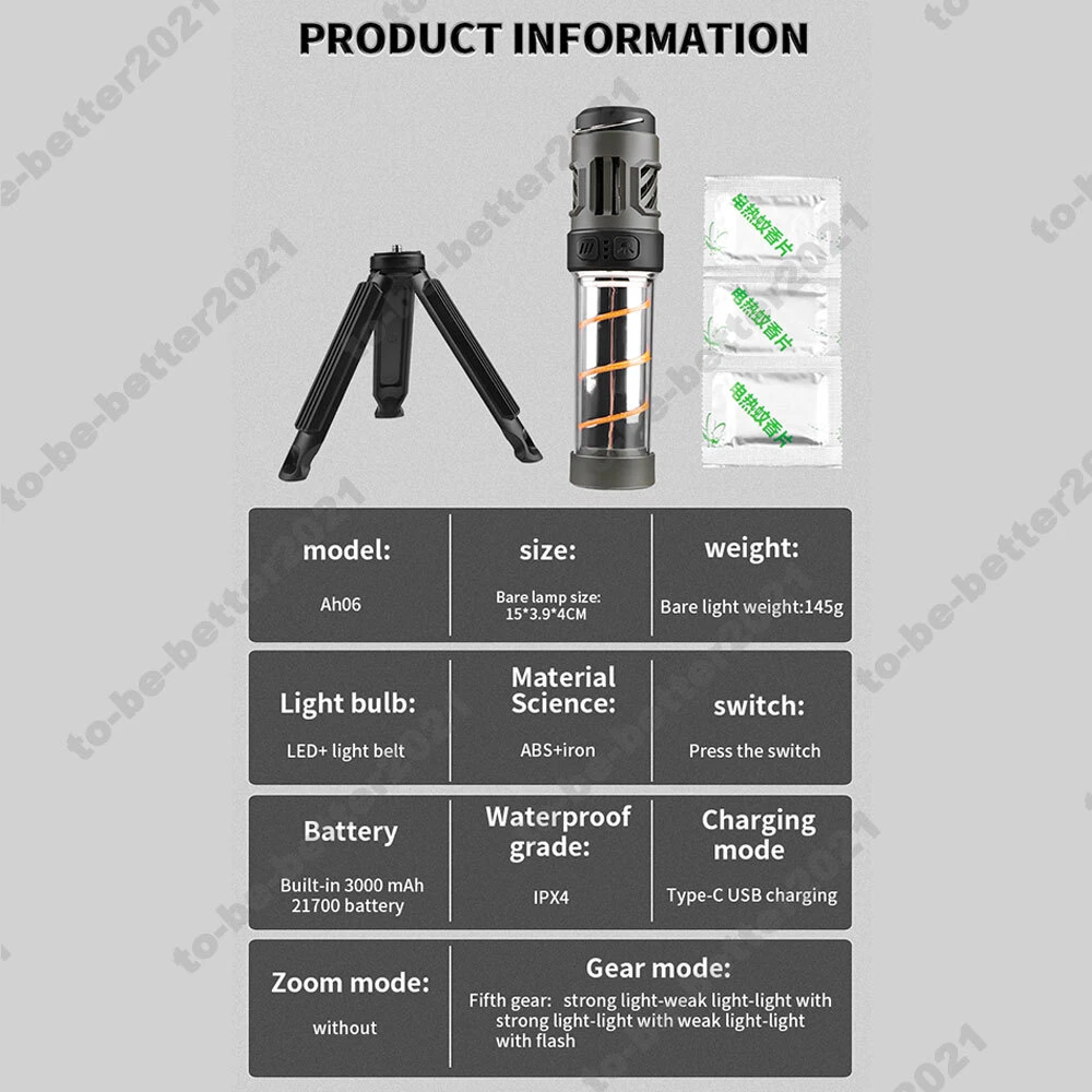 You may also like LED Light Rechargeable Headband Unisex Sports Running Workout Gym Sweat Band 15.79 USD Free shipping 2IN1 7 D Anti-aging Skin Tightening Cartridge Facial Lift Firming Beauty Machine 1046.79 USD Free shipping 2in1 Professional 7-D Face Lift Machine Skin Tighten Anti Wrinkle+7 Cartridges 1182.79 USD Free shipping Adjustable Sports Cap UV Protection Hat W/Led Light Empty Top Cap Unisex Topless 20.59 USD Free shipping Adjustable LED Headlamp Baseball Cap 3 Level Brightness USB Rechargable, Camping 20.39 USD Free shipping RF 4/36/64 Dot Device Face Lif-ting Anti Wrinkle Tightening Frac-tional Machine 437.09 USD Free shipping 100W AC 110V LED Floodlight Flood Light Security Spotlight Outdoor Garden Lamp 7.99 USD Free shipping Skin Rejuvenation No Pain Needle Free Meso Device RF Mesotherapy Beauty Machine 450.89 USD Free shipping 9/12/24/36/42Pin 3D/5D/Nano Needles Replacement Cartridges Tips for Meso Gun Pen 17.59 USD Free shipping 2IN1 7D Face Lifting Anti-wrinkle Skin Rejuvenation Beauty Machine+7 Cartridge 1199.99 USD Free shipping 20L Water Bags Outdoor Camping Hiking Solar Shower Bag Heating Camping Shower 23.49 USD Free shipping Rechargeable LED Flashlight Outdoor Waterproof Camping Hanging Working Lights 20.09 USD Free shipping Mesogun Meso Therapy Rejuvenation Anti-Wrinkles No needle Mesotherapy Gun Kit 17.59 USD Free shipping Mesotherapy Gun Anti-aging Facial Skin Lifting Mesogun Machine Therapy Rejuvenat 16.89 USD Free shipping 5K 50MP Ultra HD Action Camera,30FPS WiFi Sports 1.3" Dual Touch Screen 170° 82.19 USD Free shipping 2 IN 1 Ozone Plasma Pen Fibroblast Pen Skin Moles Dark Spot Remover Anti-Agings 120.79 USD Free shipping SAFE & SECURE SHOPPING 100% SATISFACTION GUARANTEED FAST SHIPPING Store Categories Store Categories Other AU Oversea Warehouse DE Oversea Warehouse UK Oversea Warehouse USA Oversea Warehouse China Warehouse FR Oversea Warehouse You may also like Portable LED Rechargeable Mosquito Killer Camping Lamp USB Charging Flashlight Product Description Descriptions: Power: 5W Charging voltage: 5V Charging time: 5-6h Lighting: 6-30 hours Battery capacity: 3000mAh Light effect range: 10-50 meters Material: ABS plastic/PC/magnet Color temperature: white/warm light Charging method: Type-C direct charging Brightness lumens: front lights 200-300 lumens/ambient lights 100 lumens Features: Large Capacity 3000mah built-in Battery With a built-in 3000mAh rechargeable battery and indicator lights displaying remaining power, this light can run for 6-30 hours in camping illumination mode. 5-Level Brightness Adjustment The lighting button toggles between 5 lighting modes, serving as a task light, ambient illumination, or flashlight. It can run for up to 30 hours at the lowest brightness setting. Magnetic Portable Compact Design Equipped with a magnetic bottom for attachment to any metal surface and includes a stand for versatile placement. The portable handle allows easy hanging in desired locations such as tents, poles, or even tree branches. Package Include: Camping Light * 1 Type-C Charging Cable * 1 Payment Method Shipping and Handing Time Returns Feedback Contact us Payment Method PayPal Only. We ship to your Ebay shipping address only. Item will be shipped out within 24 hours once we have received your payment via PayPal with confirmed shipping address only Warm Tips: Import duties, value added taxes and any other charges are not included, as an eligible importer, you are responsible for any reasonable tax or importation fees. Shipping and Handing Time We ship to your Paypal registered address only! Items will be shipped within 24 hours on payment received. All items are shipped from China or Hongkong using Post Airmail, Please allow 25-30 days for your order to arrive due to International shipping. If you do not receive your item after 35 days. please contact us immediately for further assistance. We will be responsible for any damages or losses incurred in the shipping process. Import duties, value added taxes and any other charges are NOT included in the item price or shipping costs. As an eligible importer, you are responsible for any reasonable tax or any other importation fees. Returns A customer-centered shopping experience has always been our goal and we want you to be completely satisfied with every item that you purchase online from us. If you are not satisfied with an item that you have purchased from us, you may return the item within 30 days of the order date for a full refund of the purchase price, minus the shipping & handling fees. Any "Free Shipping" item returned will have the outbound freight charge deducted from the total return. Buyers will pay for return shipping charges. Shipping, handling and insurance fees are NOT refundable. Please read our terms and conditions above carefully. Bidder or Buyer must agree all terms and conditions before placing a bid or purchasing. Feedback 1. If you are satisfied with our products and service, please leave us Positive Feedback and 5 Star Ratings , and we will do the same for you. 2. Please feel free to contact us if you have any question . We'll do reply you as soon as possible and try our best to solve your problems out. Believe us,every customer is taken as our important treasure. And please contact us by the following instructions, your cooperation would be much appreciated, and the warranty period can be extended automatically, please note. Q1: What can I do if I haven't received my item in time? A1: Please find the order record, select "Contact seller" in drop-down menu at right hand side, which lead to a new page and "Select a topic" as follows, then we will receive your email and respond within 24 hours. Q2: How can we process if I'm not satisfied with your product? A2: Please click " Return this item" bottom, find the following 3 options, and select one among them to continue should be okay. PS: The return reasons are not important, as no matter which one you select, we need to further conf