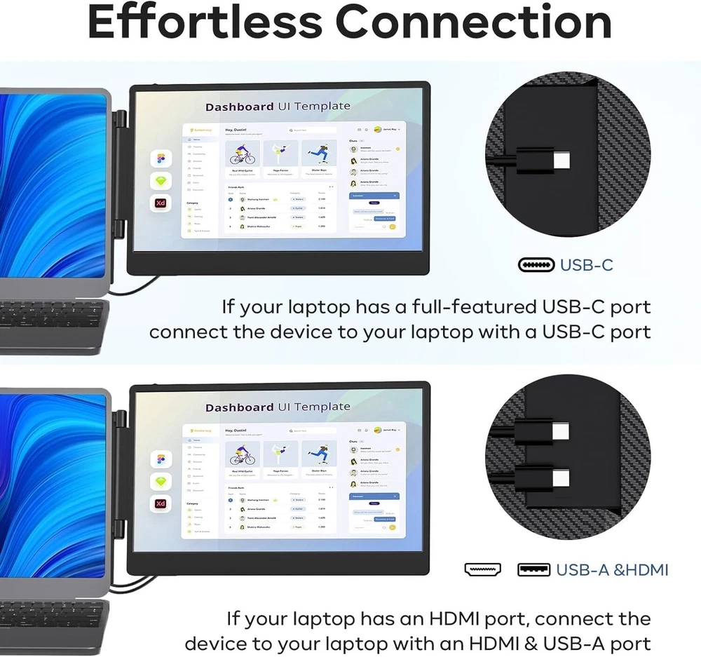 -Brand New - Never Used - Questions: Feel free to ask any Questions - BOX: Never Opened - DESCRIPTION: Dual Screens Experience: Our 14" laptop screens extender is equipped with Full HD 1080P IPS Screen resolution, 300 nits brightness, and 1000:1 contrast rate, which allows you to adjust the brightness, contrast, and backlight when you need it as your favor, enjoy a vivid and immersive visual experience. There is a built-in speaker, not only for multiple documents deals, and analysis, but it also has great experience for video watching, gaming, and meetings. It is also a second monitor for working at home. Increase 200% Work Productivity: ZUMWALT 14-inch portable monitor for laptop build a high-efficiency workstation for you. Designed with 4 modes available (Mirror / extension / landscape / portrait mode), it allows you to deal with multi-tasks simultaneously, it enables you to show the necessary data when starting a remote meeting. It will allow you to share your screens with others when you present. You can use the different modes, making your remote work a breeze. The laptop screen extender also improve the quality of life. Portable & Lightweight: The ZUMWALT portable laptop external monitor is designed 0-180° rotated screens, which can be easily folded and put in a leather bag, the weight is designed to be only 1.7 lbs lightweight for daily carry. Put on a backpack without any worries, easier to carry on the go. They are truly portable computer monitors for travelers, students, gamers,engineers, and everyone. The laptop monitor extender comes with an adjustable back stand, you can clip the screens extender on your laptop or put it on the desk for use. Easy and portable for daily use. Widely Compatibility: The screens extender portable laptop is compatible with wide devices and systems, including compatibility with Wins, Mac, Chrome, and Android phones with USB-C ports, Linux, PS4 and so on. Just connect the device with a USB-C/HDMI cable to extender the screens. Warranty & Customer Service: ZUMWALT offers a 12-month warranty for all laptop portable extended monitor. If any accessories are missing, need to inquire about connection, or have any problem, please contact us at any time, and we will respond to you within 12 hours. Double USB-C Port -For Plug & Play, the ZUMWALT Portable Laptop Screen Monitor Extender provides 2 Full Feature USB-C ports. Only One USB C Cable is required to connect to the power supply & display signal transmission. NOTE: Your device should support thunderbolt 3.0 or USB 3.1 USB C DP ALT-MODE.which supports multiple connect ways to your laptop, PC, Phones, Macbooks, PS5 / PS4, Xbox, and Switch. What You Will Get: 1 x ZUMWALT External Screens For Laptop Portable 14", 1 x USB-C to USB-C Cable, 1 x HDMI to USB-C cable, 1 x USB A to USB C cable, 1 x Storage Bag, 1 x User Guide - OFFERS: Reasonable offers are considered, LOWBALLERS, Best price and Lowest askers will be ignored - all sales final/no refunds/ no exchanges/ no returns - Disclaimer: I do not own the brand's trademarks, logos, pictures, or products posted. I do not intend to infringe on copyright. I find such content available on the internet. Contents are considered fair use. -ZUMWALT Portable Laptop Screen Monitor Extender - 14" 1080P FHD Portable Monitor with Adjustable Stand for 13''-16.1'' Laptop, Plug and Play, Compatible with Wins/MacOS/Chrome/Android/PS5/Switch