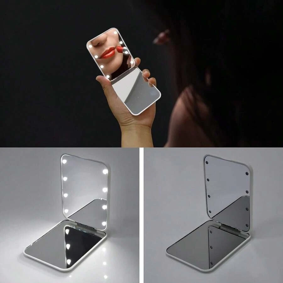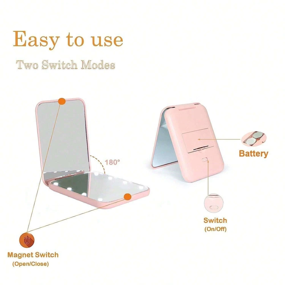Portable LED Lighted Magnifying Travel Makeup Mirror 1X/3X Magnification - Compact Dual-Sided Pink Mirror Transform your makeup routine with the Portable LED Lighted Travel Makeup Mirror, the ultimate accessory for any beauty enthusiast on the go! This compact, dual-sided mirror is designed for precision and convenience, offering 1X and 3X magnification to cater to all your beauty needs, whether at home or on the move. Key Features: Dual Magnification: Features a 1X reflection on one side and a 3X magnified view on the other, perfect for detailed makeup application and skincare routines. LED Lighting: Equipped with energy-efficient LED lights to provide bright, clear illumination in any setting. Compact and Portable: Designed with travel in mind, this mirror folds easily and can fit into any purse, backpack, or luggage. Elegant Design: Sleek, modern design in a beautiful pink color, made from durable ABS material. Battery Operated: Uses 2pcs CR2032 button cell batteries (included), making it ready to use right out of the box. Specifications: Color: Pink Material: ABS Size: 8.5cm (Length) x 6.5cm (Width) x 1.3cm (Height) Batteries: 2pcs CR2032 button cells (included) Perfect for daily use, this mirror can be placed on a dresser, vanity, or countertop. Its foldable design makes it an excellent choice for travel, ensuring you look your best wherever you are! Ideal for gifts, it's a thoughtful present for women who are always on the move. Whether it's for a birthday, an anniversary, or just because, the Portable LED Lighted Travel Makeup Mirror is a gift that combines style, functionality, and practicality. Buy Now and Elevate Your Beauty Routine!