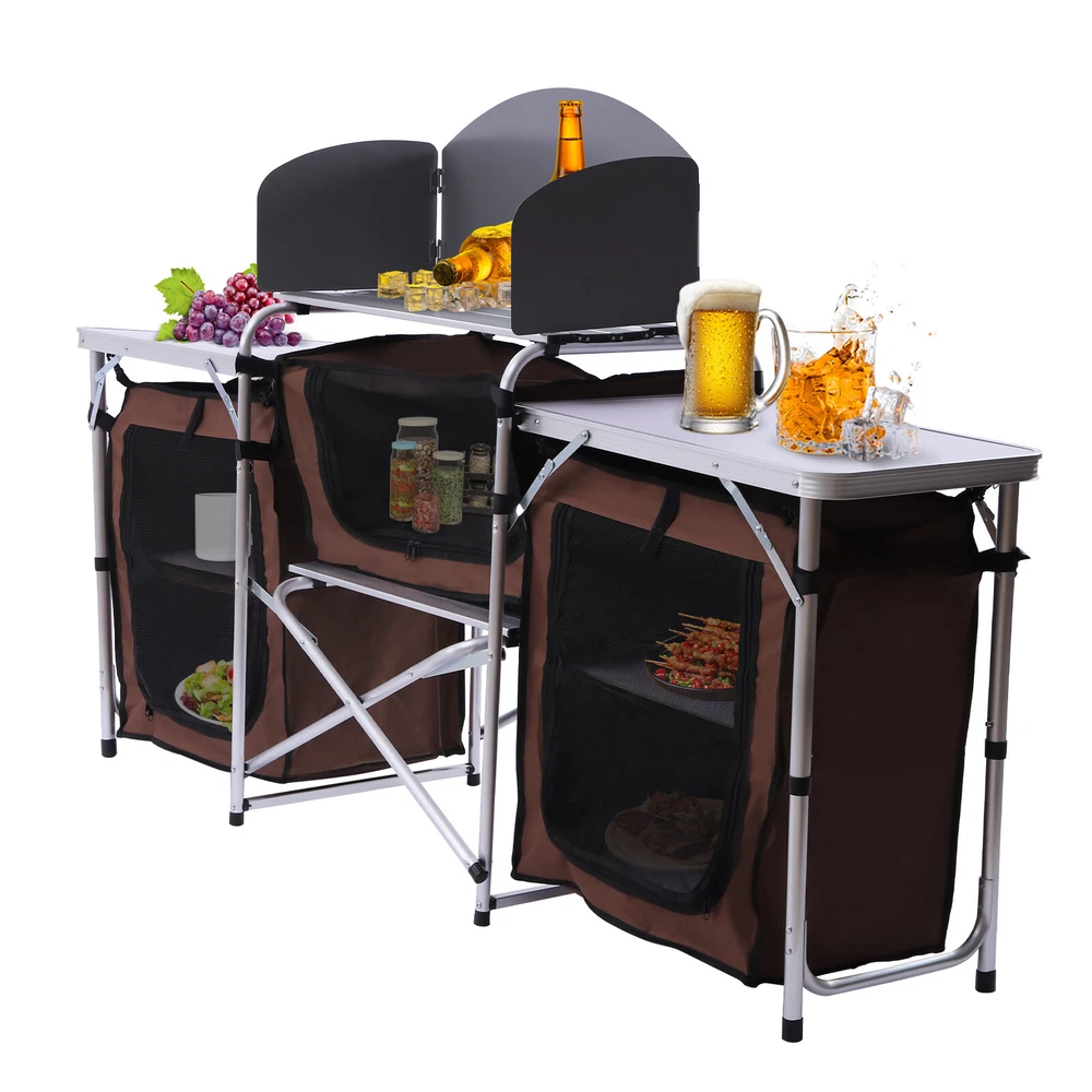 Package Included 1* Table Frame 2* Metal Frames 1* Windshield 3* Brown Fabric Covers Notes Please Wear Gloves for Installation to Prevent Unnecessary Scratches. If the Equipment Is Very Dirty, Use a Mild Detergent and a Damp Cloth to Clean It. Avoid Using Sprays and Other Harsh Cleaners As They May Stain, Dirty or Dull the Surface. Make Sure the Unit Is Completely Dry and Store It in a Carrying Bag in a Dry, Ventilated Area. Please Allow the Slight Color Difference Caused by the Shooting Light and 1-3 Cm Error Due to Manual Measurement, and Make Sure You Do Not Mind Before Ordering. Xh14645 Portable Mdf Tables Folding Camping Kitchen Station For Barbecue Foldable Camping Kitchen Station Kit Folding Grill Table Tabletop & 2 Side Table Description Camping Is a Great Way to Relax and Unwind. but Camping May Require some Good Equipment, Such As a Folding Camping Kitchen Station for Barbecue. Our Camping Kitchen Station with 3 Tables Is the Ideal Choice for You. It Is Made of Strong Aluminum Alloy Frames and 600d Oxford Fabric, Very Strong and Solid with a Good Load-bearing Capacity. Folding Design Is a Good Choice for Carrying out. so Hurry up and Buy It to Camp with Your Family! Key Features High-quality Materials: the Tables of This Camping Kitchen Station Are Mainly Made of Aluminum-alloy, 600d Oxford Fabric and Mdf, Which Are Very Sturdy and Solid. Each Table Can Roughly Withstand 50kg/110lbs of Weight. You Can Use It with Confidence. Portable: This Folding Camping Kitchen Station Is Designed for Camping and Outdoor Carrying. It Is Light in Weight and Small in Size After Folding Easily, Which Is Very Convenient for Outdoor Use. Good Stability: the Cross and Square Aluminum Alloy Frames Are Solid Enough to Make the Table Stand Firmly on the Ground Without Wobbling. Thoughtful Windshield: the Center Table Is Equipped with a 3-Sided Windshield to Prevent the Wind from Blowing out the Fire While You Cook. Enough Space: This Kitchen Station Consists of Three Tables with Many Compartments, so It Not Only Has Enough Storage Space for Camping Supplies but Also Is Available for Several People to Make or Enjoy Food at the Same Time. It Is a Good Choice for Multi-person Camping! Suitable Height: the Highest Operating Table of This Camping Kitchen Station Is 31.5inch, Which Is Suitable for Most Adults to Comfortably Stand for Operation Without Bending down. Easy to Assemble: the Structure of This Portable Kitchen Station Is Simple and Can Be Easily Assembled by One Person. Relaxing Outdoor Time: It Is Very Relaxing and Enjoyable to Take Our Camping Chair with Your Family or Friends out for Camping or Picnics. Stylish Appearance: the Simple Line Design Looks Neat and Stylish, so It Is a Good Choice for Camping. Guaranteed Customer Service: Your Satisfaction Is Our Top Priority, We Will Make Things Right for You. If You Are Unsatisfied with Our Products, You Can Contact Us and We Will Ensure You Have a Pleasant Shopping Experience in Our Store. Details Cloth Covers: with the Cloth Covers, Things in the Compartments Will Not Fall off Easily. It Is Also Equipped with Straps That Can Be Easily and Firmly Fixed to the Table Legs. Moreover, the Grid Zipper Door of the Cloth Cover Is Easy to Open and Close As Well As to See and Find the Contents Inside. Anti-slip Pads: All the Feet Are Equipped with Anti-slip Pads to Prevent the Table from Moving Around. Hooks : Oxford Bags Are Connected to the Table with High-quality Metal Hooks to Ensure Their Stability and Easier Removal. Brushed Surface: After Being Brushed, the Tabletops Are Very Smooth. Moreover, the Brushed Tabletops Are Both Waterproof and Easy to Clean. Wrapped Edges: the Edges of the Mdf Tables Are Wrapped to Prevent Scratches and Bruises, Making Them Safer to Use. Application This Camping Kitchen Station Is Designed for Outdoor Use, You Can Use It in Your Garden, on the Beach, on Camping or Hiking Trips, and Fishing. You Can Even Use It at Home! Specification Color: Brown Model: Xh14645 Material: Aluminum Alloy, Oxford Fabric, Mdf Surface Treatment: Brushing Aluminum Tube Diameter: Ø25 Ø23 Ø19mm/ Ø1 Ø0.9 Ø0.7inch Aluminum Frame: 32mm/1.3inch Density Board Thickness: 4.5mm/0.2inch Product Overall Size: 174*46*110cm/69.3*18.4*43.3inch Product Folded Size: 79*49*10cm/31*19*3.9" Middle Table Size: 66*34*80cm/26*13.4*31.5inch Side Table Size: 60*40*70cm/23.6*15.7*27.6inch Cross Support Frame Height: 40cm/15.7inch Package Size: 80*57*12cm/31.5*22.4*4.7inch Gross Weight: 14kg/30.9lbs Net Weight:13.2kg/29.1lbs Load Capacity per Table: 50kg/110lbs Package Included 1* Table Frame 2* Metal Frames 1* Windshield 3* Brown Fabric Covers Notes Please Wear Gloves for Installation to Prevent Unnecessary Scratches. If the Equipment Is Very Dirty, Use a Mild Detergent and a Damp Cloth to Clean It. Avoid Using Sprays and Other Harsh Cleaners As They May Stain, Dirty or Dull the Surface. Make Sure the Unit Is Completely Dry and Store It in a Carrying Bag in a Dry, Ventilated Area. Please Allow the Slight Color Difference Caused by the Shooting Light and 1-3 Cm Error Due to Manual Measurement, and Make Sure You Do Not Mind Before Ordering. Payment Delivery details Terms of sales About us Contact us Payment We accept ebay payment 。 Fees such as import duties, taxes are not included in the item price or shipping costs. These charges are the buyer's responsibility. Delivery details Shipping: 2-9 working days to: USA Terms of sales We maintain high standards of excellence and strive for hundred percent customer satisfaction. Feedback is very important to us. We hope that you contact us immediately before you give neutral or negative feedback, so that we can address your concerns. It is impossible to address issues if we do not know about them! About us Your satis faction is our ultimate goal. We work hard to earn your trust and future business. Our certified technicians have tested each item before shipping. The unit comes with 1 year limited warranty on all manufa