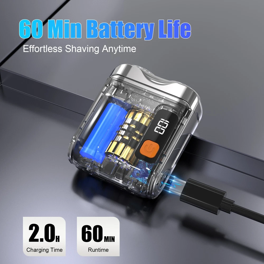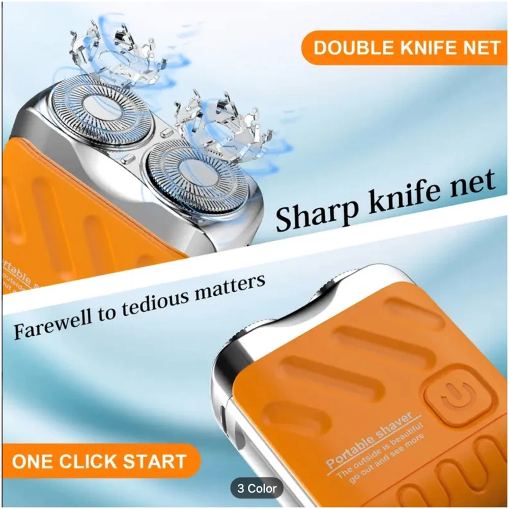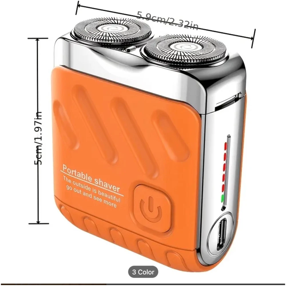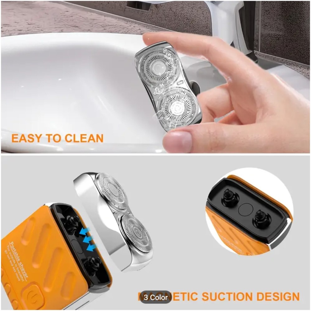 Features Compact Design : Lightweight and mini-sized, this shaver easily fits in your bag or pocket, making it ideal for travel or quick touch-ups. Double Head Rotation : Featuring dual rotating heads, this shaver provides a smooth and efficient shaving experience, adapting to the contours of your face for a close and comfortable shave. Magnetic Technology: The innovative magnetic head design ensures effective hair removal and easy maintenance, enhancing the longevity of your shaver. USB Charging: Enjoy the convenience of USB charging, allowing you to power up your shaver with your laptop, power bank, or any USB outlet. A full charge ensures multiple shaves, perfect for busy lifestyles. User-Friendly Operation: Simple one-button operation makes it easy to use, while the ergonomic design guarantees a comfortable grip during shaving. Easy Cleaning: The shaver is designed for hassle-free maintenance, allowing you to rinse the heads under water for easy cleaning. On Mar 15, 2025 at 00:10:01 PDT, seller added the following information: