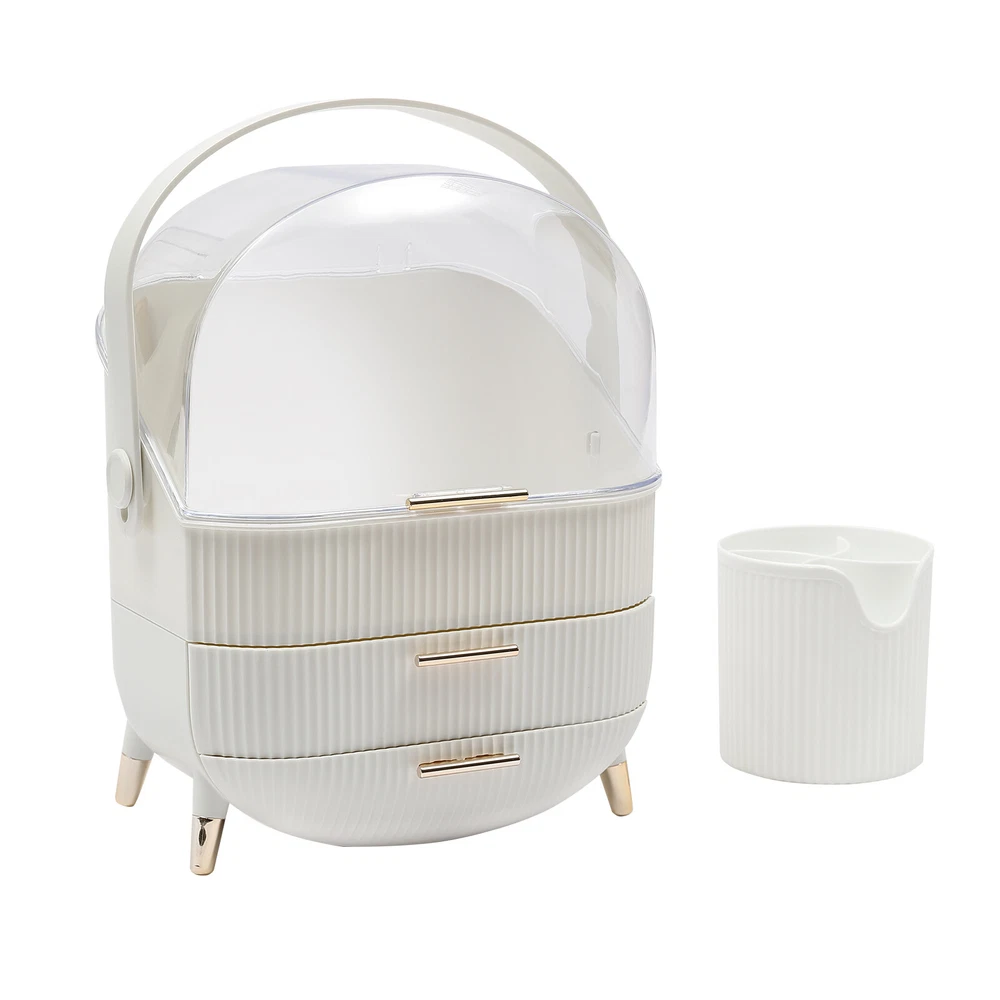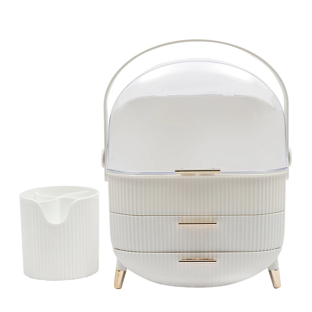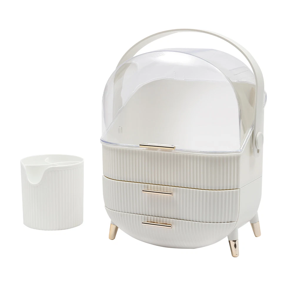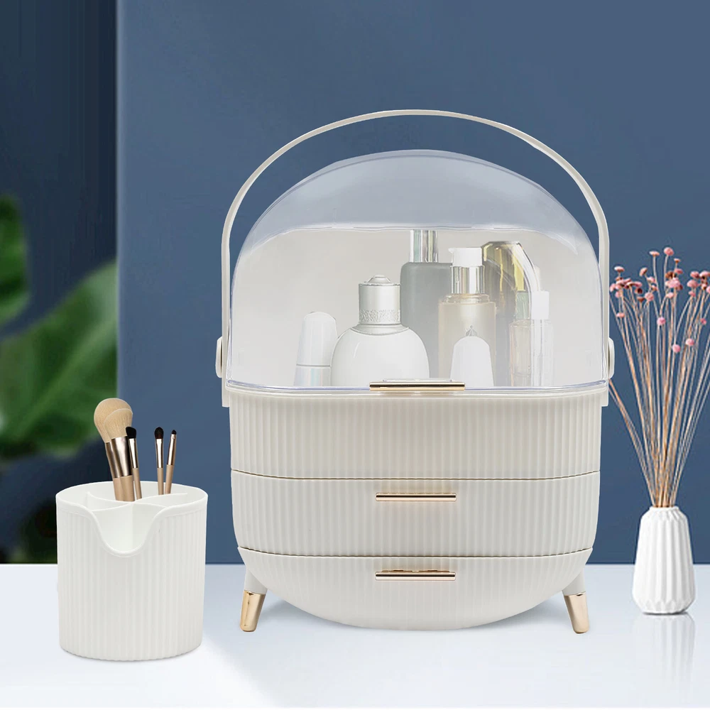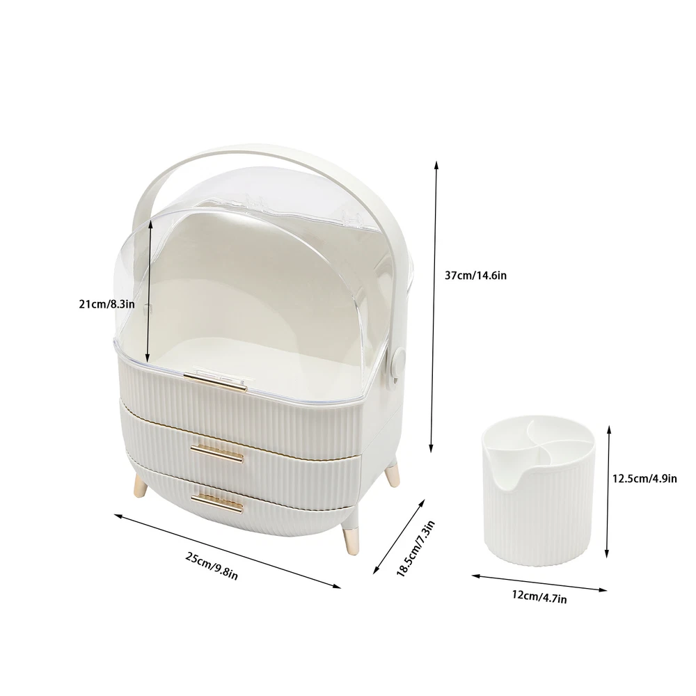 Portable Make Up Organiser Cosmetic Box Makeup Storage Box w/Lid Dustproof 18L Description Portable Make Up Organiser Made of high-quality HIPS and PS materials, this high-value portable make up organiser has a large capacity and can effectively hold most of your cosmetics. It also comes with an extra brush barrel so that your makeup brushes have their place too. While the carry handle design makes it very easy to carry as well, bringing unparalleled convenience to your life! Key Features Super Capacity: A large capacity of about 4 gallons can easily store most of your cosmetics, while it comes with a brush barrel to make it more convenient for you to store your brushes or makeup brushes. By the way, the first layer is 8.3in high, you can easily place high bottles. Transparent and Visible: This portable make up organiser has a visible design that makes it easy to see all the cosmetics in the box. Aseptic and Hygiene: The flip-top lid can keep your cosmetics free from dust, is not afraid of getting wet with water, ensures a dry and sterile storage environment, and is also easy to clean. Classified Storage: The three-layer design allows for sorted storage to keep all your daily essentials neat, organized, and within easy reach, making it easy for you to make reasonable use of space and also convenient for you to pick up later. Stylish and Exquisite: Classic and versatile white color and rounded shape with gold-plated legs is so stylish that you can't help but fall in love with it. Quality Assurance: This portable make up organiser uses high-quality HIPS and PS material, is solid and durable, and will not corrode and rust, the advantages of high strength make it can be used for a longer period of time. Easy to Carry: The 270° rotatable handle makes it easy to carry and accompany you on your journey, keeping you beautiful at all times. Ready to Use: It has a one-piece design without the need for installation. You can use it directly when you receive it, which is very convenient. Ideal Gift: This make up organizer is ideal for Christmas, Thanksgiving, Valentine's Day, Mother's Day, birthday, and other holidays for your mother, lover, family, and friends. Details Hand-free Design: The flip-top lid can keep open on its own, and the hand-free design makes it easier for you to pick up cosmetics. Height-boosting Feet: It has a height-boosting design with 4 height-boosting feet to make it more stable to place. Application This portable make up organiser is suitable store all kinds of cosmetics, nail polish, nail scissors, paper towels, and other daily appliances. Specification Material: HIPS and PS Color: White Shape: Rectangular Capacity: about 18L /4 gallons Brush Barrel Diameter: 12cm/4.7in Brush Barrel Height: 12.5cm/4.9in The First Layer Height: 21cm/8.3in Organiser Size: 25*18.5*37cm/9.8*7.3*14.6in Package Size: 41*23.5*31.5cm/16.1*9.25*12.4in Gross Weight: 1.89kg/4.2 lbs Package Included 1* Portable Make Up Organiser 1* Brush Barrel Notes: Please allow the slight color difference caused by the shooting light and 1-3cm error due to manual measurement and make sure you do not mind before ordering. Payment Delivery details Terms of sales About us Contact us Payment We accept ebay payment 。 Fees such as import duties, taxes are not included in the item price or shipping costs. These charges are the buyer's responsibility. Delivery details Shipping: 2-9 working days to: USA Terms of sales We maintain high standards of excellence and strive for hundred percent customer satisfaction. Feedback is very important to us. We hope that you contact us immediately before you give neutral or negative feedback, so that we can address your concerns. It is impossible to address issues if we do not know about them! About us Your satis faction is our ultimate goal. We work hard to earn your trust and future business. Our certified technicians have tested each item before shipping. The unit comes with 1 year limited warranty on all manufacturing defects. a) If you receive a defective item, you may return it or ask for a discount. Please contact us within 14 days after you receive the package. b) What you returned must be intact and in its original packaging as re? u. Customer is responsible for shipping costs of the returned item. c) We will cover the cost of shipping back t with the shipping rate indicated in the registration page. We will send you a new unit or refund the full payment you paid. Thank you. Contact us Business Hour Business Hour: Monday To Friday: 8:30 AM to 5:00 PM (Beijing China time) Due to time zones, our reply to your questions may not be immediately. But within above working time, we will reply your email within 24 hours. If it's non-workdays, please kindly be patient and wait till Monday. Please contact us with ebay message. Please feel free to contact us if you have any questions. Monday To Friday: 8:30 AM to 5:00 PM (Beijing China time) Due to time zones, our reply to your questions may not be immediately. But within above working time, we will reply your email within 24 hours. If it's non-workdays, please kindly be patient and wait till Monday. Please contact us with ebay message. Please feel free to contact us if you have any questions.