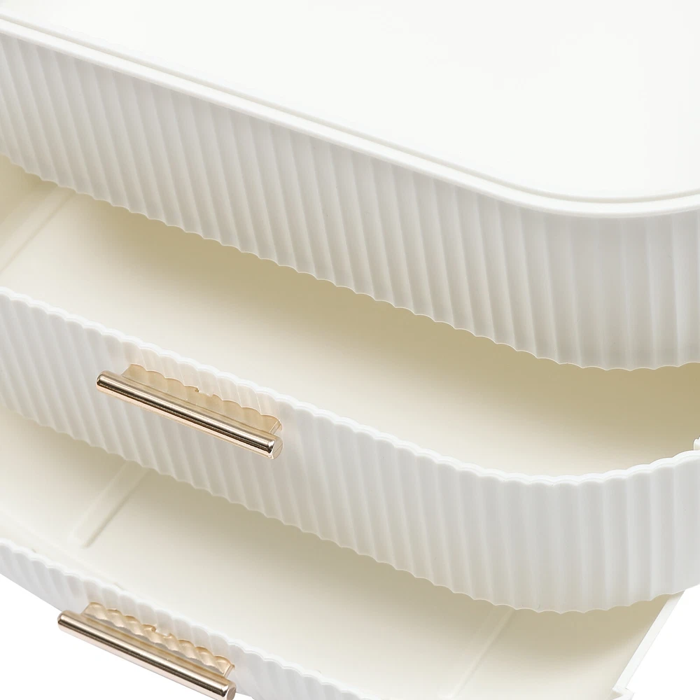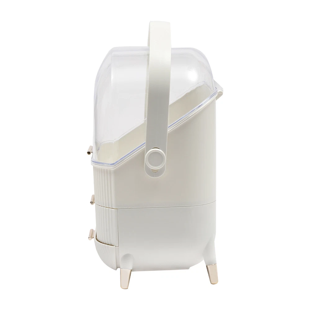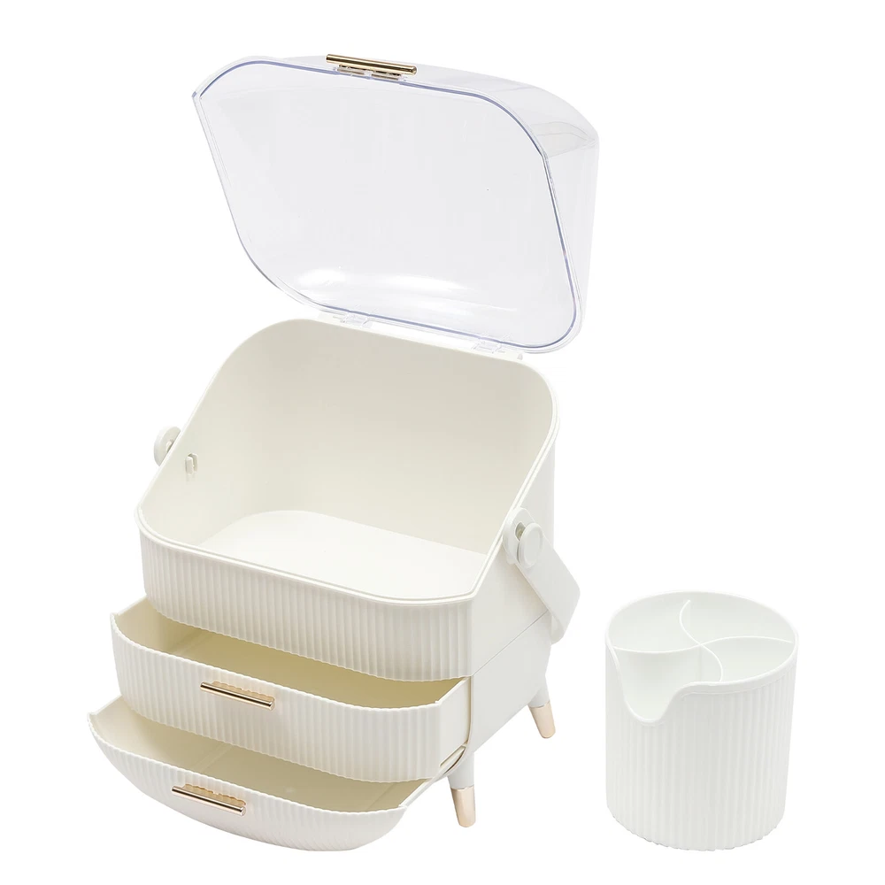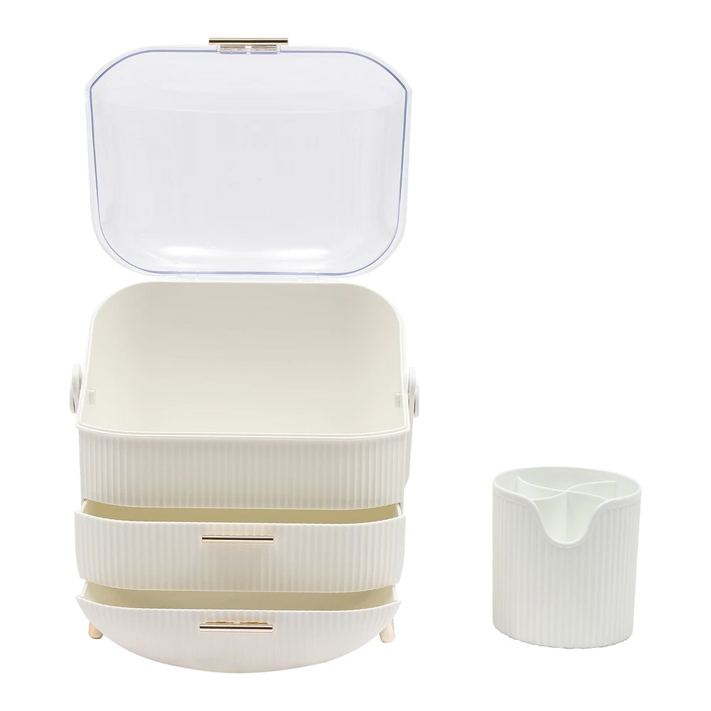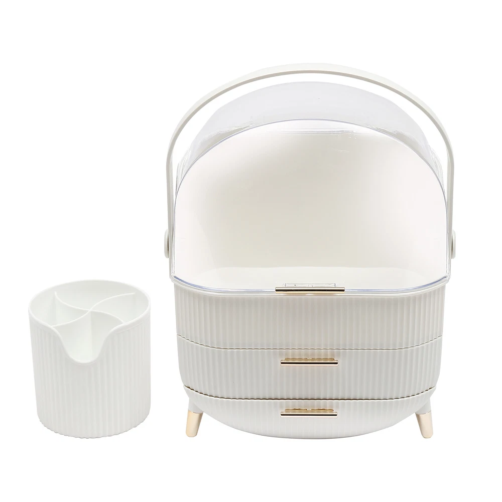 Portable Make Up Organiser Cosmetic Box Makeup Storage Box w/Lid Dustproof 18L Description Portable Make Up Organiser Made of high-quality HIPS and PS materials, this high-value portable make up organiser has a large capacity and can effectively hold most of your cosmetics. It also comes with an extra brush barrel so that your makeup brushes have their place too. While the carry handle design makes it very easy to carry as well, bringing unparalleled convenience to your life! Key Features Super Capacity: A large capacity of about 4 gallons can easily store most of your cosmetics, while it comes with a brush barrel to make it more convenient for you to store your brushes or makeup brushes. By the way, the first layer is 8.3in high, you can easily place high bottles. Transparent and Visible: This portable make up organiser has a visible design that makes it easy to see all the cosmetics in the box. Aseptic and Hygiene: The flip-top lid can keep your cosmetics free from dust, is not afraid of getting wet with water, ensures a dry and sterile storage environment, and is also easy to clean. Classified Storage: The three-layer design allows for sorted storage to keep all your daily essentials neat, organized, and within easy reach, making it easy for you to make reasonable use of space and also convenient for you to pick up later. Stylish and Exquisite: Classic and versatile white color and rounded shape with gold-plated legs is so stylish that you can't help but fall in love with it. Quality Assurance: This portable make up organiser uses high-quality HIPS and PS material, is solid and durable, and will not corrode and rust, the advantages of high strength make it can be used for a longer period of time. Easy to Carry: The 270° rotatable handle makes it easy to carry and accompany you on your journey, keeping you beautiful at all times. Ready to Use: It has a one-piece design without the need for installation. You can use it directly when you receive it, which is very convenient. Ideal Gift: This make up organizer is ideal for Christmas, Thanksgiving, Valentine's Day, Mother's Day, birthday, and other holidays for your mother, lover, family, and friends. Details Hand-free Design: The flip-top lid can keep open on its own, and the hand-free design makes it easier for you to pick up cosmetics. Height-boosting Feet: It has a height-boosting design with 4 height-boosting feet to make it more stable to place. Application This portable make up organiser is suitable store all kinds of cosmetics, nail polish, nail scissors, paper towels, and other daily appliances. Specification Material: HIPS and PS Color: White Shape: Rectangular Capacity: about 18L /4 gallons Brush Barrel Diameter: 12cm/4.7in Brush Barrel Height: 12.5cm/4.9in The First Layer Height: 21cm/8.3in Organiser Size: 25*18.5*37cm/9.8*7.3*14.6in Package Size: 41*23.5*31.5cm/16.1*9.25*12.4in Gross Weight: 1.89kg/4.2 lbs Package Included 1* Portable Make Up Organiser 1* Brush Barrel Notes: Please allow the slight color difference caused by the shooting light and 1-3cm error due to manual measurement and make sure you do not mind before ordering. Payment Delivery details Terms of sales About us Contact us Payment We accept ebay payment 。 Fees such as import duties, taxes are not included in the item price or shipping costs. These charges are the buyer's responsibility. Delivery details Shipping: 2-9 working days to: USA Terms of sales We maintain high standards of excellence and strive for hundred percent customer satisfaction. Feedback is very important to us. We hope that you contact us immediately before you give neutral or negative feedback, so that we can address your concerns. It is impossible to address issues if we do not know about them! About us Your satis faction is our ultimate goal. We work hard to earn your trust and future business. Our certified technicians have tested each item before shipping. The unit comes with 1 year limited warranty on all manufacturing defects. a) If you receive a defective item, you may return it or ask for a discount. Please contact us within 14 days after you receive the package. b) What you returned must be intact and in its original packaging as re? u. Customer is responsible for shipping costs of the returned item. c) We will cover the cost of shipping back t with the shipping rate indicated in the registration page. We will send you a new unit or refund the full payment you paid. Thank you. Contact us Business Hour Business Hour: Monday To Friday: 8:30 AM to 5:00 PM (Beijing China time) Due to time zones, our reply to your questions may not be immediately. But within above working time, we will reply your email within 24 hours. If it's non-workdays, please kindly be patient and wait till Monday. Please contact us with ebay message. Please feel free to contact us if you have any questions. Monday To Friday: 8:30 AM to 5:00 PM (Beijing China time) Due to time zones, our reply to your questions may not be immediately. But within above working time, we will reply your email within 24 hours. If it's non-workdays, please kindly be patient and wait till Monday. Please contact us with ebay message. Please feel free to contact us if you have any questions.