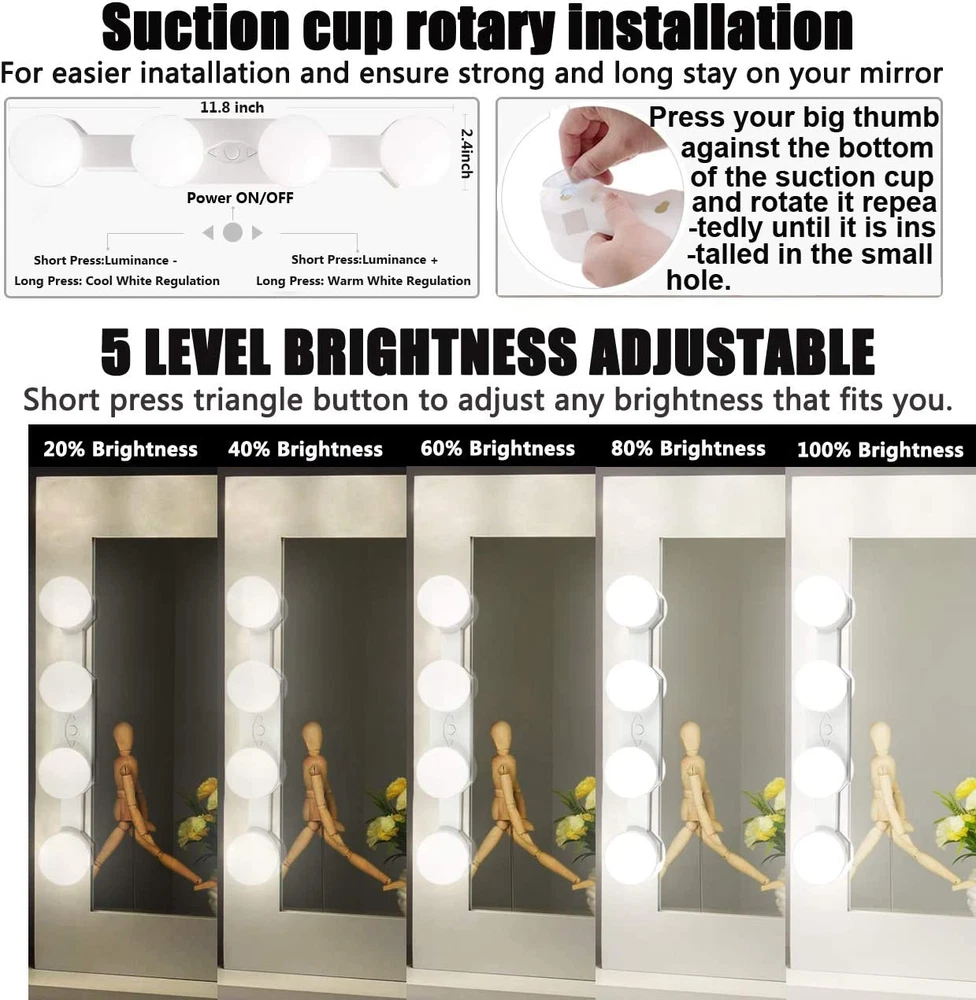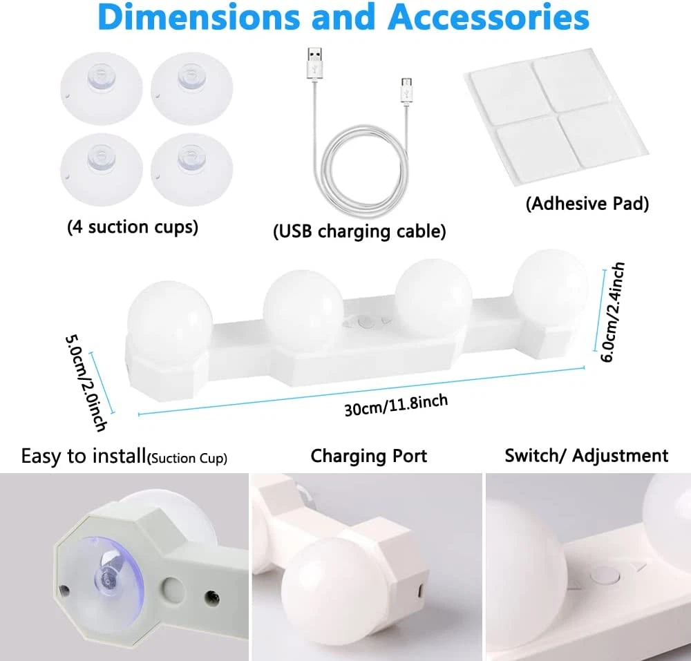 Store New Arrivals Add to Favorite View Feedback Contact Portable Makeup Mirror Light,Cordless Led Vanity Lights with Brightness Color Dimmable for Dressing Room Vanity Table (Pack of 2) Description Light Source Type LED Item model number ML02 Style Modern Number of Items 1 Power Source DC Number of Light Sources 2 Control Method Touch Batteries Included? No Average Battery Life 36 months Lighting Method Touch Controller Type Push Button Unit Count 2 Count Room Type Kitchen, Bathroom Finish Polished Assembly Required No Brand Assemer Material Plastic Installation Type Countetop Coverage 56 Finish Type Polished Specific Uses For Product Home Included Components Bulb Indoor/Outdoor Usage Indoor Brightness 400 Lumen Light Color warm white Batteries Required? No Item Weight 1.08 pounds Light fixture form Vanity Special Features Dimmable Special Feature Dimmable Part Number ML02 Shade Color White, Red Mounting Type Suction cup Color Red Wattage 4 watts Voltage 5 Volts Plug Format usb Recommended Uses For Product indoor Shade Material Acrylonitrile Butadiene Styrene, Polycarbonate Fixture Type Non Removable Manufacturer BlueEye Tech Product Dimensions 12"L x 2"W x 3"H Switch Type Touch Rechargeable Design: Cordless design of makeup lamp easy to carry and install.Standard Usb charging, red charging,full of bright bule,can be filled in about 2-3hours. 3 Color Temperature Modes for Make-up: The vanity Lights has 3 color temperatures (warm white, natural and cool white) to provide you with soft and bright light. Meet your makeup needs under different lights. Brightness Adjustment: The Led mirror light has 5 levels of brightness to choose from, you can touch the small triangle button to select the desired brightness. Memory function means that the lights always stay at the desired brightness level when you have turned off the last time. Suction Cup Installation: Press your thumbkin against the bottom of the suction cup and rotate it repeatedly until it is installed in the small hole. Installed in seconds without tools or wiring. Multi-functional Led Lights: Which can be widely used for kitchen cupboard lights,wardrobe lamp,writing desk lights,bathroom lights,makeup dressing table lights,emergency light Lighting. Product Description 1. Do you worry about the color difference after you makeup? 2. Does the the insufficient light distress you when you makeup? 3. Are you worried how to choose the professional color temperature of the light to show the natural makeup? Assemer LED makeup light kit have Natural light, Cool light and Warm light 3 light color options,Cordless portable rechargeable,brightness color temperature adjustable makeup lights for your Make-up needs. Portable Makeup Lights Makeup Light Detail 4W total wattage 3 Color Temperature Dimmable LED Light Bulbs Rechargeable Cordless Portable Makeup light Why You Need Vanity Lights When Makeup ? If you want to have a professional makeup, in addition to make-up techniques, vanity light is essential. Light projection in the face of the light enough, will not form a shadow, on the makeup to ensure uniform color. And you can use the mirror to makeup in the dark condition. 4 dimmable Led makeup miror light Easy be installed and easily stick it directly on the mirror Cordless portable rechargeable dimmer makup light DIY a vanity mirror with low budget Why Choose Assemer Vanity Lights? Travel Portable Makeup Light Flexibility for your make up at home, business travel or you want, portable to carry. Suction cup rotating installation LED vanity mirror lights kit with suction cups design,can be installed in seconds,no tools or wiring required Micro-USB Port Powered Micro-USB data cable charging (red light when charging, blue light when fully charged) Adjustable Color Temperature and Brightness With 3 kinds of color temperature and 5 levels of brightness adjustment, it can meet the needs of makeup lighting. Lights for Make-up Makeup mirror lights, It is close to the daylight brightness so your skin color be show naturally. Bathroom Vanity Mirror Lighting Touch the small triangle button to adjust the brightness of the light. Therefore, you don't have to worry about the light being too bright or too dark. The Choice for Gifts Gift for your loved ones: the gift for your loved ones during Valentines Day, Christmas, birthdays, or any other holiday. ABOUT US We offer the best prices around on high quality products. Our E-store includes media such as books, movies, music and games while offering electronics, toys, sporting apparel, clothing, tools, general home, garden items and more. SHIPPING We are always working hard to ensure your package arrives as soon as possible. Please understand that some factors like weather, high postal traffic, and the performance of shipping companies are outside of our control. We offer free shipping to the lower 48 states and ship within 2 business days of payment, usually sooner. We do not accept P.O. Boxes. Please provide a physical address. RETURNS We offer a 30-Day Return Policy on items which you are not completely satisfied with. You have the option for a full-refund or an exchange of the item. No returns are available on items shipped outside of the USA. PAYMENT We accept PayPal. CONTACT US This page content is yet to come Please ad us to your favorite seller and visit again later Thank You CUSTOMER SATISFACTION We try our very best to make sure every customer is completely satisfied. If there's a problem, message us! We're happy to help.