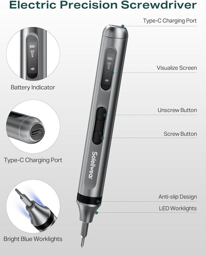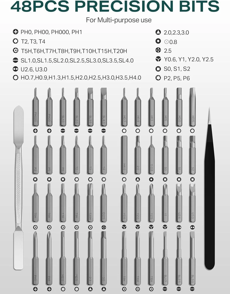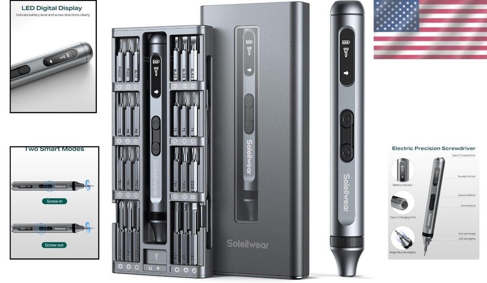Portable Mini Electric Screwdriver with 48 Bits for Precision Electronic Repairs ‹ › ‹ › ‹ › ‹ › ‹ › ‹ › ‹ › ‹ › ‹ › ‹ › ‹ › Portable Mini Electric Screwdriver - 48 Bits for Precision Electronic Repairs - 52-IN-1 for Multi-Purpose Features: Equipped with 48 different types of S2 steel bits for a wide range of applications. Includes: 1 electric screwdriver handle, 1 tweezers, 1 crowbar, and 1 Type-C USB cable. Suitable for assembling and disassembling most electronic products such as tablets, mobile phones, watches, drones, and more. Mini design closely resembling a pen, providing portability and ease of use. Push pop-up design for convenient and secure storage of bits and tools. Magnetic storage for the screwdriver and bits to ensure nothing falls out during work. 200r/min rotation speed for efficient performance. Supports both manual mode (3.5N.m torque) and electrical mode (0.3N.m torque). Long-lasting 350mAh rechargeable lithium battery keeps you powered up for up to 180 minutes of continuous use. Standby time of up to 90 days, ensuring you're always ready when you need it. Benefits: Perfect for electronics enthusiasts, offering essential tools all in one compact kit. Easy to carry and handle, thanks to its lightweight and pen-like design. Enhanced grip and control with its circular arc surface design. Quickly toggle between tightening and loosening screws with dual mode functionality. Fast charging enables you to get back to work without waiting long, only 45 mins for full charge. Why choose our Portable Mini Electric Screwdriver? Are you an electronics enthusiast looking for the perfect toolkit for all your repairs? Look no further. This Portable Mini Electric Screwdriver is designed for precision and convenience, with 48 different bits included to handle a wide range of devices— from your smartphone to your camera. Its sleek and portable design ensures that it fits effortlessly into your hand, allowing for perfect control. With magnetic storage that securely holds everything in place and dual mode options to meet all your torque needs, this electric screwdriver will elevate your electronic repairs to the next level. Invest in an elite tool that guarantees efficiency and quality, making your repair tasks a breeze—order yours today! Shipping Free & Fast Shipping - We offer free shipping to most of the USA with a normal delivery time of 3-10 businessdays. However, due to various situations, additional delivery time (up to 3 weeks) may be required for some items. Alternative Carriers - We may use alternative carriers (e.g. USPS, FedEx, UPS, etc.) to ensure your package arrives safely and on time. Due to the use of multiple carriers, we are unable to provide a tracking number automatically. Handling Time - Orders are processed and shipped within 1-5 business days of receiving cleared payment. Shipping Restrictions - Shipping to Alaska, Hawaii, Puerto Rico, Guam, and other US territories may incur shipping charges or delivery restrictions. Please contact us before ordering, or your order can be refunded/cancelled. State Restrictions - There may be restrictions based on your state of purchase. For example, certain items may not be shipped to California due to state regulations. Contact for Tracking Updates - If you require tracking updates or have any concerns about the delivery of your order, please feel free to contact us, and we will be happy to assist you. Return Please see our ebay return policy. We do not accept return on most products. This is to avoid customers mis-using ebay returns. All sales are final. Please be sure to check the return policy listed at the top of the listing. In rare cases, we may accept returns, if the buyer pays both ways shipping and 20% restocking fee. If you are un-sure of return policy of a particular item, please ask before buying. Payment We accept all major credit cards, PayPal, and Apple Pay for your convenience. Your payment information is secure and encrypted to ensure a safe and seamless transaction. Please complete your payment within 3 days of purchase to avoid any delays in shipping. Feedback Your feedback is extremely important to us. We strive to provide the best products and customer service possible. If you are satisfied with your purchase, please take a moment to leave us a positive review. If you have any concerns or issues with your order, please contact us before leaving negative feedback. We are committed to resolving any problems and ensuring your satisfaction. Contact Us If you have any questions or concerns, please feel free to reach out to our customer support team. You can contact us through the eBay messaging system. We are available Monday to Friday, 9:00 am to 5:00 pm EST, and we will do our best to respond to your inquiry within 24 hours. Buy it now and enjoy a pleasant shopping experience! UPC: Not Set Model: Not Set Item Width: Not Set Item Length: Not Set Item Height: Not Set Item Diameter: 1.1inches Item Weight: 1.1 pounds Unit Quantity: 52 Features: Magnetic,Portable,Dual Mode,Cordless,Magnetic Tip Material: Aluminum,S2 Steel Brand: Unbranded Type: Electric Screwdriver Drive Type: Mixed Set Number of Pieces: 52 Star Size: Not Set System of Measurement: Standard (SAE) Manufacturer Warranty: Not Set MPN: Not Set Color: Grey Country/Region of Manufacture: Not Set Unit Type: lb