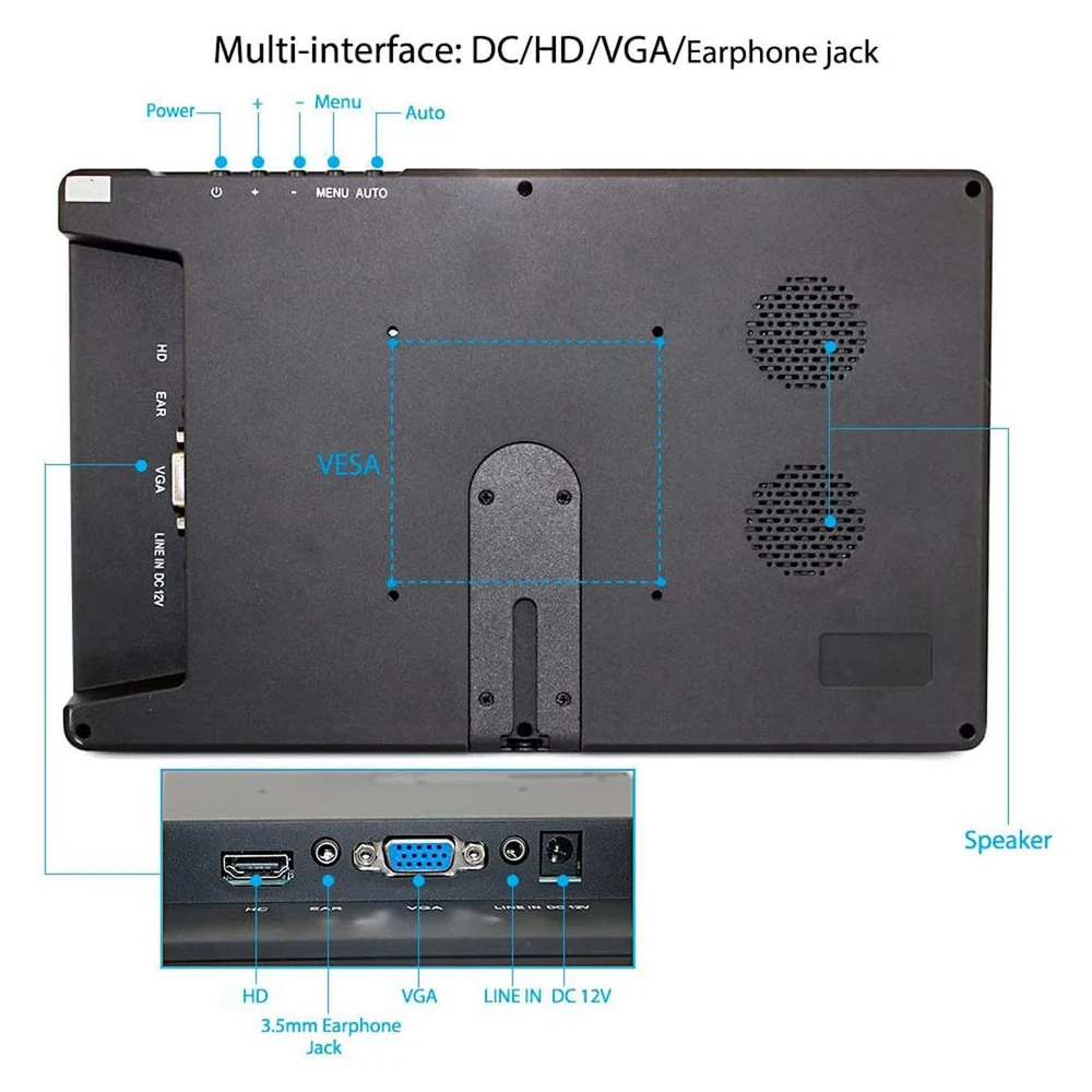 Great Picture Quality: Immerse yourself in stunning visuals with 10.1-inch monitor boasting a beautiful screen resolution of 1920x1080; the picture quality is exceptionally clear and crisp, delivering an impressive visual experience Light & Portable: Designed with portability, our mini monitor is incredibly lightweight and compact; it's a good companion for those on the go or for use in small spaces where space is limited; take it with you wherever you need a portable display Easy Setup: Connect your devices to portable monitor effortlessly using the HD or VGA ports; the display interfaces are neatly recessed on the side, allowing for easy cable management and a clean appearance Wide Application: It can use as a second screen for your laptop or as a mini PC screen; you can even plug in a TV stick and transform the monitor into a high-definition small TV; additionally, the VGA port allows for easy connection to your computer or laptop Flexible Installation: This portable monitor offers different installation options; choose to mount it on the wall using the standard VESA 75 mount (mount not included, M3*4mm screws needed), or place it on your desktop using the adjustable mount stand provided