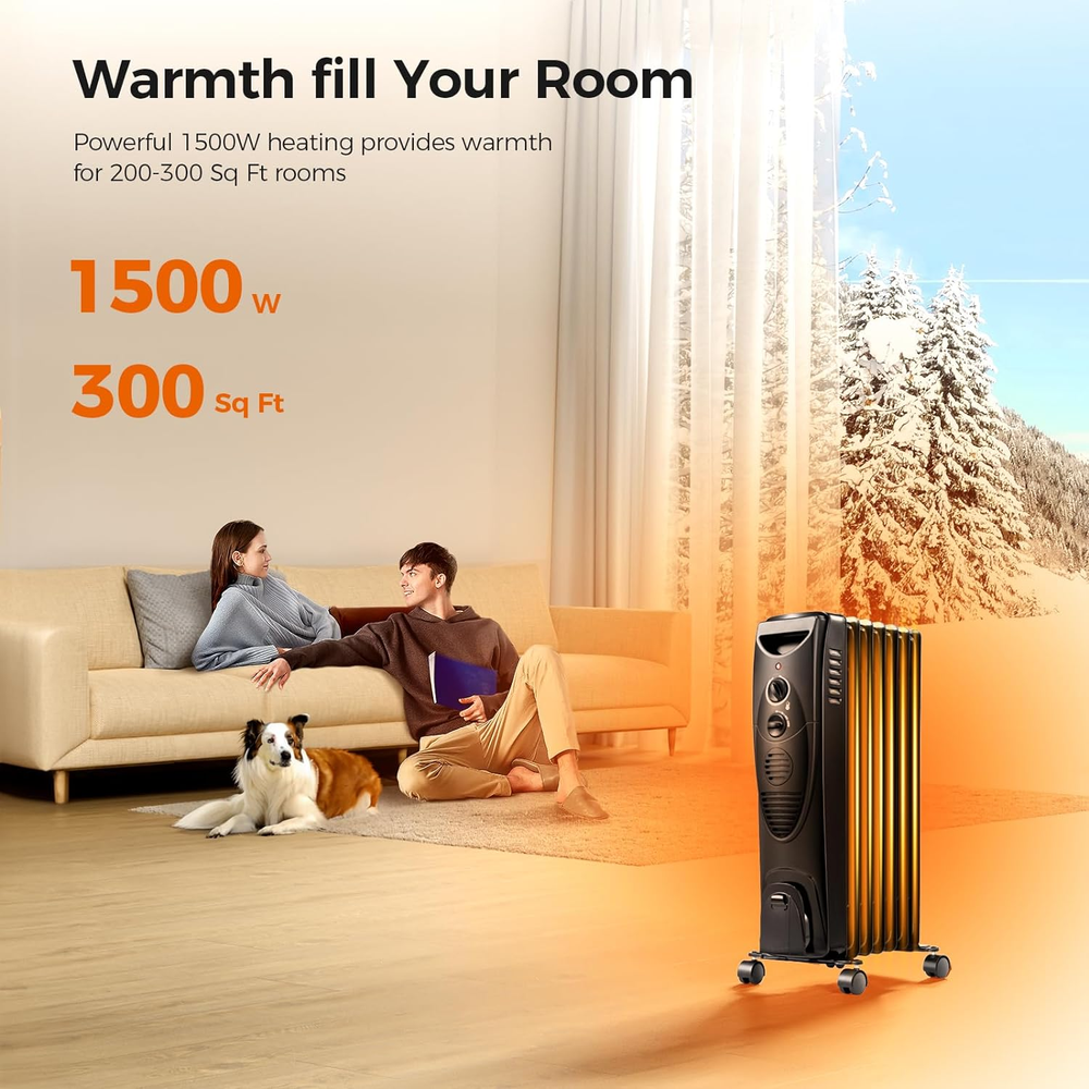 This portable oil-filled radiator is a game-changer for staying cozy! It heats up quickly and offers three adjustable settings, making it perfect for any room. The compact size fits nicely in small spaces, and the built-in wheels make moving it a breeze. Love how quiet and efficient it is—no more freezing while working or relaxing. Definitely a must-have for winter!