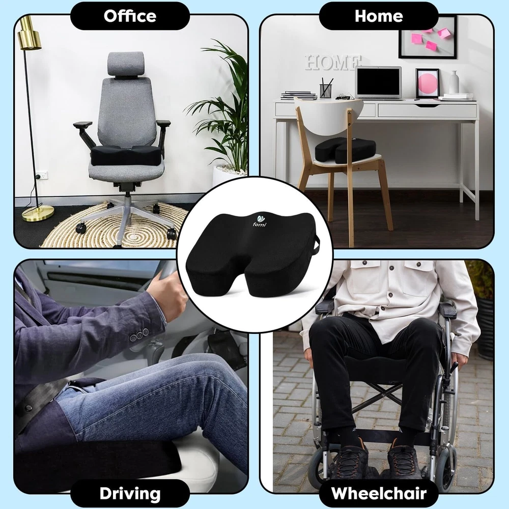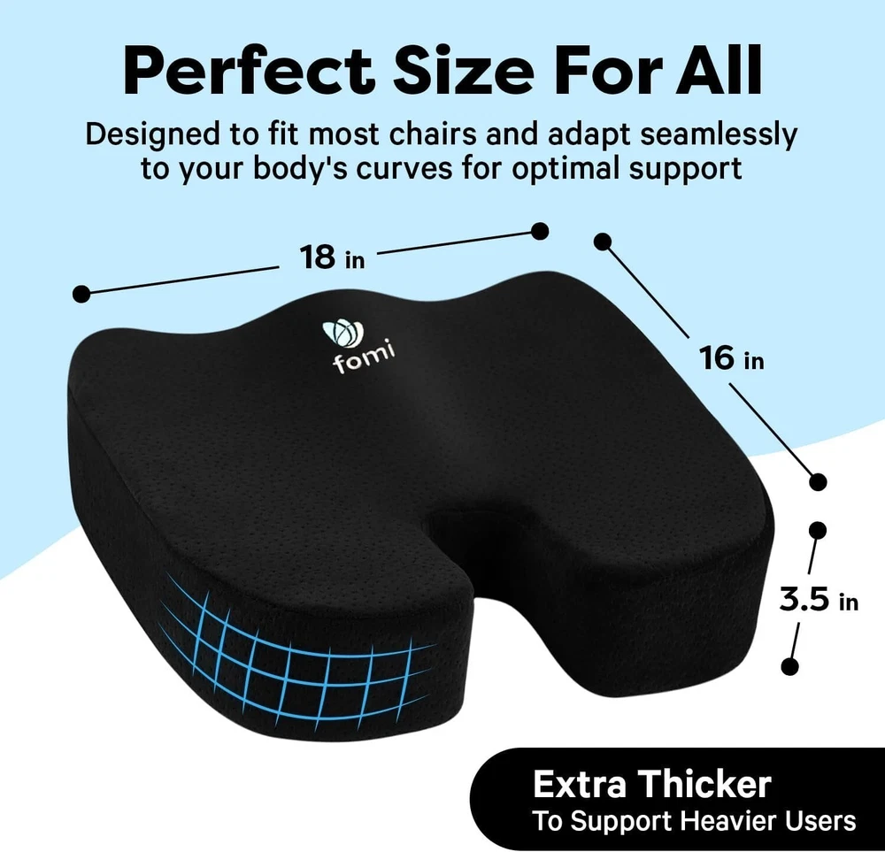 Portable Orthopedic Memory Foam Cushion with Cut-Out Design | Black 18x16 inches