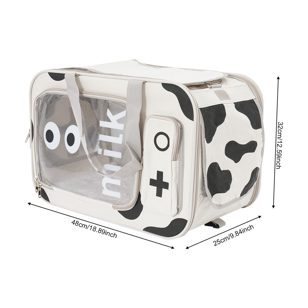 Application It is suitable for carrying cats up to 22.05 lbs or small dogs up to 16.53 lbs for walks, travel, medical outings, outdoor activities, weekend hiking, camping, picnics, and more. Specification Color: Beige, Black Shape: Rectangular Material: Oxford Fabric, PVC, Steel Wire Suitable Subject: Dogs up to 7.5kg/16.53lbss: Cats up to 10kg/22.05lbs or Small Product Size: 48*25*32cm/18.89*9.84*12.59in Package Size: 51.5*39*6.5cm/20.28*15.35*2.56in Gross Weight: 1.5kg/3.31lbs Net Weight: 1.43kg/3.15lbs Package Included 1* Pet Bag 1* Shoulder Strap 1* Soft Pad Travel Pet Carrier Pet Bag For Cats/small Dogs Oxford Cloth Pet Backpack Carrier Description Designed for loving pets, this pet bag can instantly attract the attention of passersby with its unique design and cute shape. Made of premium materials and featuring a spacious interior and well-ventilated design, it ensures the comfort and safety of your pet and allows your pet to enjoy pleasure while traveling. Whether you are taking a walk or traveling, it is a great companion for you and your pet, showing warmth and style. Key Features Last for Years: This product is made of premium Oxford fabric, PVC, and steel wire, making it wear-resistant, stain-resistant, tear-resistant, and odorless , to ensure a long service life. Large Space: It has a spacious space(18.89* 9.84*12.59 in) that allows your pets to lie down comfortably to rest and turn around, and enjoy more comfort during going out. Strong Weight Capacity: Premium materials and sturdy steel wire skeleton structure provide a strong weight capacity for the product, which can accommodate most cats and kittens up to 22.05 lbs and small dogs up to 16.53 lbs so that you can use it with peace of mind. Thoughtful Design: Small windows on the left, right, and top with shades ensure good ventilation, allow you to easily observe your pet when open, and keep out the wind when closed. Simple to Store: When you are not using it, you can quickly fold it up and place it in corners or lockers without taking up too much space. Easy to Carry: Two wider carrying handles and an adjustable shoulder strap are ergonomically designed to make it easy for you to carry this product by hand or hang it on your shoulder to carry your favorite pet anywhere. Convenient Cleaning: Thanks to its simple structure and stain-resistant Oxford fabric material, you can easily wipe it clean with a damp cloth(not included), convenient for daily maintenance. Beautiful and Cute: The interesting cow spot patterns and cute big eyes give this product an appealing outlook, and you will be a bright sight on the street when you take your cat out with this exquisite bag. Ideal Gift: Thanks to its practicality and beauty, it makes an ideal gift for friends and family who have pets and often go out with them. Buy with Confidence: We stand behind all our guests and look forward to assisting you with your purchase. It is our pleasure to answer your confusion and questions. The end of the story between us is not "we sell and you buy". Details Soft Pad: It provides a comfortable and reassuring environment for your pet. Anti-Running Rope: It has a built-in locking clip to secure your cat in place and prevent it from escaping. Reflective Strip: It provides security for your traveling at night. Storage Bags: The front and back storage bags are convenient for you to store more cat supplies(not included). Application It is suitable for carrying cats up to 22.05 lbs or small dogs up to 16.53 lbs for walks, travel, medical outings, outdoor activities, weekend hiking, camping, picnics, and more. Specification Color: Beige, Black Shape: Rectangular Material: Oxford Fabric, PVC, Steel Wire Suitable Subjects: Cats up to 10kg/22.05lbs or Small Dogs up to 7.5kg/16.53lbs Product Size: 48*25*32cm/18.89*9.84*12.59in Package Size: 51.5*39*6.5cm/20.28*15.35*2.56in Gross Weight: 1.5kg/3.31lbs Net Weight: 1.43kg/3.15lbs Package Included 1* Pet Bag 1* Shoulder Stra p 1* Soft Pad Notes Please check the style and size, and measure your pet's size before purchasing. Please do not choose the pet bag only based on your pet's weight. Please note that this package does not include other pet supplies. Please do not exceed its maximum weight capacity when using it. Please allow the slight color difference caused by the shooting light and 1-3cm error due to manual measurement and make sure you do not mind before ordering. Payment Delivery details Terms of sales About us Contact us Payment We accept ebay payment 。 Fees such as import duties, taxes are not included in the item price or shipping costs. These charges are the buyer's responsibility. Delivery details Shipping: 2-9 working days to: USA Terms of sales We maintain high standards of excellence and strive for hundred percent customer satisfaction. Feedback is very important to us. We hope that you contact us immediately before you give neutral or negative feedback, so that we can address your concerns. It is impossible to address issues if we do not know about them! About us Your satis faction is our ultimate goal. We work hard to earn your trust and future business. Our certified technicians have tested each item before shipping. The unit comes with 1 year limited warranty on all manufacturing defects. a) If you receive a defective item, you may return it or ask for a discount. Please contact us within 14 days after you receive the package. b) What you returned must be intact and in its original packaging as re? u. Customer is responsible for shipping costs of the returned item. c) We will cover the cost of shipping back t with the shipping rate indicated in the registration page. We will send you a new unit or refund the full payment you paid. Thank you. Contact us Business Hour Business Hour: Monday To Friday: 8:30 AM to 5:00 PM (Beijing China time) Due to time zones, our reply to your questions may not be immediately. But within above working time, we will reply your email within 24 hours. If it's non-wo