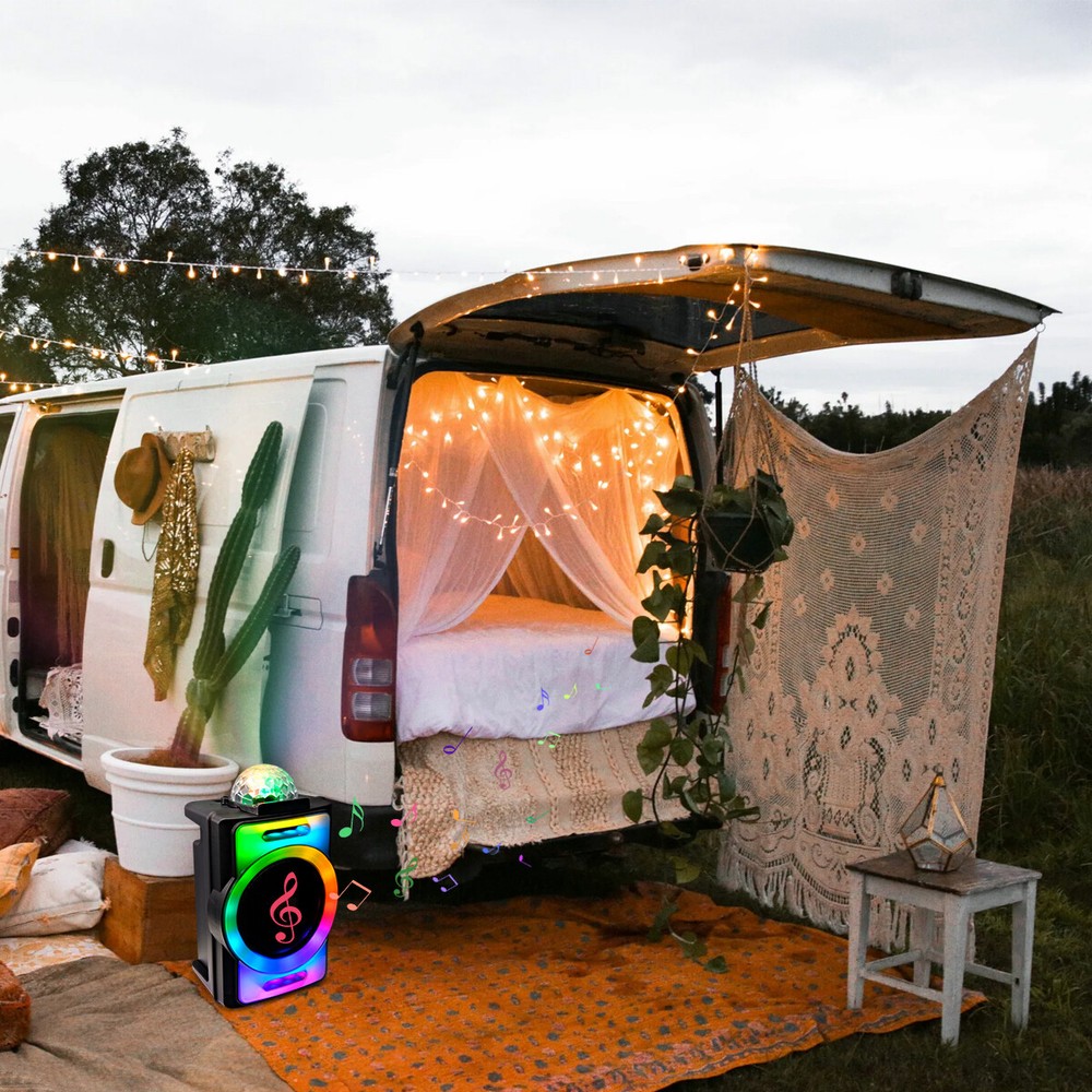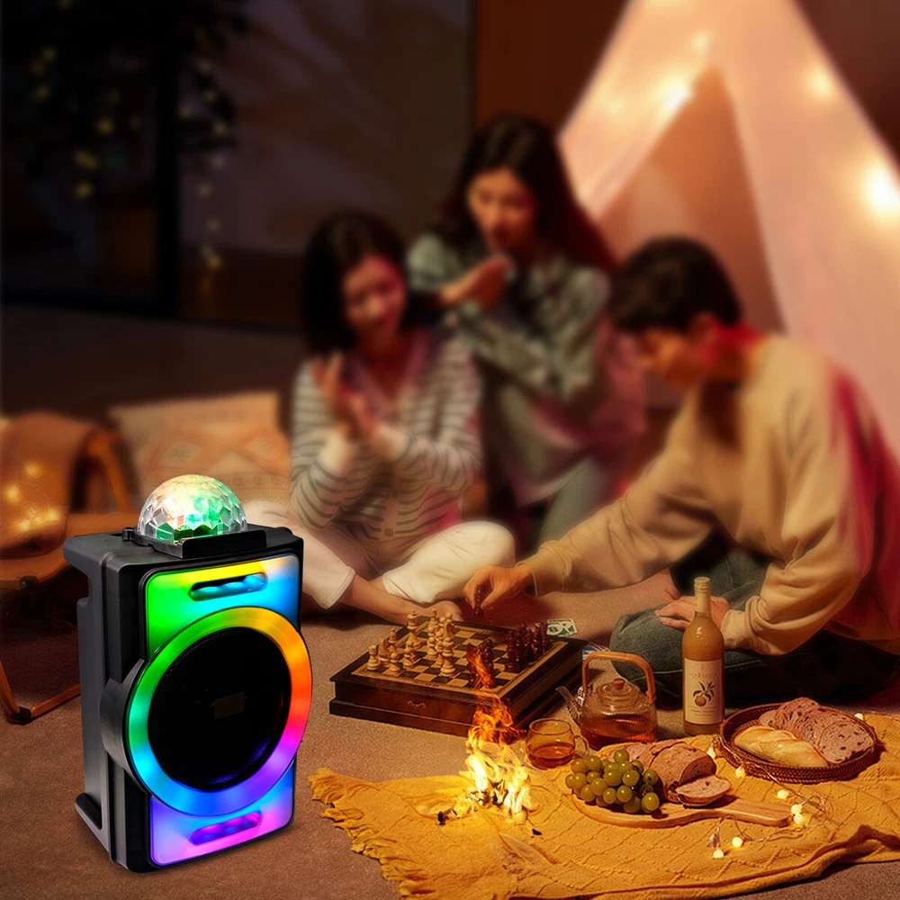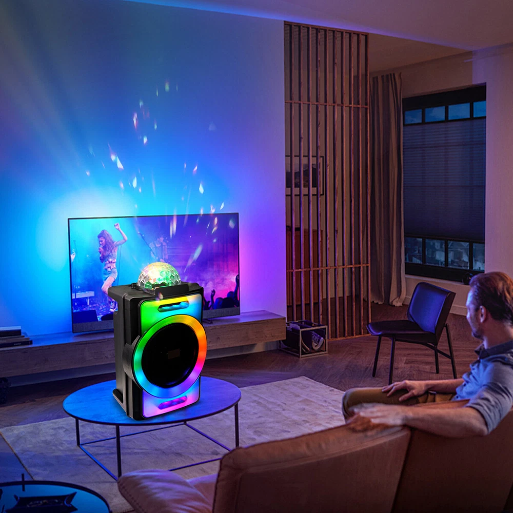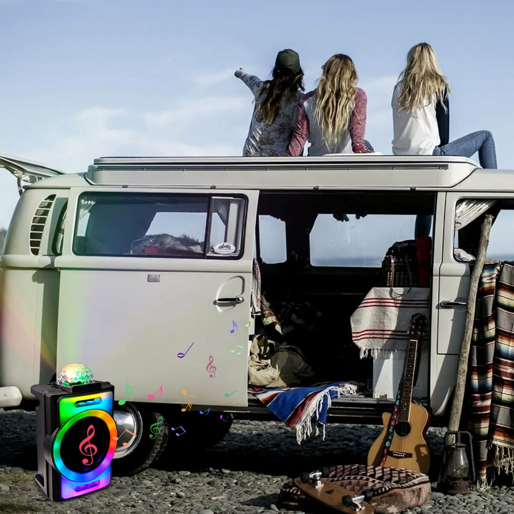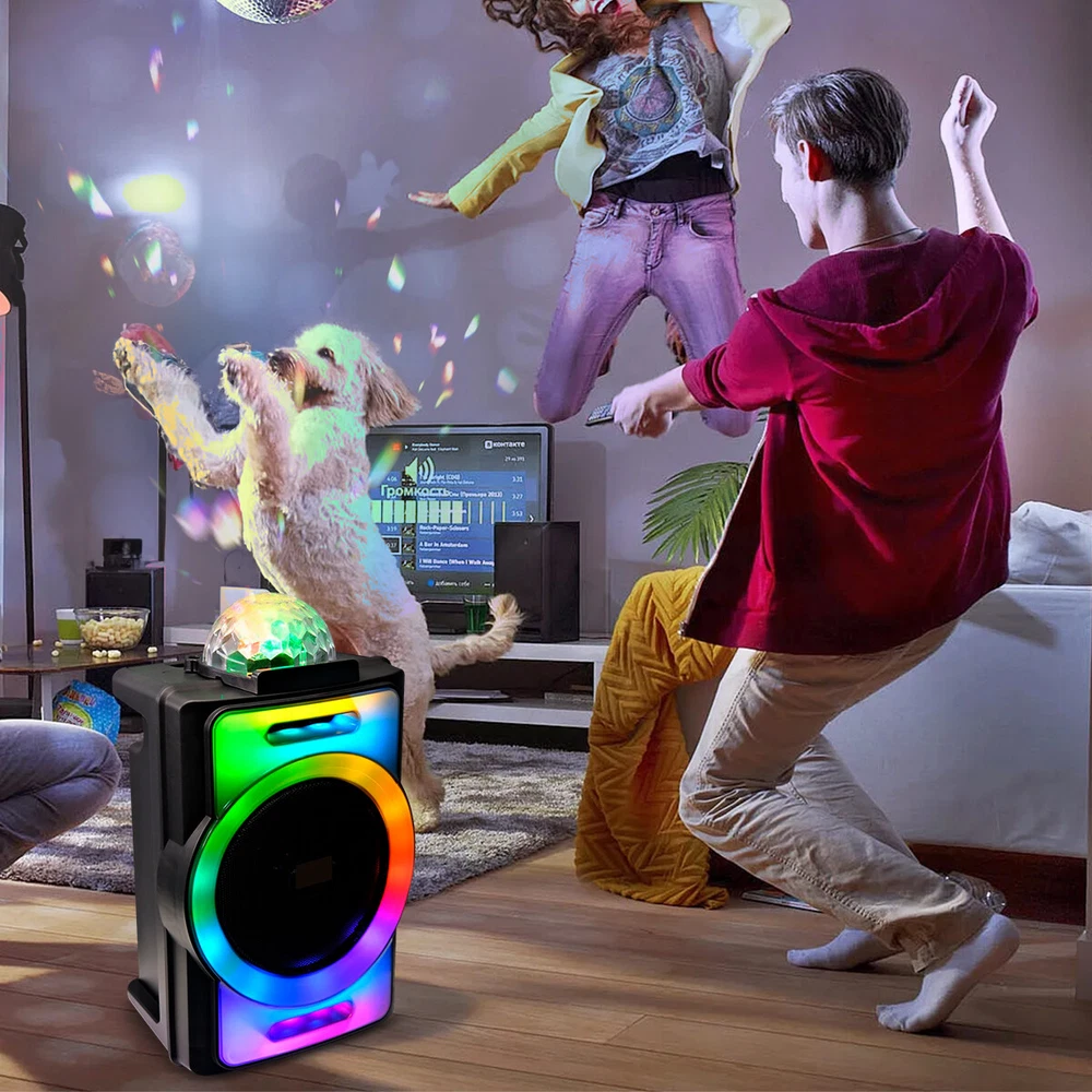 This speaker is a total game-changer for parties! The bass is deep and punchy, the lights sync perfectly with the music, and the wireless pairing option makes the sound huge. Love that it lasts for hours on a single charge, and the wired mic is great for karaoke. Super easy to use with Bluetooth, USB, or even FM radio—definitely worth every penny!