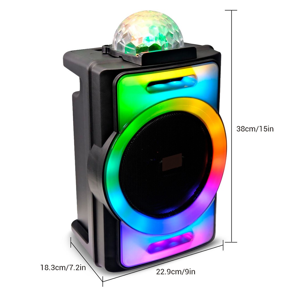 Portable Party Speaker w/ 8-in Woofer 360° Disco Light, Wired Mic,FM/USB/TF Mode 🌟 FEATURES 360° Disco Lights – Multi-color LED lights sync to the beat for a vibrant party atmosphere. Powerful 8" Woofer & Tweeter – Delivers deep bass and crisp highs for immersive 360° audio. WaveSync Technology – Wirelessly connect two speakers for true stereo sound. All-in-One Playback – Supports Bluetooth, USB MP3, AUX input, and FM radio for versatile connectivity. Rechargeable & Portable – 3000mAh battery provides up to 8+ hours of playtime; integrated handle for easy transport. Karaoke-Ready – Includes a wired microphone for singing, speeches, and announcements. User-Friendly Controls – Intuitive panel for adjusting volume, playback, and lighting modes. Dynamic Sound & Light Combo – Perfect for parties, gatherings, and everyday entertainment. 📈 SPECIFICATIONS Driver: 8" Woofer with Tweeter Output Power: 50W RMS Frequency Response: 50Hz–20kHz Connectivity: Bluetooth, USB MP3, AUX Input, FM Radio Battery: 3000mAh Rechargeable (3.7V) Charging Port: Micro USB Microphone Input: Wired Microphone Included Lighting: 360° Multi-Color Disco Lights Control Panel: Volume, Playback, and Input Controls Portability: Integrated Handle 📦 WHAT'S INCLUDED 1 x ABX-890R Speaker 1 x Wired Microphone 1 x MicroUSB Charging Cable 1 x User Manual Payment Return Warranty Shipping Contact us Payment 1. We accept payment via PayPal. Use PayPal at checkout to pay with credit or debit. 2. Immediate payment is required. Shipping will be arranged within 1 business day once payment is cleared. Return 1. We stand behind our items and offer 60 days warranty. All items are in new and working condition unless specified otherwise elsewhere in the description. 2. All Returns - defective or otherwise - MUST BE PREAUTHORIZED to guarantee refund or exchange. Please contact us to get an authorization and return address. 3. Buyer agrees to pay for the cost of re-shipment for undeliverable or wrong addresses. 4. Buyer is responsible for Return Postage as well as a 20% restocking fee if return/replacement is not a result of our mistake such as wrong item. 5. Replacement or Refund will be made upon receipt of the returned item. Please include tracking number so we can process ASAP. If you do not wish to wait for a replacement, please repurchase the item. 6. ALL REFUNDS will be processed via PayPal. Please double check via PayPal history and transaction for confirmation. PayPal will send it back to whatever you used to pay within 3-5 days. Warranty The warranty shall not apply to the following circumstances: a) Damage caused by undue ware&tear, misuse, improper installation or operation, neglect, accidents. b) Damage caused by natural disaters, flood, fire, lightning or pollution. c) If item was opened, any parts removed or repaired by any unauthorized person. Shipping FREE SAME BUSINESS DAY MONDAY- FRIDAY SHIPPING FROM USA. All orders and payments received before 4PM EST (1PM PST) will be shipped the same business day. All other orders within 1 business day. No shipping on Weekends or US Public Holidays. No responsibility for any custom duty Shipping information will be updated when available. Contact us We have always been trying to provide the best service and reliable products for every customer, however, accident may happen sometimes, please contact us to resolve any issue before leaving a negative feedback.
