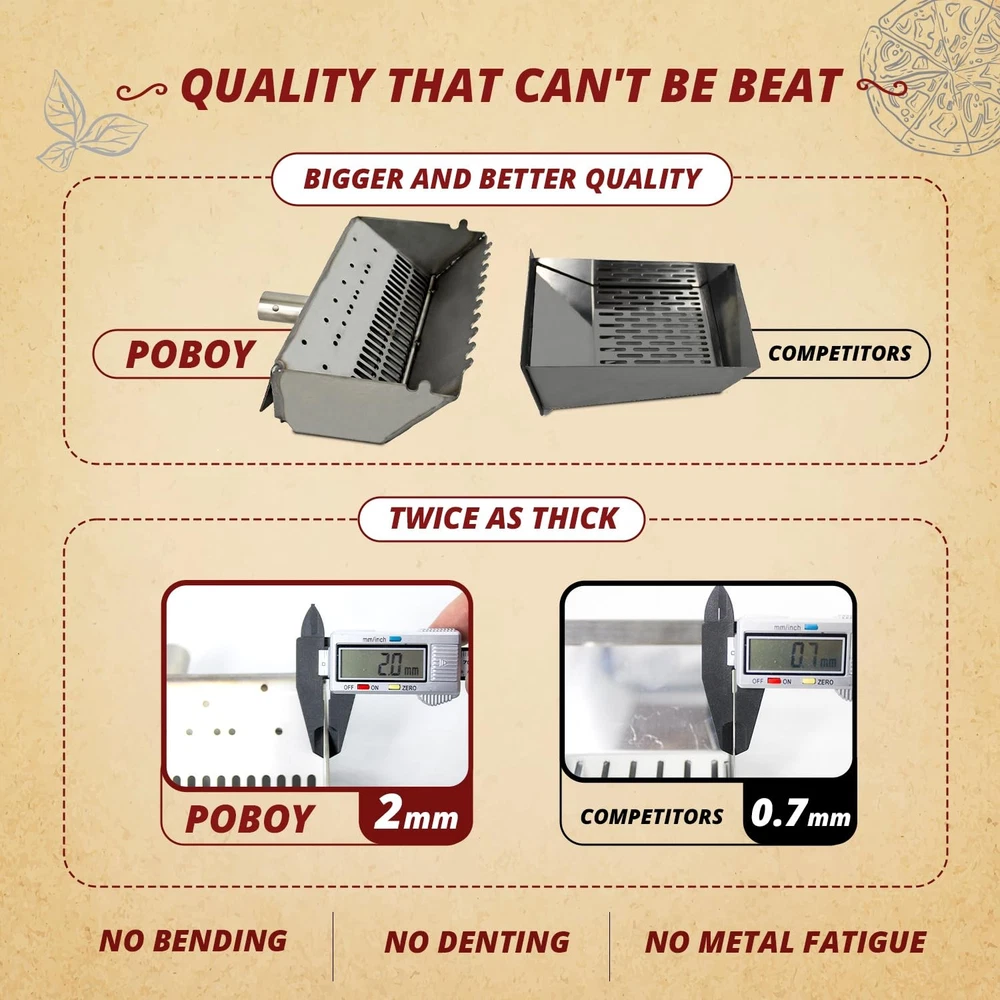 Protect your pizza oven with this high-quality outdoor cooking kit made to withstand the elements. Designed with durable stainless steel, it offers superior resistance to heat, wear, and weather. Ideal for backyard cookouts, weekend camping, and seasonal events. Whether you're a weekend pizza lover or an everyday outdoor chef, the PoBoy Pizza Oven Kit is built to deliver. With easy setup, fast heat-up to over 900°F, and premium tools included, it brings wood-fired flavor to any setting. VERSATILE FIT: Designed to fit standard outdoor setups for camping, tailgating, patios, and backyards DURABLE MATERIALS: Made from premium stainless steel for long-lasting performance and rust resistance ALL-WEATHER PROTECTION: Built to withstand high heat and outdoor conditions for year-round use USER-FRIENDLY DESIGN: Includes chimney with draft control, peel, laser thermometer, and starter for convenience SATISFACTION GUARANTEED: Backed by friendly customer support and a quality guarantee