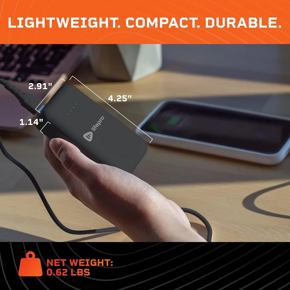 SPECIALLY DESIGNED FOR YOUR LIFEPRO GEAR - Plug your AllevaRed, AllevaRed Pro, & BioRecover into the special 12V DC Port of the portable charger power bank & take your wellness experience on-the-go! LONG LASTING POWER BANK IN YOUR POCKET - Get multiple hours of use from a single charge of your portable power bank with a powerful 15,000 mAh capacity! CHARGE YOUR MOBILE DEVICES TOO - Use the power bank battery charger as a cell power bank to top up your mobile devices thanks to the USB 3.0 port. CABLES & ADAPTER INCLUDED - Packaged for your convenience, the battery pack comes with a USB Power Adapter, USB to USB-C Charging Cable, and the 1.35 mm to 2.1 mm DC cable for your Lifepro gear! CHARGE IT UP VIA USB-C - Prepare yourself with mobile battery power before you get going & charge up your power bank via the convenient USB-C charging port. Product Description