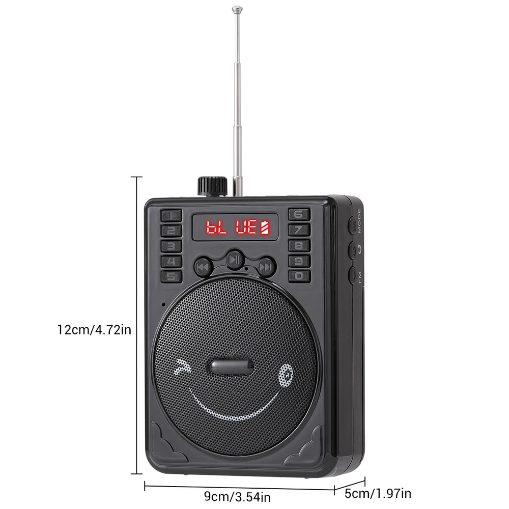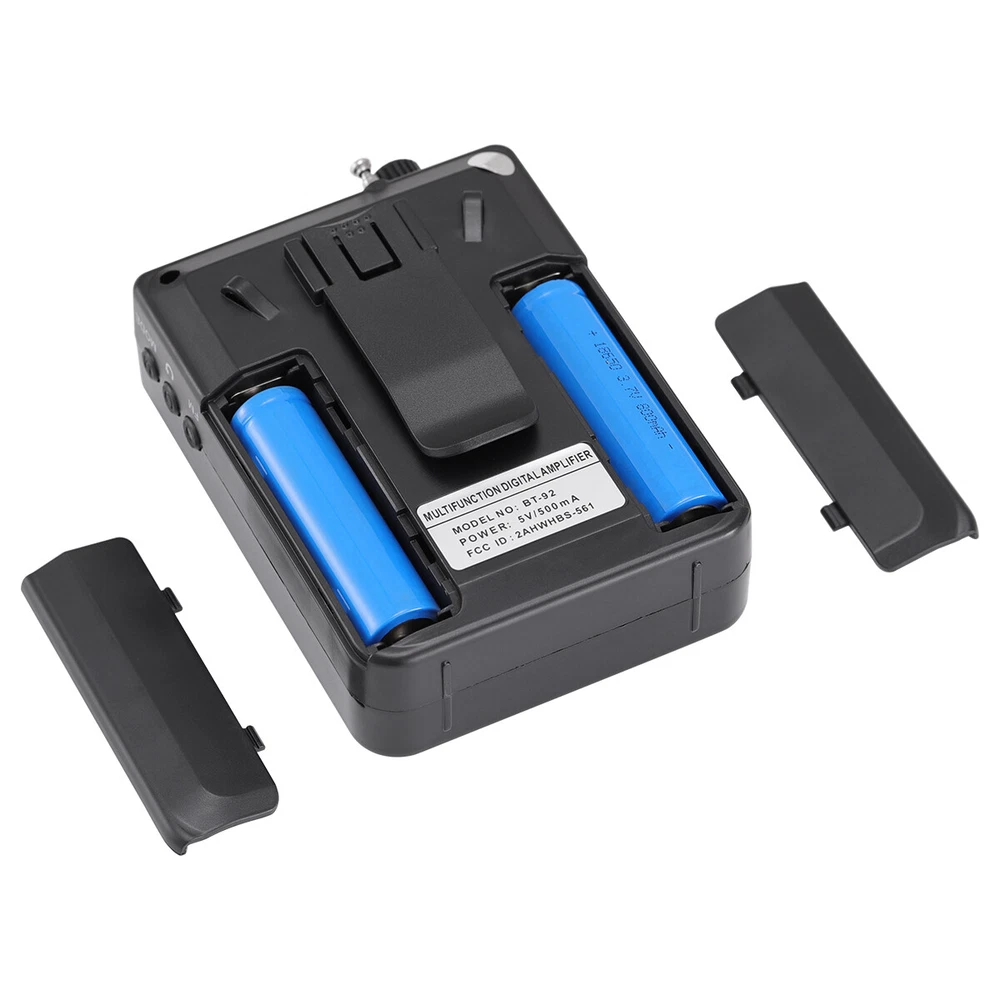 Product Information: Brand:Unbranded Color:Black Product size: 12cm*9cm*5cm Material: ABS Bluetooth model: BT-92 Function: Bluetooth BT connection, USB flash drive, FM, TF card Input voltage: DC5V 0.5A Frequency response: 80HZ --12Khz Output power: 3w Working voltage: 3.5v-4.7v Battery model: 18650 3.7V 800MAH * 2 Charging time: 2-3 hours Usable time: 4-6 hours Product Dimensions: Length (in.):4.72 Width (in.):3.54 Height (in.):1.97 Package Size: Length (in.):5.57 Width (in.):5.12 Height (in.):2.17 Weight (lbs.):0.728 Product features: 1.High quality speakers, stunning sound effects 2.Bluetooth wireless connection 3.Supports wired microphone input 4.Multiple input methods: Bluetooth, FM, TF card U Disk 5.Lightweight and portable design, comfortable carrying str ap Application scenario: Scenes such as speeches, teaching, conferences, outdoor activities, and family entertainment Package include: Wireless amplifier * 1 Wired microphone * 1 18650 battery (800MAH) * 2 TYPE-C charging cable * 1 Hanging rope * 1- English manual * 1