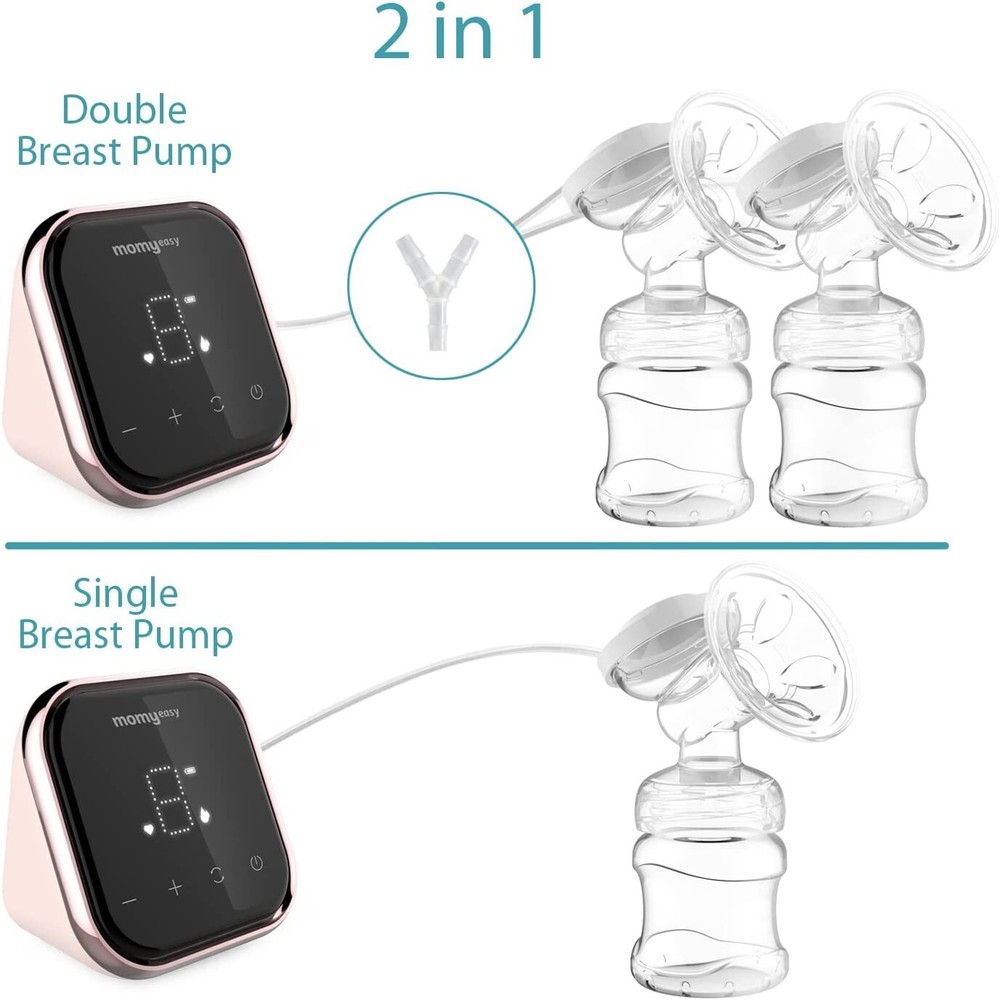 MOMYEASY Double Electric Breast Pump, Portable Rechargeable Breastfeeding Pump with 24mm 27mm Detachable Flanges, Mirror Touch Screen LED Display 9 Speeds 2 Modes with Storage Bags Efficient Pumping: MOMYEASY Electric breast pumps come with 2 modes and 9 levels, Come with strong suction, Massage, and stimulate breasts before pumping, are Comfortable and pain-free, and mimic a baby's feeding patterns for optimized milk expression BPA Free: Breast pump made of food-grade soft silicone, BPA-free material without any harmful substances, All accessories can be removed and washed in the dishwasher, Protect the Breastfeeding safety Easy Use: MOMYEASY Electric breast pump Come with mirror touch screen LED display, Easy to use with the operation, Built-in 1500mAh Li-ion battery, The machine is small, easy to carry, Convenient for you to use anywhere Closed System: Reliable closed system kit with overflow protection closed system design prevents your breast milk from entering the pipeline, need not worry that the milk might damage the breastfeeding milk pump Replaceable Flange: Breast pump come with 24/27mm sizes flange, Comes with 10 milk storage bags and a milk bag transfer port, Which can refrigerate excess breast milk to meet the various needs of mothers Brand New / Sealed Ships UPS Ground Visit my store to view all the great listings. Thank you for looking.