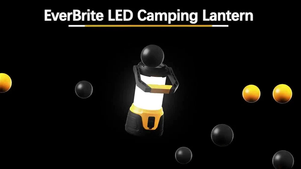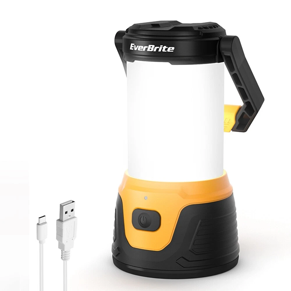 5 Lighting Mode& Memory Function : This EverBrite camping lantern has 5 lighting modes- low, med, high, eco, and strobe mode; Select the mode which you need by pressing the switch button, any mode lights more than 5 seconds can turn off the tent light directly by press the switch, and it will memorize the last lighting mode when next use. Super Bright& 360°Coverage : The Lantern Flashlight has built-in 20 LED light bulbs, with a brightness of up to 1000 lumen on high mode; This camping lantern provides all-around lighting for your camping, 360° lighting area! Rechargeable& Power Bank : The lantern comes with a USB and Type-c data cable; when you are outdoors, you can charge it by car or laptop's USB Port; Built-in 4.4 Ah Battery, 8 hours run time in low mode; You can also use it as a portable power bank for your phone or others electronic devices, that is so convenient for you outdoors or in other emergencies. Easy to Carry/ Use : Adopts comfortable handle material, convenient for portable use; The widened diameter of the base ensures stability when placing the camping lantern on a flat floor or table; You can also hang it where you need, it will provide 360° lighting coverage. High Practicability : This lantern flashlight is perfect for Hurricane Emergencies, Hiking, Camping, Home, and More; This light will burst with power when needed, and you can prepare one for future contingencies. (Note: Lantern doesn't light on while charging, please use it after charging) Product Dimensions 4.01"L x 4.01"W x 10.43"H Battery Description Lithium-Ion Item Weight 18.7 Ounces Mounting Type Tabletop Mount Number of Batteries 2 Lithium Ion batteries required. (included) Voltage 5 Volts Manufacturer HANGZHOU GREATSTAR INDUSTRIAL CO.,LTD Part Number 041030 Item Weight 1.17 pounds Country of Origin China Item model number E041030AB Batteries 2 Lithium Ion batteries required. (included) Area Lighting Classification IP44 Power Bank Function: It can charge your phone or other electronic devices in emergency. Brightness up to 1000 lumen, provides 360° lighting area! Convenient to use: Hanging/ Seated/ Portable 5 Lighting Modes- Low/ Med/ High/ Eco/ Strobe Built in 4.4 Ah Battery, 8 hours run time in the low mode