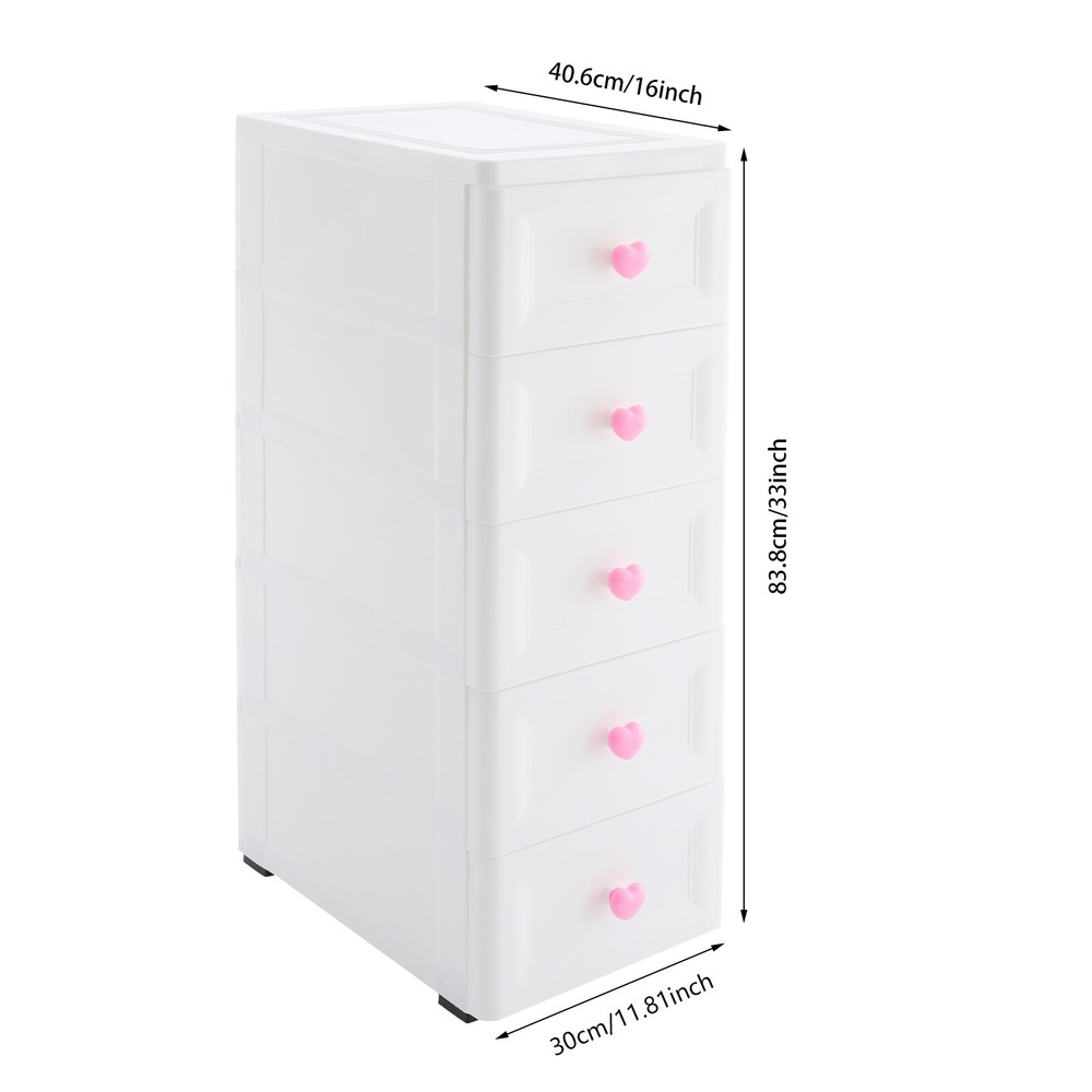 💖welcome to aaertu💖 Description This 5-tier drawer storage organizer is built with premium materials for high sturdiness and durability. With its compact and smart design, it can utilize the narrow space in your home to keep kitchen spices, bathroom supplies, books, and documents, as well as living room sundries stored in an orderly manner. In addition, its minimalist modern style makes it not only practical but also aesthetically pleasing, making your home more organized and enhancing the overall beauty of your decor. Key Features Build to Last: The PP with frosted process is non-toxic , odorless , impact-resistant , and abrasion-resistant , which can protect the product from corrosion and enables the product to have a long service life and a good appearance. High Load Bearing: The thick panels and sturdy wheels provide the product with a sturdy construction to hold a weight of 22 lbs of each tier so that you can use it with more confidence. Excellent Organizer: It comes with five drawers, providing you with enough space to categorize and store your kitchenware, hygiene products, school books, tools, and other items, making your storage more organized and easier to find. In addition, the open platform at the top allows you to place potted plants, table lamps, photo frames and other decorative items, thus adding more attractive and small ingenuity to your room. Easy to Move: With four wheels, you can easily move the product and its inner items from one place to another, giving you great convenience on movement and floor-sweeping. Space Saving: The slim body(8-inch width) makes it easy to be placed in various narrow spaces, making full use of your home space. Clean with Ease: With a smooth surface and a simple structure, you can wipe it clean easily with a damp cloth. Ideal Gift: The modern style appearance and practical function make it an ideal housewarming gift for your friends, families, and colleagues. Buy with Confidence: We stand behind all our guests and look forward to assisting you with your purchase. It is our pleasure to answer your confusion and questions. The end of the story between us is not "we sell and you buy". Details Convenient Handles: The drawer handles allow you to easily pull the drawer out and access your items. Rounded Corners: They are smooth to the touch and can prevent your hands from scratching. Application The product is suitable for use in various places such as baby rooms, corridors, offices, kitchens, living rooms, bedrooms, study rooms, bathrooms, apartments, school dormitories, hotels, and so on. Specifications Color: White Material: PP Handle Shape: Heart Process: Frosted Process Number of Tiers: 5 Mount Type: Free Standing Assembly Required: Yes Load Bearing Capacity(Each Tier): 10kg/22lbs Product Overall Size: 20.32*40.64*83.82cm/8*16*33in Package Size: 41*40*27cm/16.14*15.75*10.63in Gross Weight: 4.2kg/9.26lbs Net Weight: 4kg/8.82lbs Package Included 1* Drawer Storage Organizer 1* English Manual Other Needed Accessories Notes Please check the size carefully before ordering. Please use the product within its weight capacity to avoid damage. Please allow the slight color difference caused by the shooting light and 1-3cm error due to manual measurement, and make sure you do not mind before you order. Payment Delivery details Terms of sales About us Contact us Payment We accept ebay payment 。 Fees such as import duties, taxes are not included in the item price or shipping costs. These charges are the buyer's responsibility. Delivery details Shipping: 2-9 working days to: USA Terms of sales We maintain high standards of excellence and strive for hundred percent customer satisfaction. Feedback is very important to us. We hope that you contact us immediately before you give neutral or negative feedback, so that we can address your concerns. It is impossible to address issues if we do not know about them! About us Your satis faction is our ultimate goal. We work hard to earn your trust and future business. Our certified technicians have tested each item before shipping. The unit comes with 1 year limited warranty on all manufacturing defects. a) If you receive a defective item, you may return it or ask for a discount. Please contact us within 14 days after you receive the package. b) What you returned must be intact and in its original packaging as re? u. Customer is responsible for shipping costs of the returned item. c) We will cover the cost of shipping back t with the shipping rate indicated in the registration page. We will send you a new unit or refund the full payment you paid. Thank you. Contact us Business Hour Business Hour: Monday To Friday: 8:30 AM to 5:00 PM (Beijing China time) Due to time zones, our reply to your questions may not be immediately. But within above working time, we will reply your email within 24 hours. If it's non-workdays, please kindly be patient and wait till Monday. Please contact us with ebay message. Please feel free to contact us if you have any questions. Monday To Friday: 8:30 AM to 5:00 PM (Beijing China time) Due to time zones, our reply to your questions may not be immediately. But within above working time, we will reply your email within 24 hours. If it's non-workdays, please kindly be patient and wait till Monday. Please contact us with ebay message. Please feel free to contact us if you have any questions.
