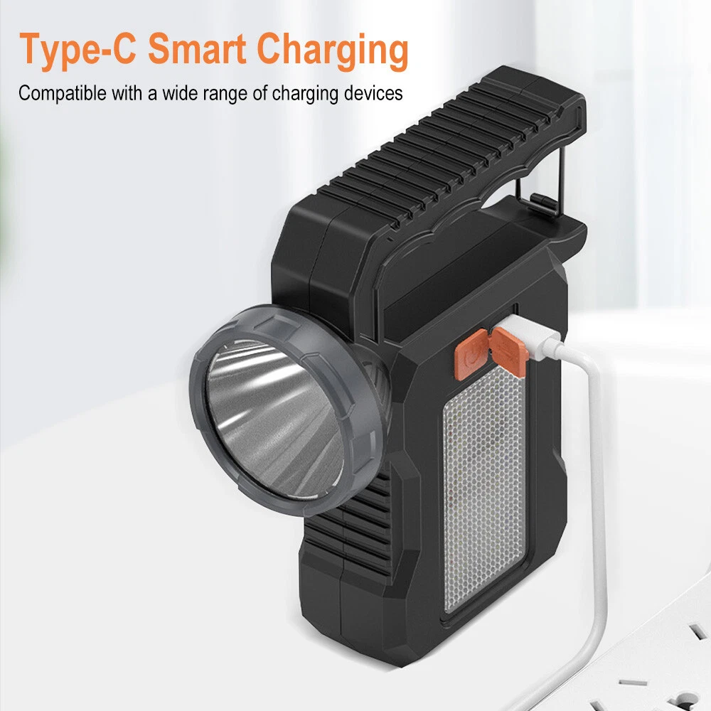Portable Solar LED Flashlight Camping Tent Light Lantern Work Lamp Rechargeable