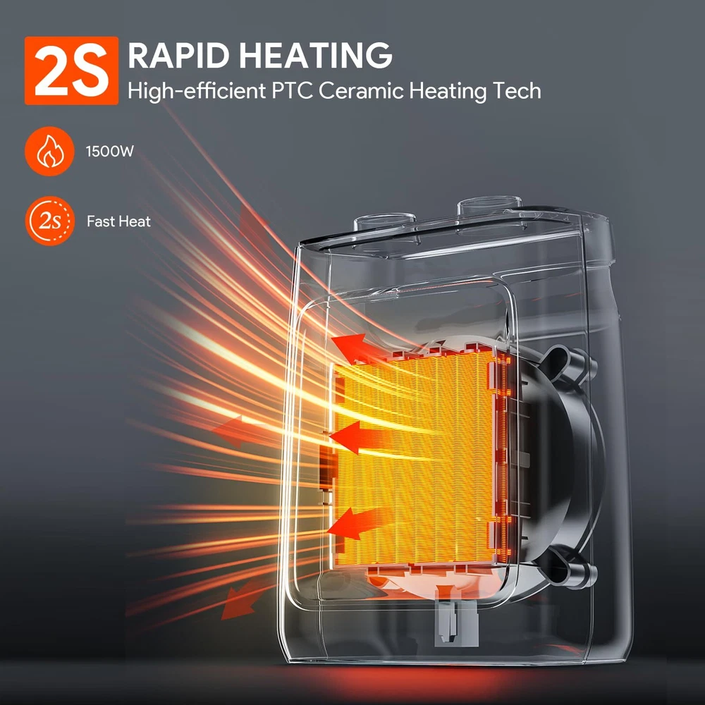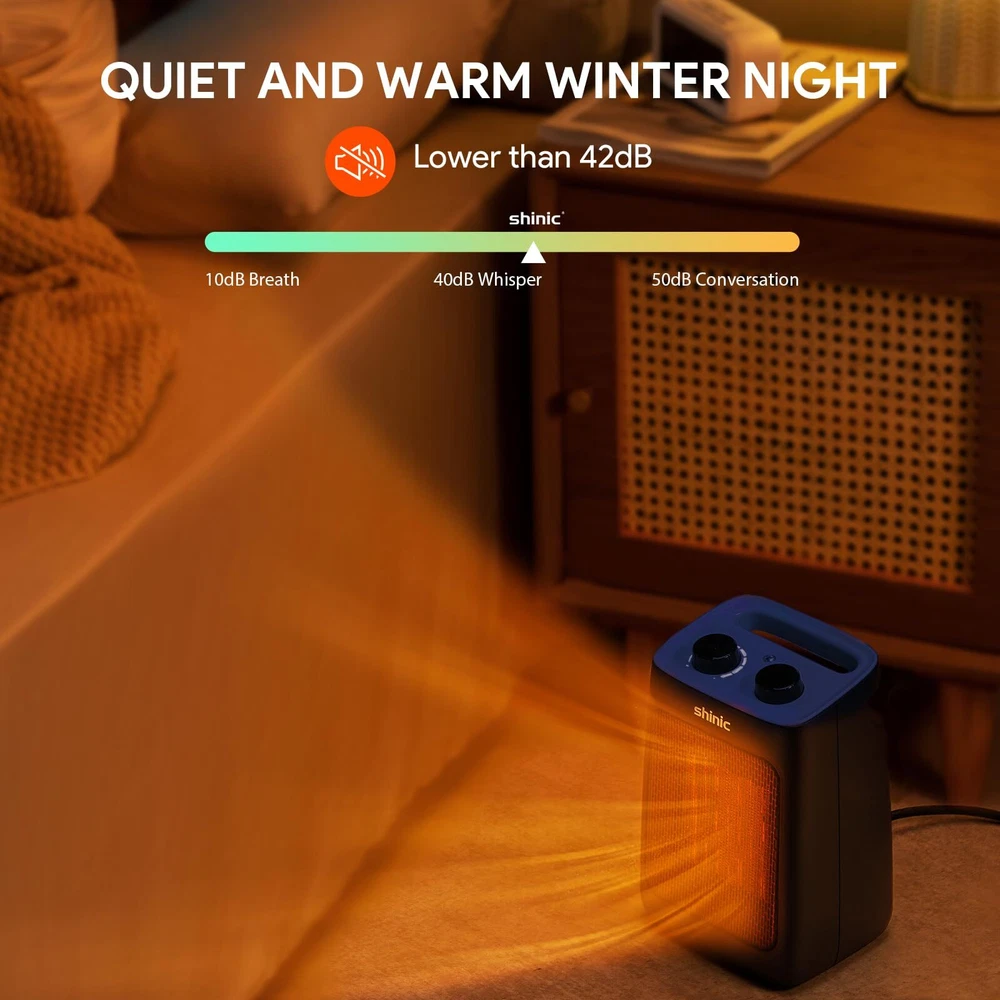 3 Modes and Thermostat:This space heater is deigned with two heat settings, High--1500W and Low--750W, along with a cooling fan function, meeting your needs in different seasons. The small heater is also equipped with adjustable thermostat, which can automatically maintain a constant temperature you set in advance. Efficient Heating:The portable heater uses energy-efficient PTC ceramic heating technology and high-speed fan to improve heating efficiency while saving electricity bills. It can warm a 200 square feet quickly within seconds, perfect for desk, bedroom, office, dorm, sitting room and other small space. Multiple Safety Protection:The room heater is ETL listed and constructed from flame-resistant materials. built in tip-over protection and overheat protection system, which will automatically shut down when it tilts or overheats and ensure the safety of your family. Compact and Portable:The mini heater for indoor use measures 6.5 x 5.5 x 9.3 inches and weighs just 2.38 pounds. With a built in carrying handle and 6-foot UL rated power cord, you can easily use it where you need. Quiet and Comfortable:The office heater body structure has been tested hundreds of times and noise level below 42dB, you can enjoy quiet and warm night sleep in the cold winter. When you need to work or relax quietly, it also won't cause any trouble for you. After Sales:We offer 1 year warranty service, If you have any questions after receiving the heater, please contact us immediately, We will reply within 12 hours.