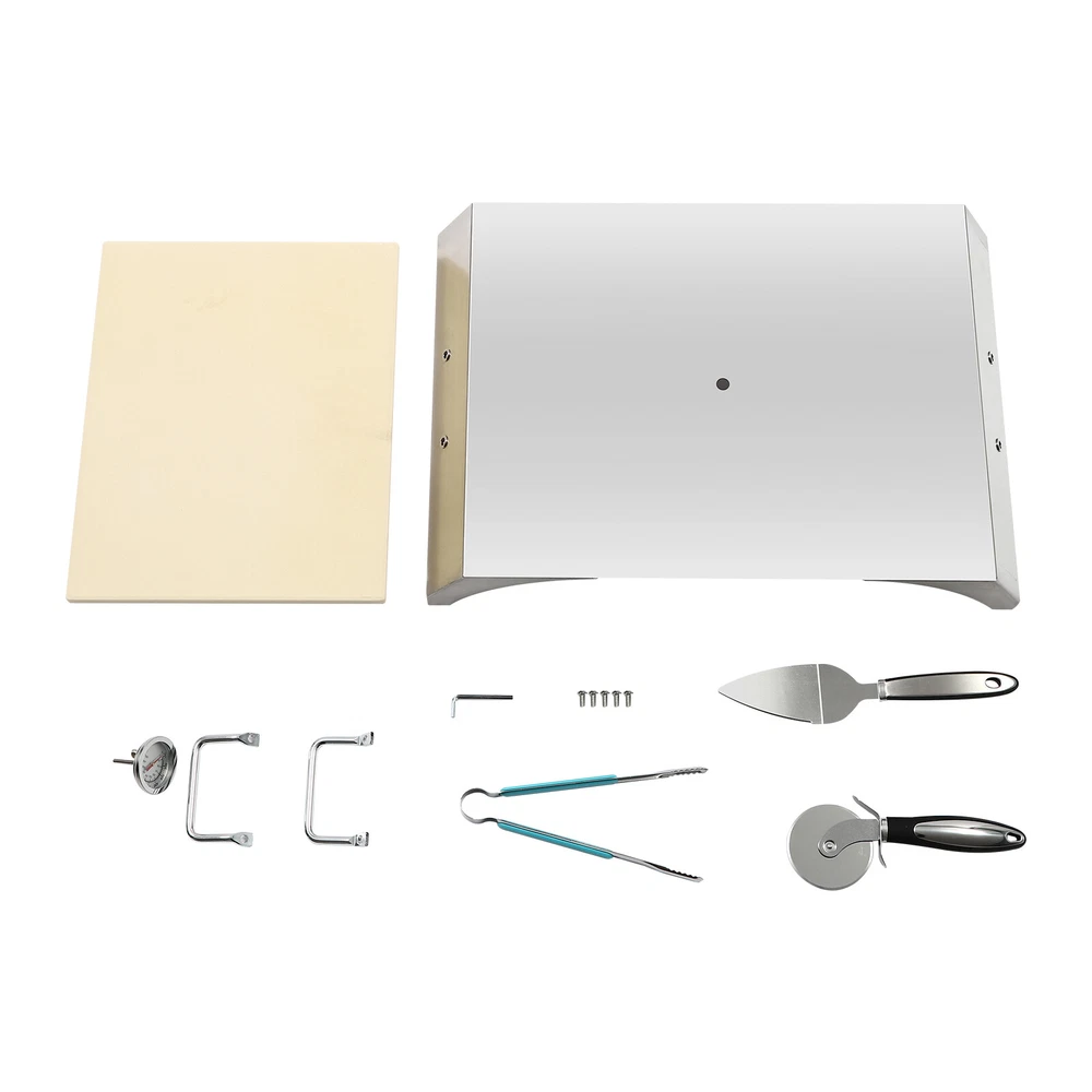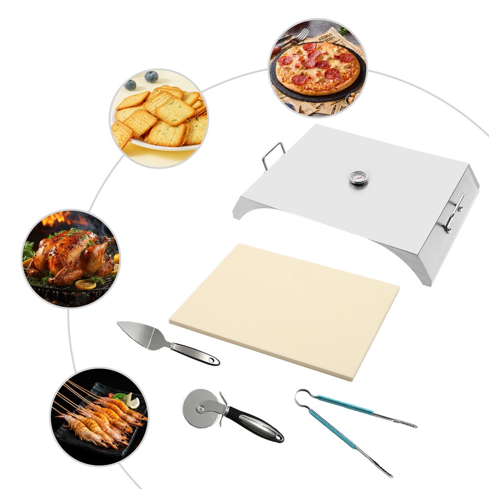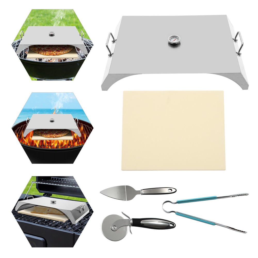Description Use this pizza oven to have an artistic creation about taste and passion. It adopts a professional slate design that simulates the traditional Italian brick oven baking effect, allowing your pizza to be baked greatly and locking in the purest flavor of the ingredients. A convenient thermometer allows you to control the temperature of the fire, allowing even novice kitchen chefs to quickly start making delicious food. Own it and enjoy the fun that delicious pizza brings you! Key Features Sturdy and Durable: The product is made of high-quality stainless steel, aluminum, and oak, using brushed process, with high strength, heat resistance, wear resistance, and long service life. Quick Pizza Baking: The roasted stone made of cordierite ceramics has excellent strength and durabil Pizza Oven Kit, Stainless Steel Portable Pizza Oven For Gas,OvenShovel Description~~ Description Use this pizza oven to have an artistic creation about taste and passion. It adopts a professional slate design that simulates the traditional Italian brick oven baking effect, allowing your pizza to be baked greatly and locking in the purest flavor of the ingredients. A convenient thermometer allows you to control the temperature of the fire, allowing even novice kitchen chefs to quickly start making delicious food. Own it and enjoy the fun that delicious pizza brings you! Key Features Sturdy and Durable: The product is made of high-quality stainless steel, aluminum, and oak, using brushed process, with high strength, heat resistance, wear resistance, and long service life. Quick Pizza Baking: The roasted stone made of cordierite ceramics has excellent strength and durability and can emit a maximum temperature of 500 ℉, only taking a few minutes to bake your favorite pizza. Professional Assistant: The oven has a front-to-back pass-through design that transfers heat to the top of the pizza, thus ensuring that the toppings are fully baked as well. The pizza stone distributes the heat evenly throughout the pizza, absorbing the external moisture from the dough and making the pizza crispy on the outside and tender on the inside, achieving restaurant-grade cooking results. Easy to Use: Simple construction, clear and intuitive thermometer, and a full range of accessories make it easy to use this product, allowing you to create delicious and steaming pizzas even on gas ovens and campfires. Space-saving: Compared to traditional large ovens, this product has a compact design (21.65*15.04*3.54 inches) that takes up less space and is easy to store, which is more suitable for modern kitchen layouts. Easy to Clean: The smooth surface, simple structure design, and removable baking stone, thermometer, and handles allow you to easily remove dust from the surface of the product with water. Enjoy the Fun: You have the flexibility to add your toppings, customize the flavor, and control the doneness of the pizza to make it exactly the way you want it. You can invite your friends to join you at a summer campfire to share a healthy and delicious homemade pizza for a great day out. Customer Service: We aim to provide high-quality products and services. If you have any questions, please feel free to contact us. We will reply as soon as possible and solve the problem for you. Details Practical Handles: They allow you to easily pick up the product, facilitating your access and handling. Pizza Cutter Wheel: It is convenient for you to cut pizzas to share with your family and friends. BBQ Tong: You can use it to add cheese, ham, and other toppings with ease. Application This product is suitable for baking 12-inch large pizzas but also can make bread, roast chicken, lean down, biscuits, pies, and so on. It can be used for most gas grills, flat-top grills, home ovens, wood-burning fire pits, campfires, etc., and it is a good companion for your camping, picnic. How to Make Delicious Pizza 1. Place the pizza oven on the rack and preheat to 500 ℉. 1. Sprinkle flour or cornmeal (not included) on the pizza dough and the bottom of the pizza peel (not included) to create a non-stick surface. Transfer the pizza to the baking rack using a flour-coated pizza peel (not included). 2. Bake the pizza for 8-15 minutes. 3. Check halfway through to make sure the pizza is not overcooked. 4. Once the crust is brown, remove the pizza from the oven and enjoy pizza! Specifications Style: Modern Color: Silver Material: Stainless Steel, Cordierite Ceramic, Aluminum, Oak Surface Treatment: Brushed Mount Type: Countertop Control Type: Manual Assembly Required: No Fuel Type: Wood, Natural Gas Temperature Resistance Range: 0-300℃/ 32-572 ℉ Max. Temperature of Pizza Stone: 260℃/ 500 ℉ Suitable Pizza Size: 30.48cm/ 12 in Gross Weight: 7.6 kg/ 16.75 lbs Net Weight: 6.1kg/ 13.45 lbs Overall Product Size: 55*38.2*9 cm/ 21.65*15.04*3.54 in Package Size: 58*41*12cm/ 22.83*16.14*4.72 in Package Included 1* Pizza Oven 1* Pizza Stone 1* Thermometer 1* BBQ Tong Other Accessories Required for Assembly Notes 1. We recommend that you wear insulated gloves (not included) for safe use. Please allow the slight color difference caused by the shooting light and 1-3cm error due to manual measurement, and make sure you do not mind before you order. tu1 Payment Delivery details Terms of sales About us Contact us Payment We accept ebay payment 。 Fees such as import duties, taxes are not included in the item price or shipping costs. These charges are the buyer's responsibility. Delivery details Shipping: 2-9 working days to: USA Terms of sales We maintain high standards of excellence and strive for hundred percent customer satisfaction. Feedback is very important to us. We hope that you contact us immediately before you give neutral or negative feedback, so that we can address your concerns. It is impossible to address issues if we do not know about them! About us Your satis faction is our ultimate goal. We work hard to earn your trust and future business. Our certified technic