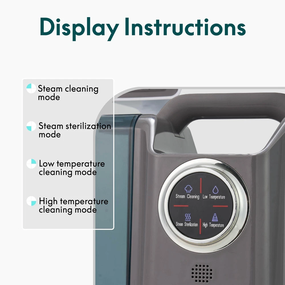 Product Information Product Name: Steam cleaner, Portable Carpet and Upholstery Cleaner, Spot Cleaner for Pets, Stain Remover for Carpet Product Specifications: Lightweight Item Item Code: S09090001 UPC: Product Type: General item Place of Origin: China Main Color: White Main Material: ABS+PC Product Dimensions Assembled Length (in.): 9.25 Assembled Width (in.): 12.99 Assembled Height (in.): 13.11 Assembled Weight (lbs.): 8.82 Package Size Length (in.): 17 Width (in.): 16 Height (in.): 11 Weight (lbs.): 13 Product Features High Power and Versatile Cleaning Modes:: Featuring a 450W motor and a 1200W heating boiler, this steam cleaner offers four different modes:1.Steam cleaning mode with high-temperature steam and vacuum suction.2.Steam disinfection mode with steam and vacuum suction only.3.Cold water spray with vacuum suction.3.Hot water spray with vacuum suction. These modes ensure efficient and thorough cleaning for all your upholstery needs. Large Water Capacity with Leak-Proof Design:: Equipped with a 60.9 oz (1800 ml) clean water tank and a 20.3 oz (600 ml) waste water tank, the cleaner offers large capacity for longer cleaning sessions. Both tanks are designed with excellent sealing to prevent leaks, making it safe and reliable for everyday use. Strong Suction Power for Deep Clean:: With a vacuum power of >10 Kpa, this steam cleaner effectively lifts dirt, stains, and debris from fabric surfaces while simultaneously applying high-temperature steam. The powerful suction ensures your fabrics remain clean and dry after use. Long Reach and Easy Maneuverability: : The 16.4 ft (5 m) power cord and 3.9 ft (1.2 m) hose provide excellent flexibility and mobility, allowing you to clean large areas and hard-to-reach spots without constantly having to switch outlets. Pet Stain Detection and UV Light:: The steam cleaner features a unique pet light that uses UV light to highlight pet stains and bodily fluids, making it ideal for homes with pets. This function helps detect hidden stains that are difficult to spot with the naked eye, ensuring a deeper clean. Description After-sales service: If you find any dissatisfaction or questions during the shopping process, please contact our merchants at the first time. Please rest assured that we will handle your feedback with a positive attitude and professionalism! Please leave us a message via eBay and allow 24 hours for a reply. Our business hours: Monday through Friday, 9:00 am - 6:30 pm (GMT +8). (excluding weekends and holidays).